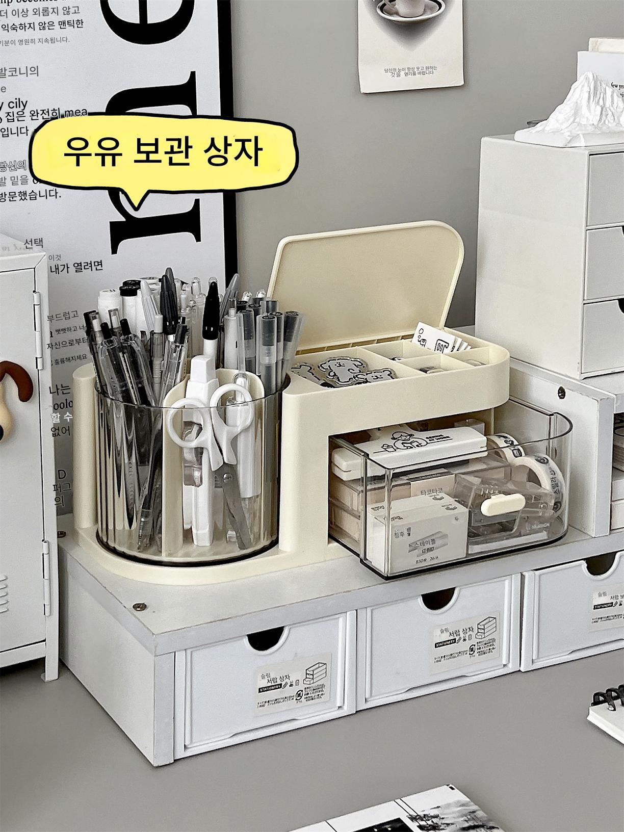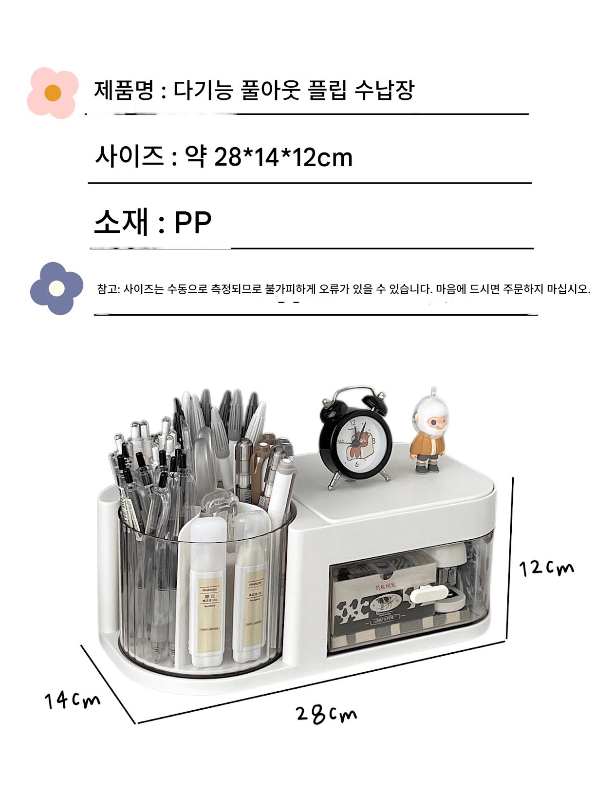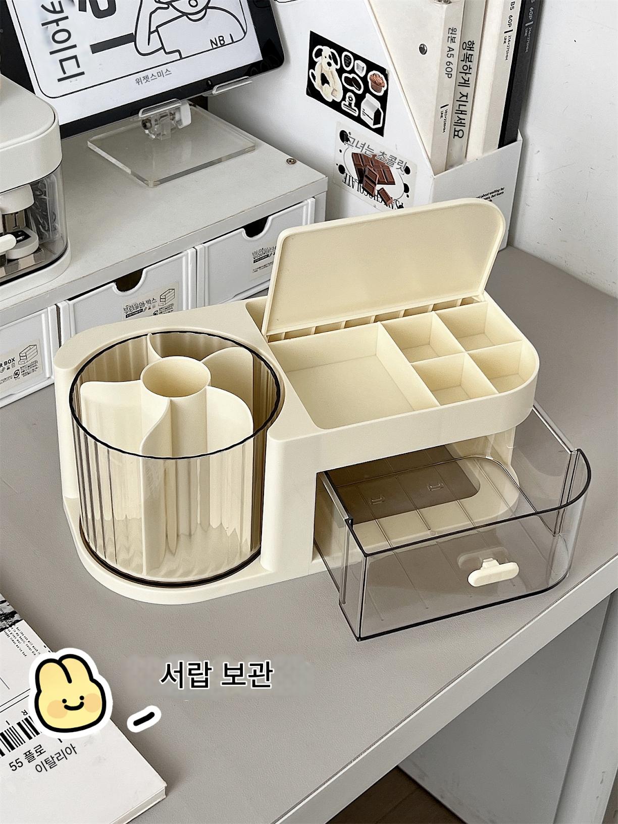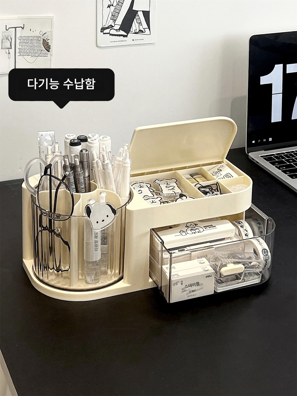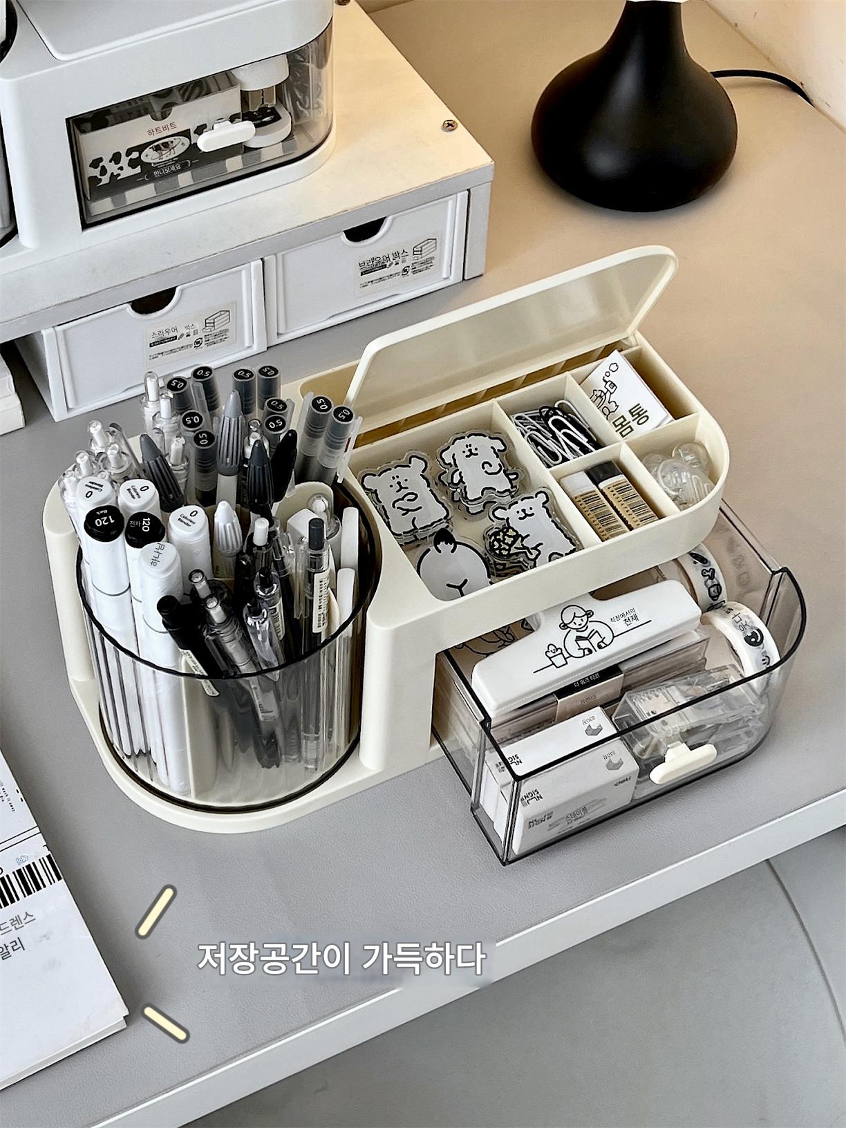 펜홀더 수납함 사무실 데스크탑 대용량 어린이 여아 문구대 학생용 책상 회전 펜통
