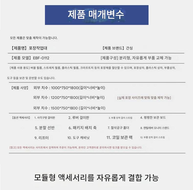 포장 작업대 상업용 포장 테이블 안티 정전 작업대 버블 필름 절단 조절 가능 포장 테이블 사용자 정의