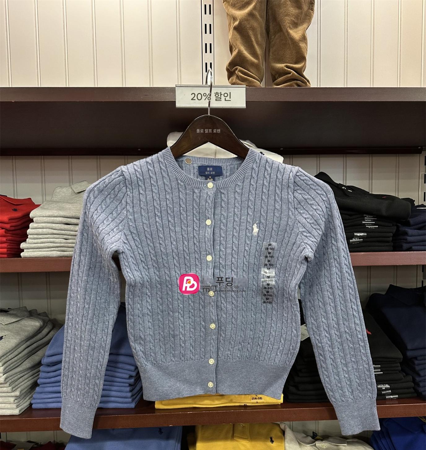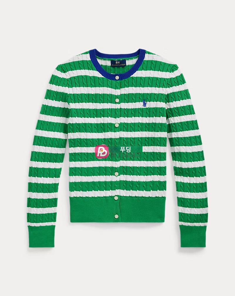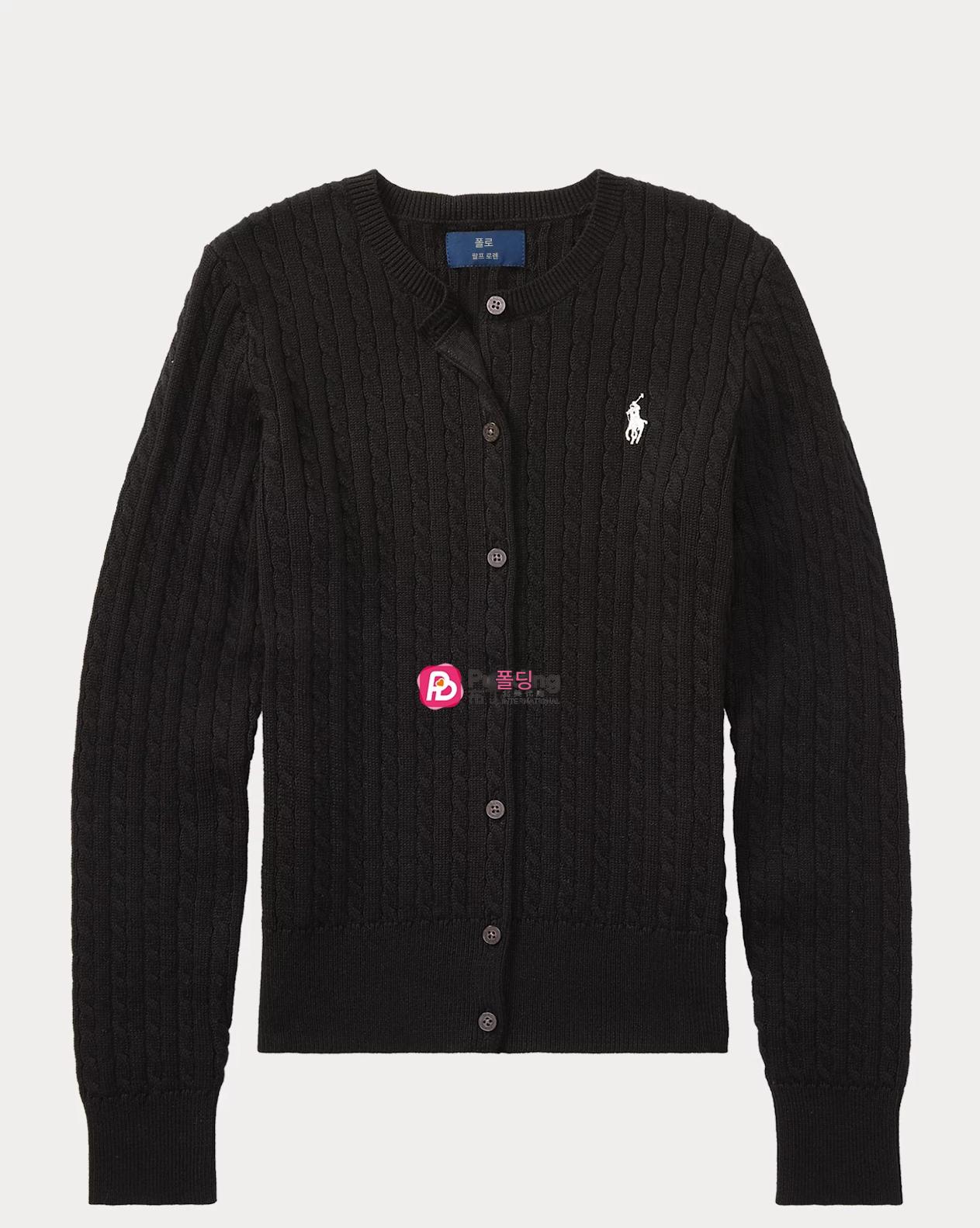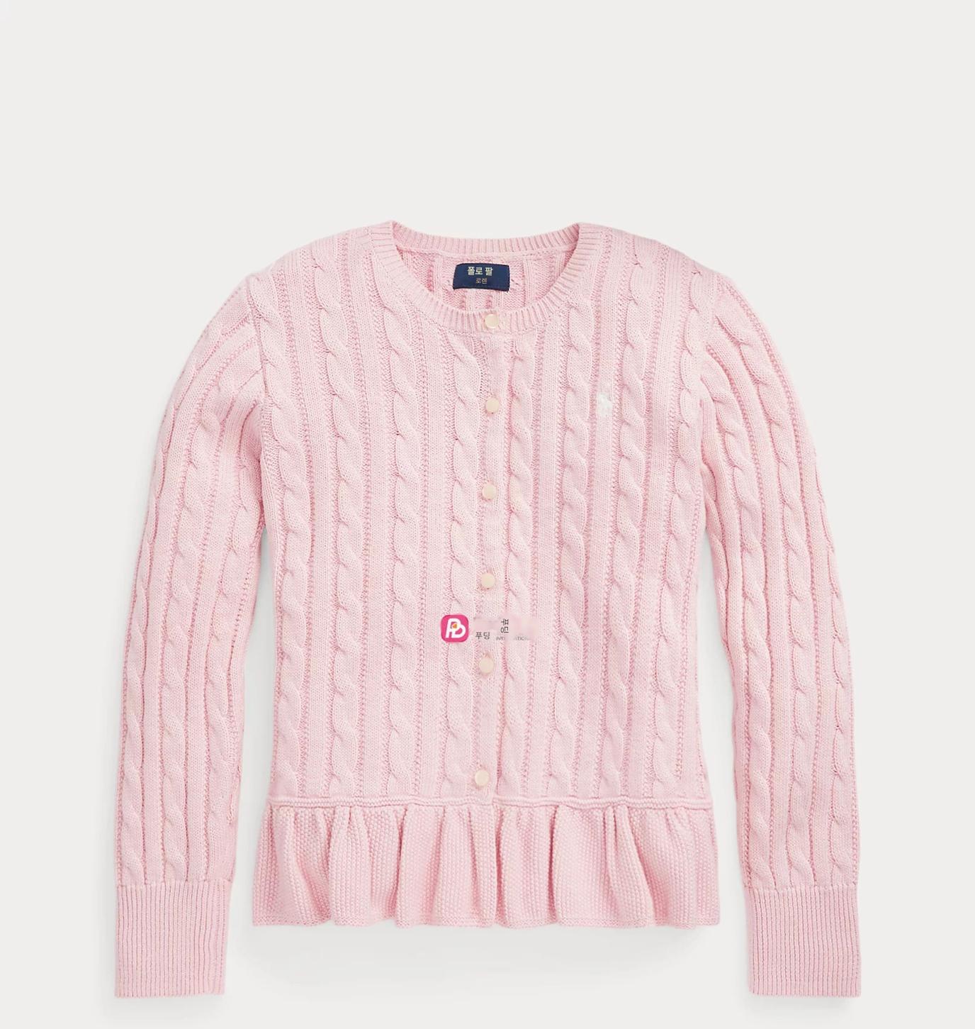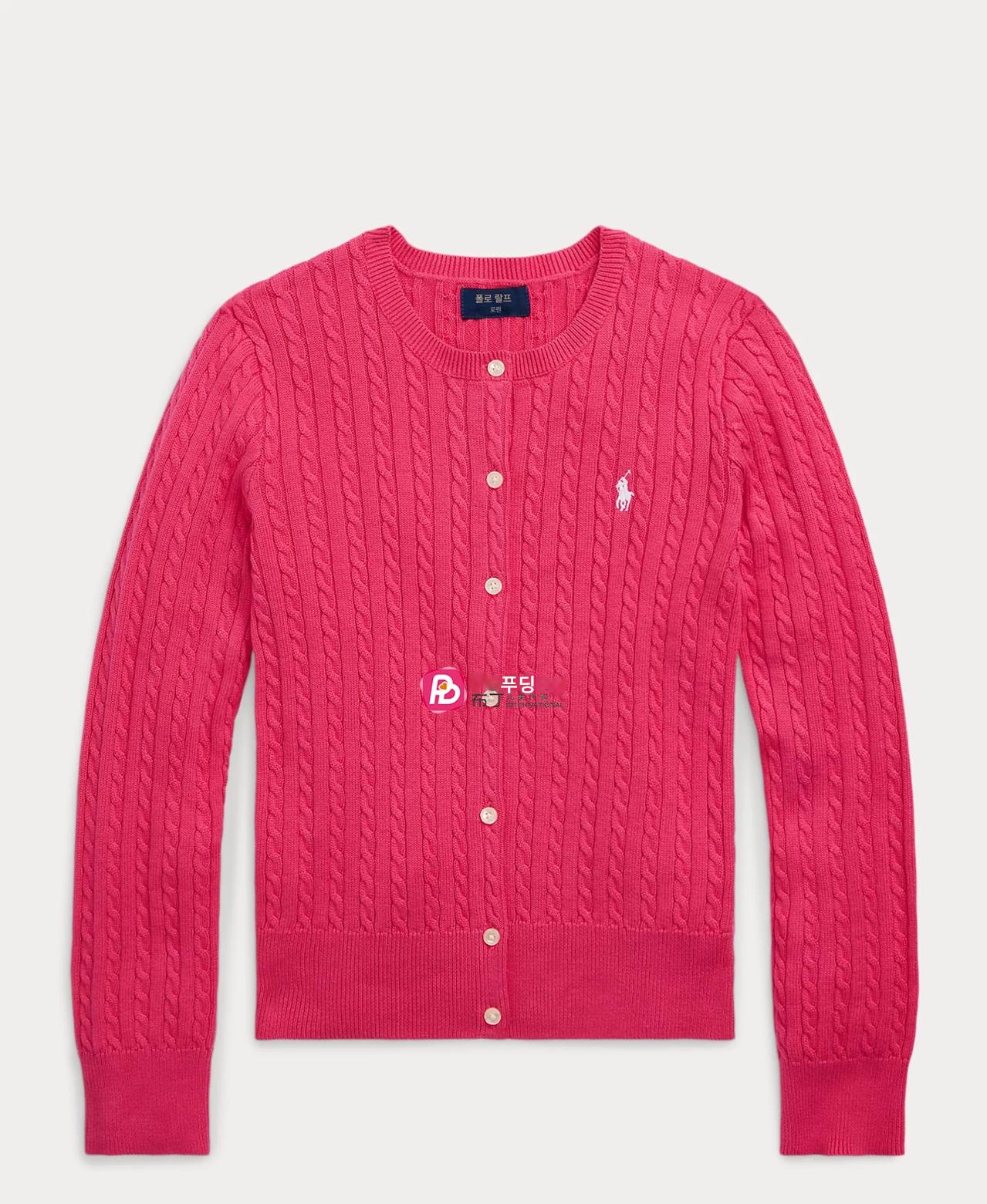 폴로 바이 랄프 로렌 여아용 자수 폴로 로고 크루넥 케이블 니트 카디건