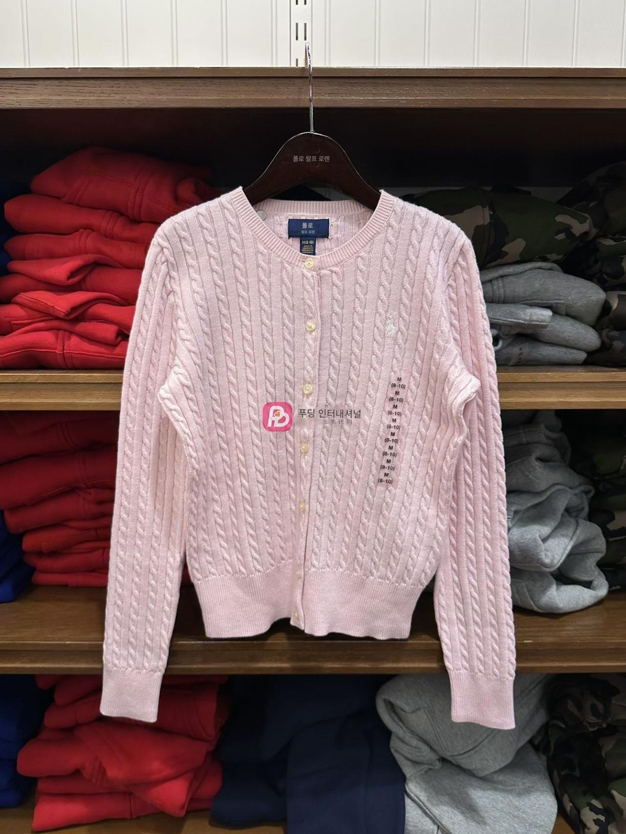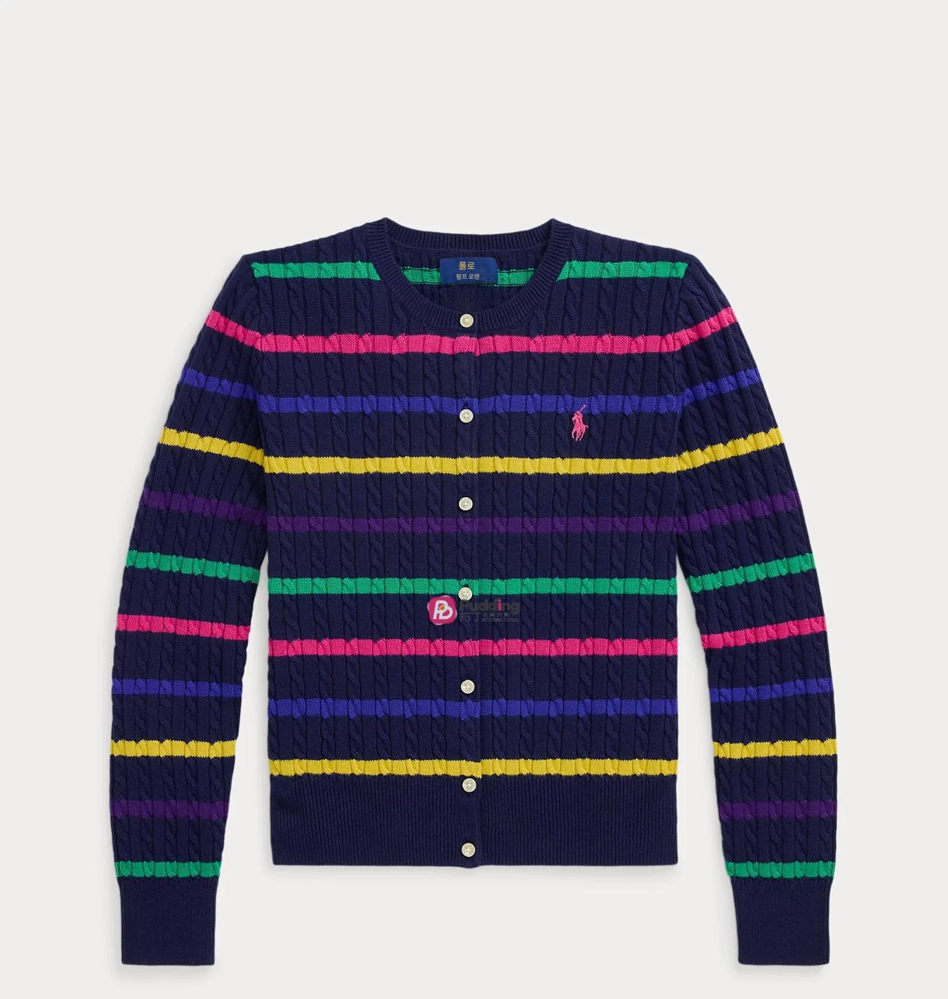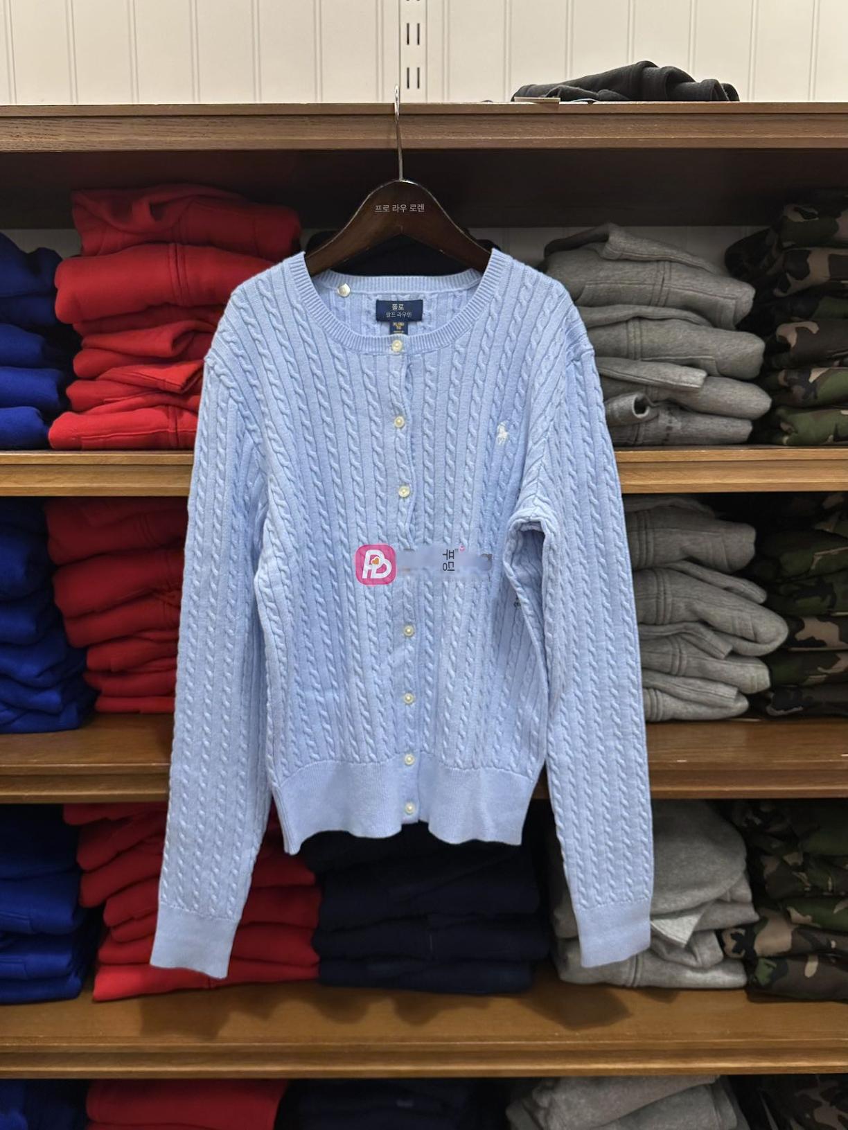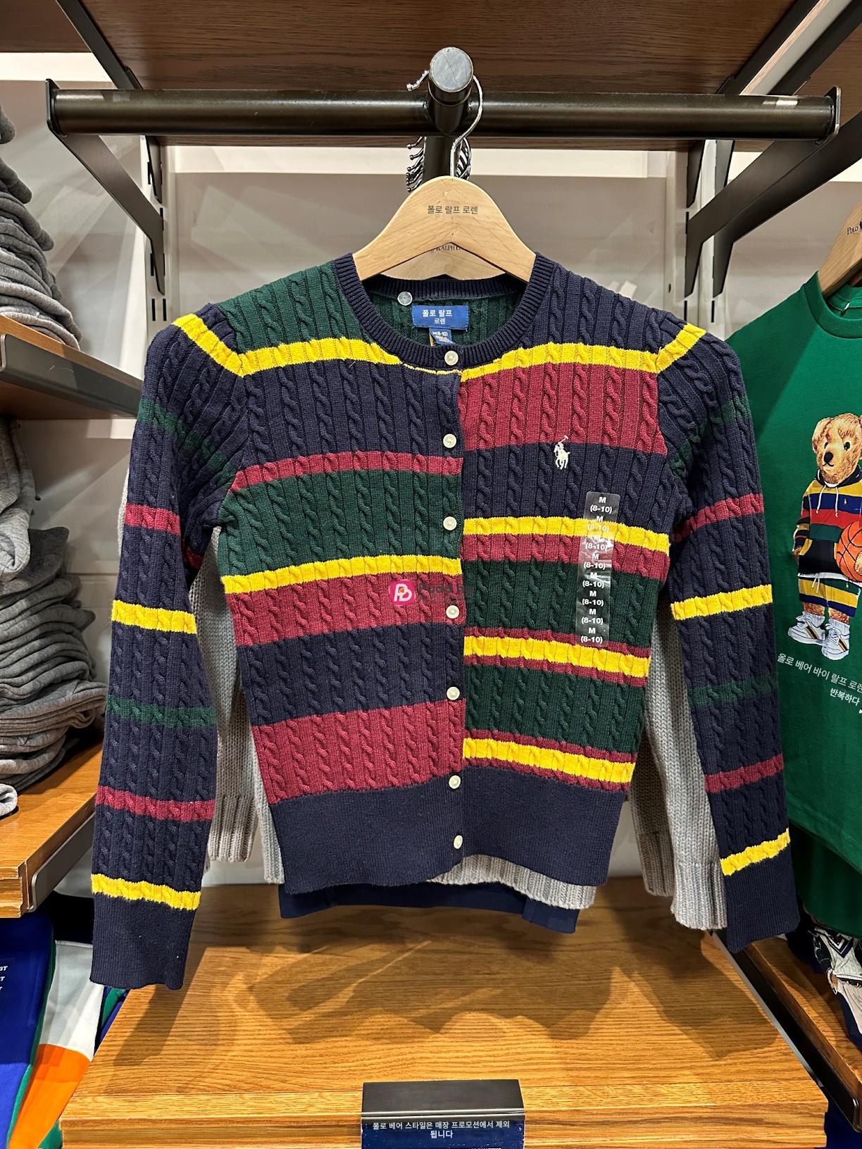 폴로 바이 랄프 로렌 여아용 자수 폴로 로고 크루넥 케이블 니트 카디건