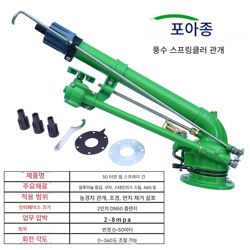“풍수 50 터빈 분무 관개용 분무기 자동 회전 스프링클러 관개용 관수 인공물 농업용 가뭄 방지 고압 노즐 원격”의 첫 상품평을 남겨 주세요