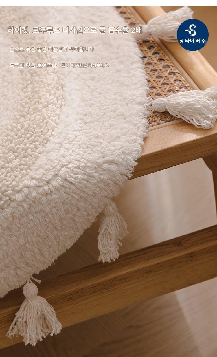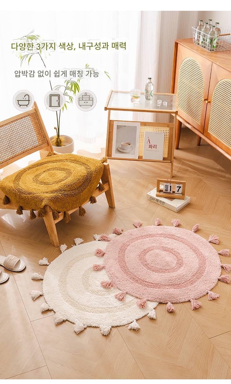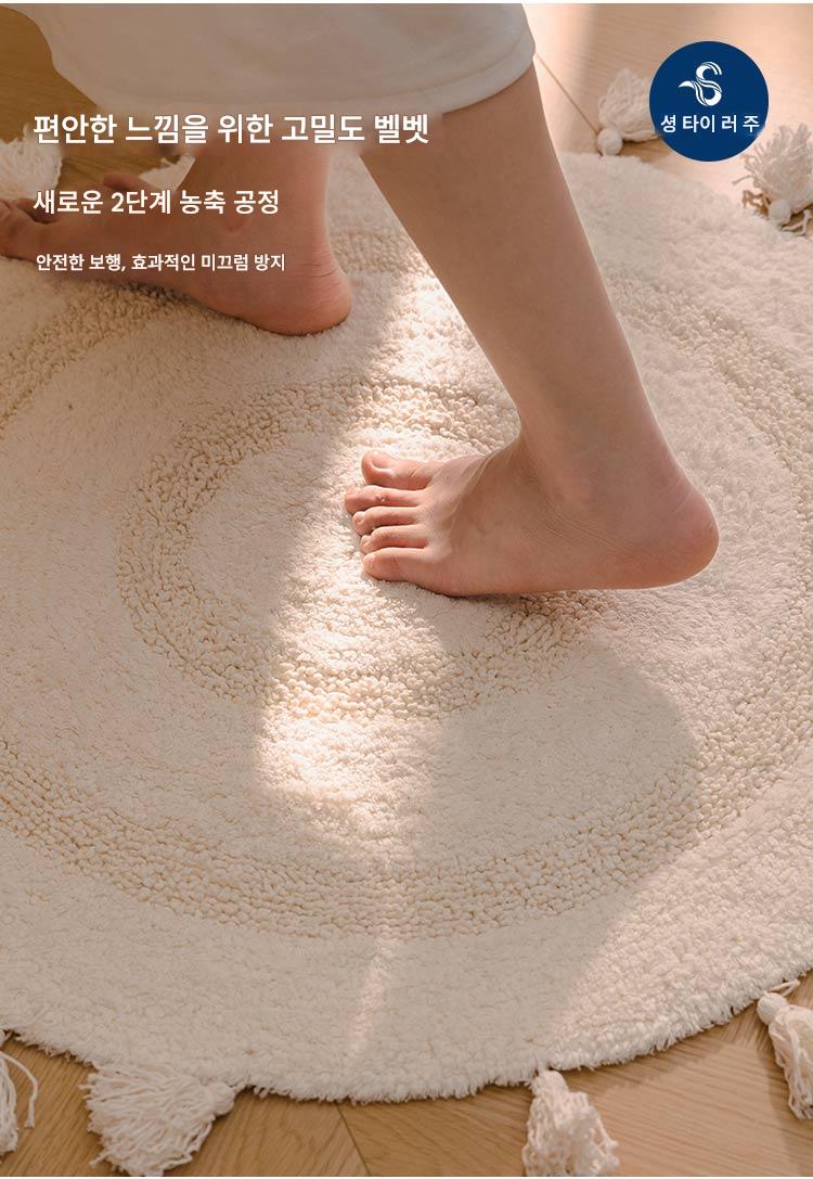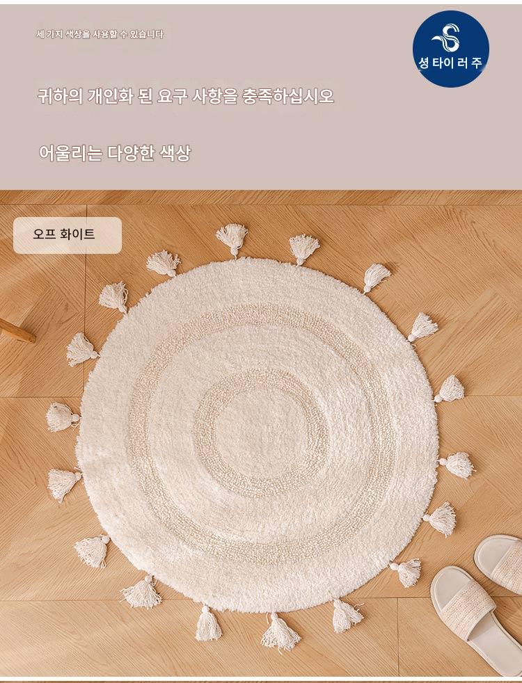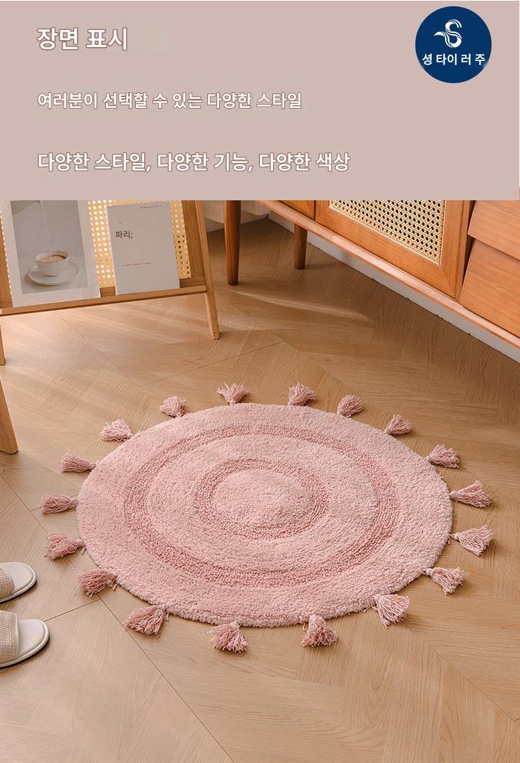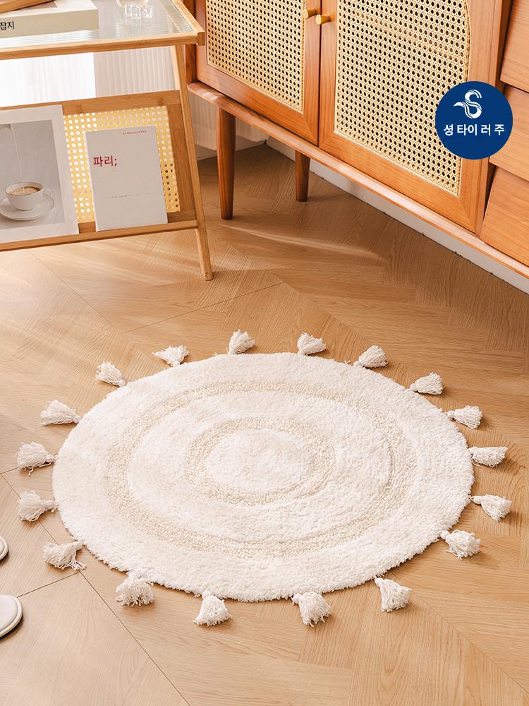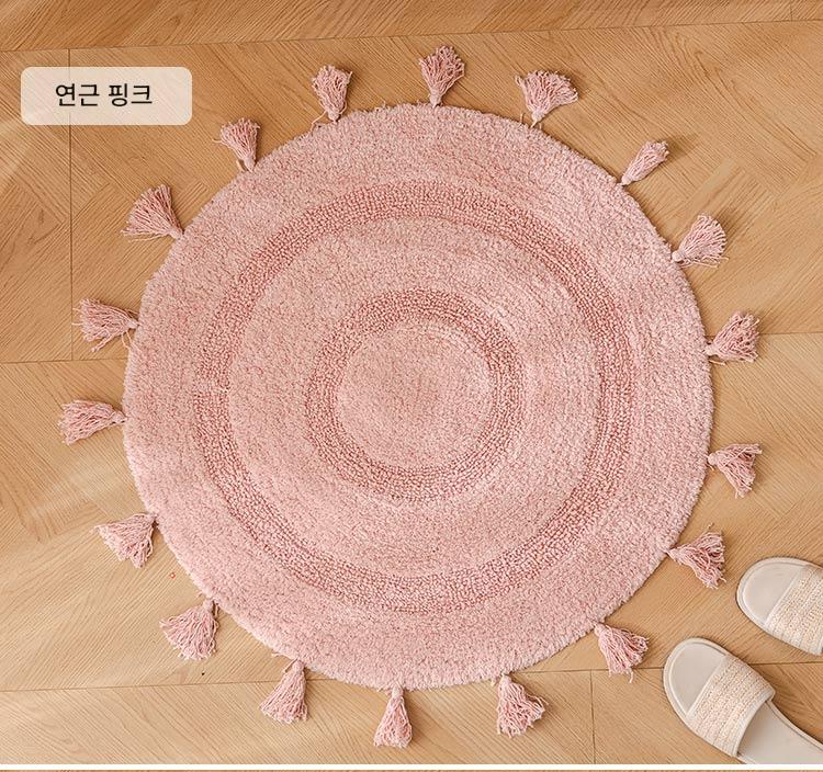 프랑스산 코튼 태슬 원형 바닥매트 침실 카펫 홈 현관 욕실 흡수성 미끄럼 방지 발 매트 세탁기 세탁 가능