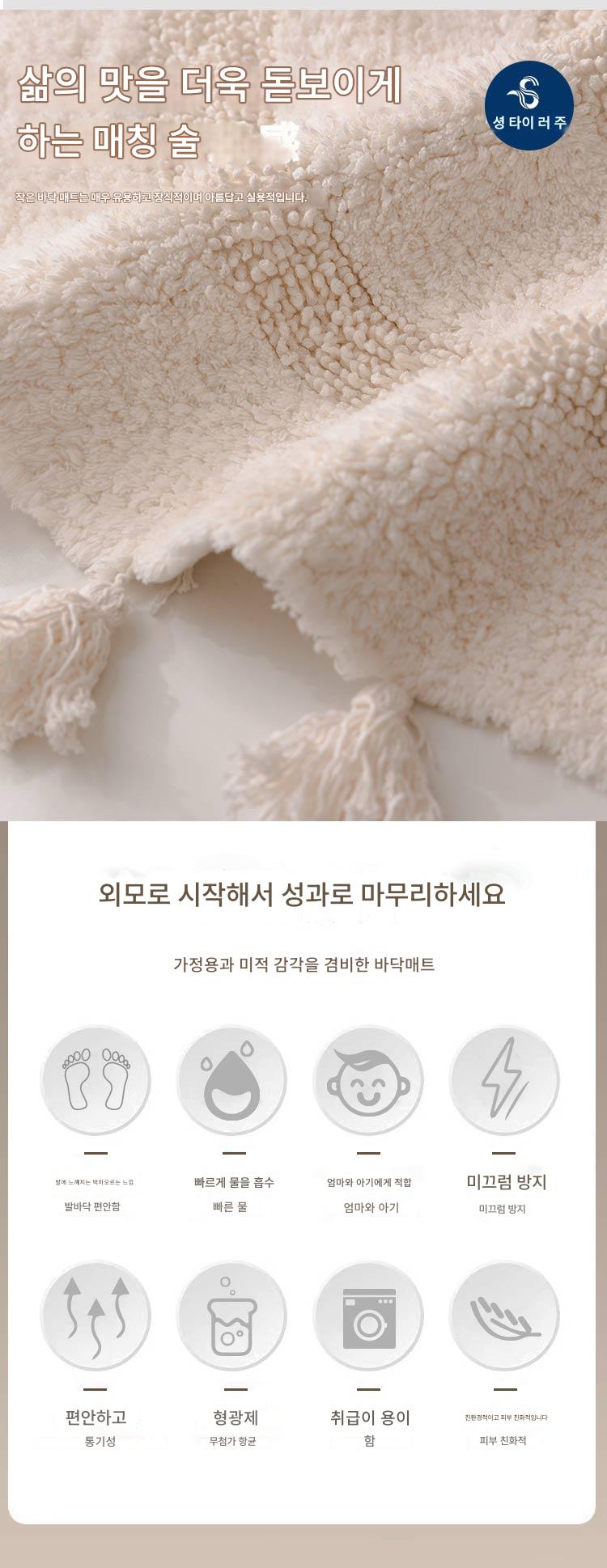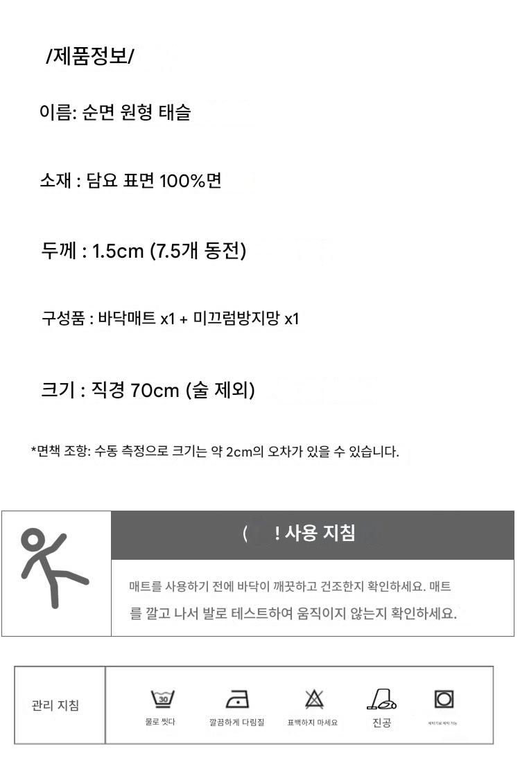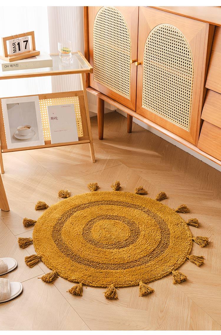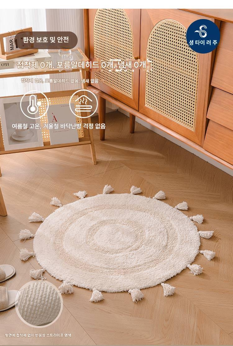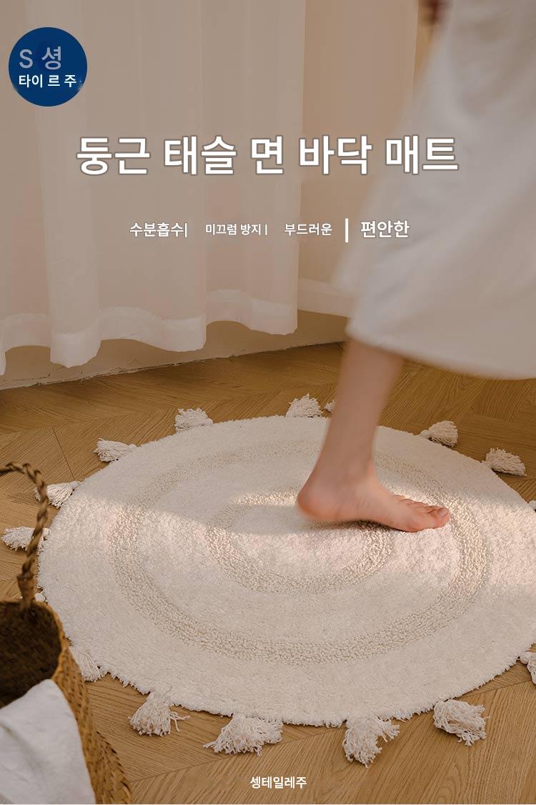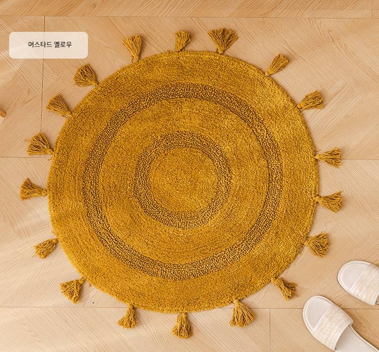 프랑스산 코튼 태슬 원형 바닥매트 침실 카펫 홈 현관 욕실 흡수성 미끄럼 방지 발 매트 세탁기 세탁 가능