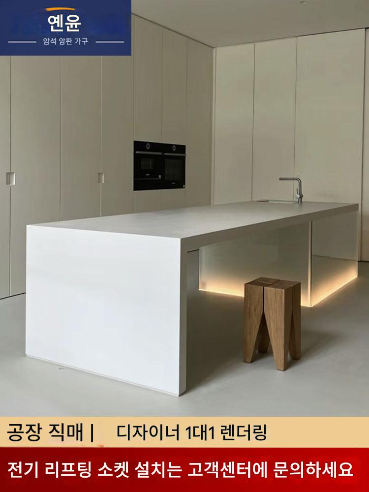 프랑스 록 슬래브 바 테이블 아일랜드 테이블 다이닝 테이블 통합 심플 크림 화이트 싱크 오픈 키친 가이드 테이블 커스터마이징