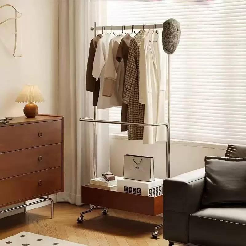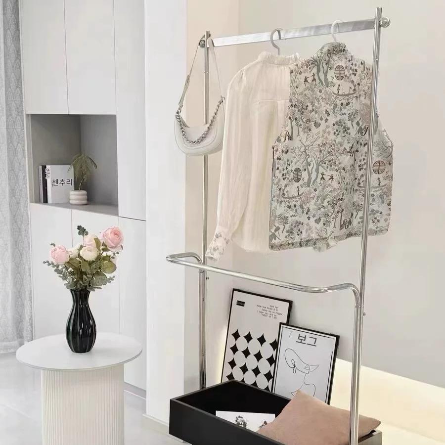 프랑스 스테인리스 스틸 코트 랙 바닥 보관 모바일 홈 침실 의류 디스플레이 랙 거실 옷걸이