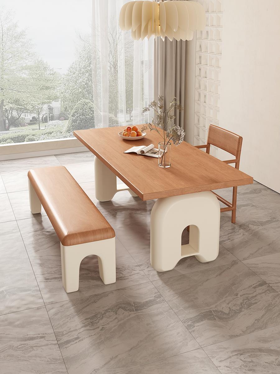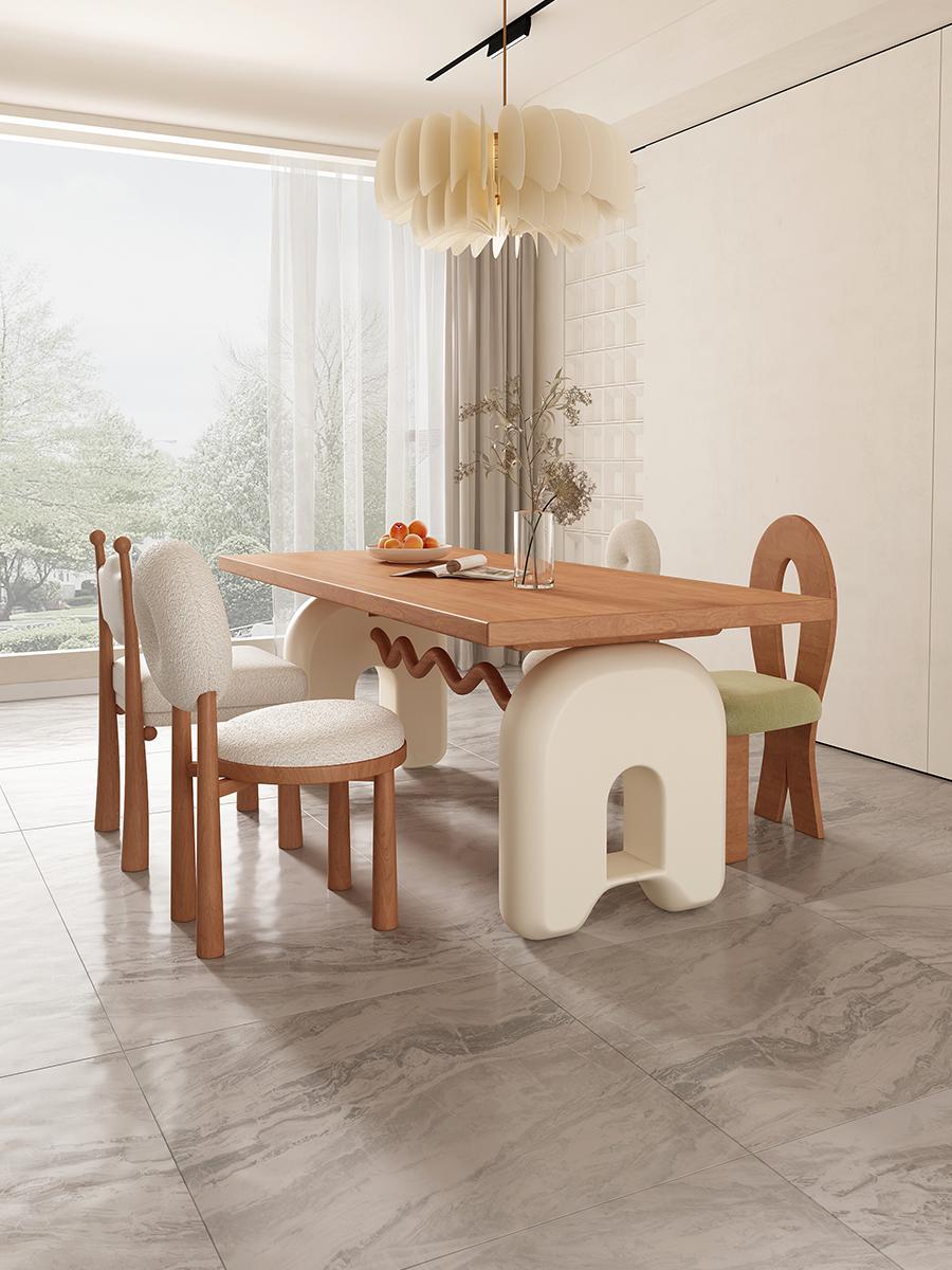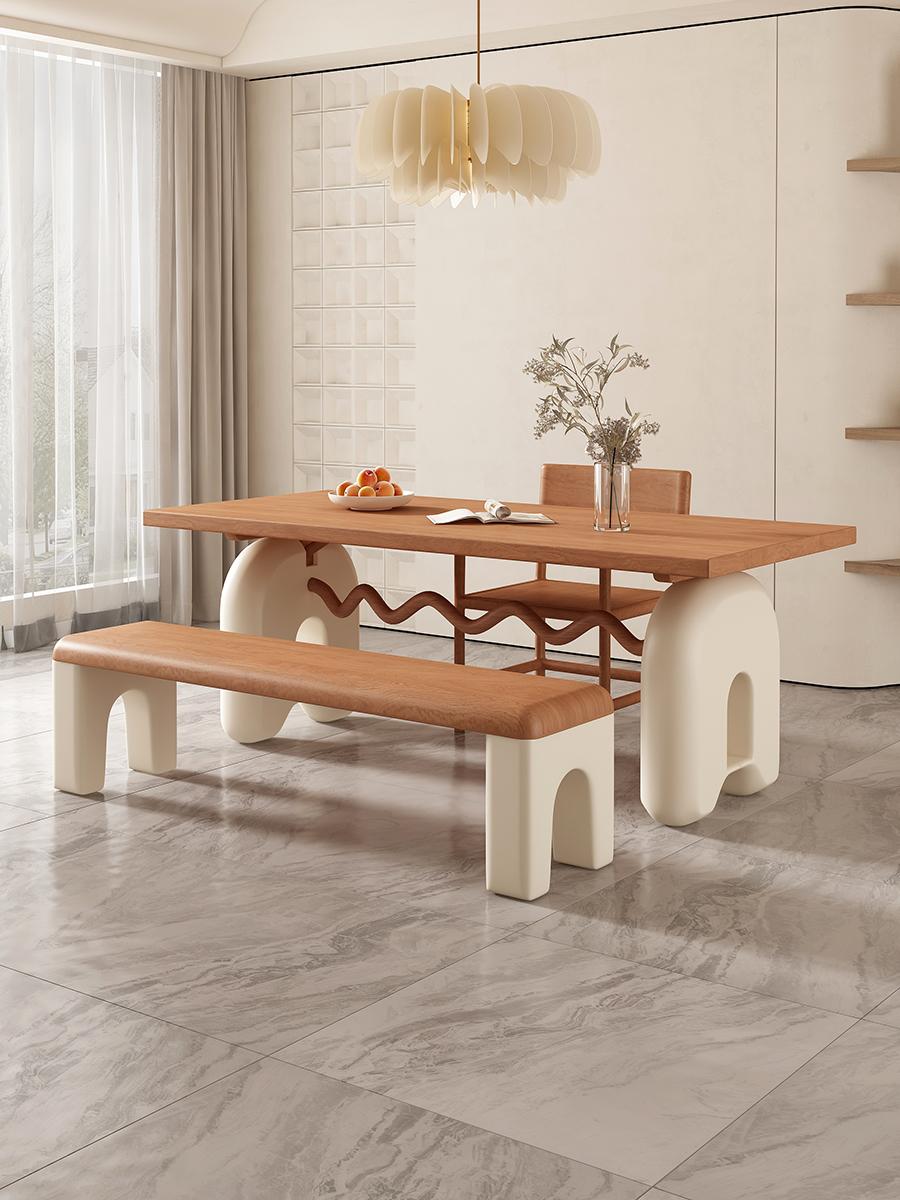 프랑스 크림 스타일 레트로 솔리드 우드 다이닝 테이블과 의자 조합 디자이너 중년 통나무 컬러 책상 직사각형 책상