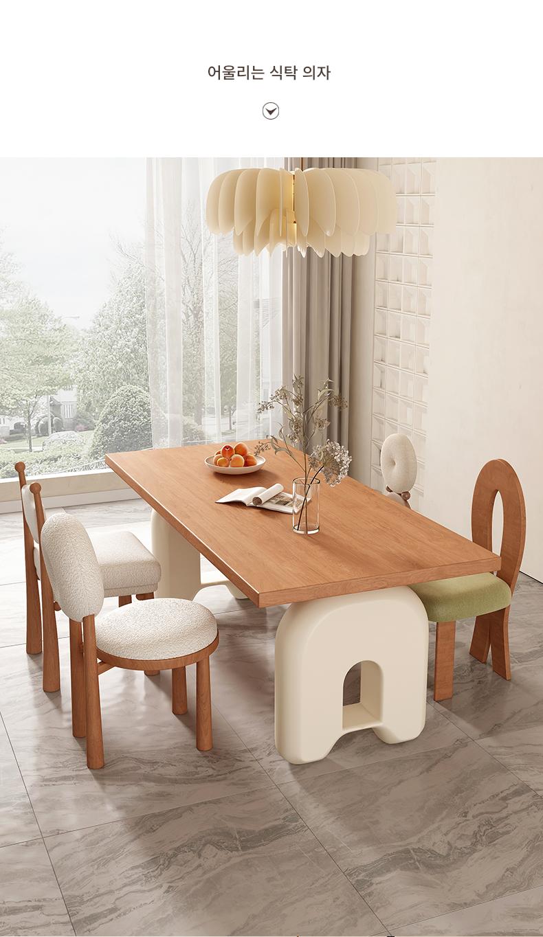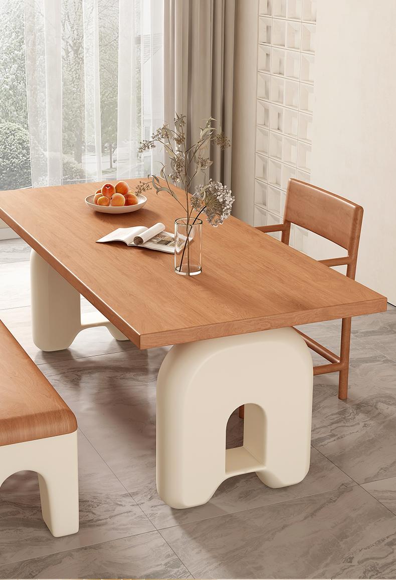 프랑스 크림 스타일 레트로 솔리드 우드 다이닝 테이블과 의자 조합 디자이너 중년 통나무 컬러 책상 직사각형 책상