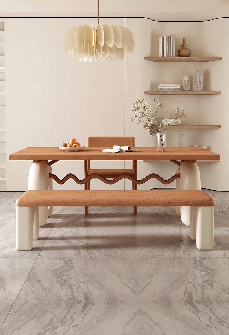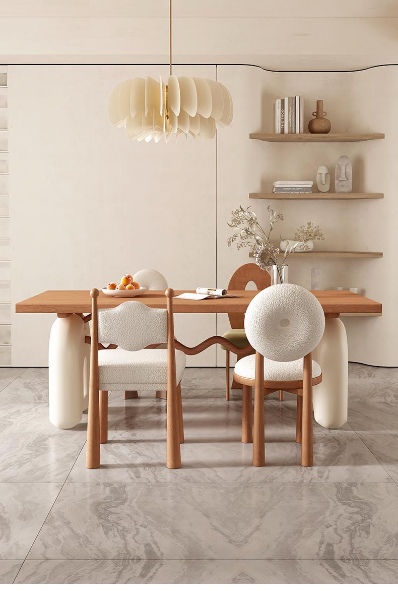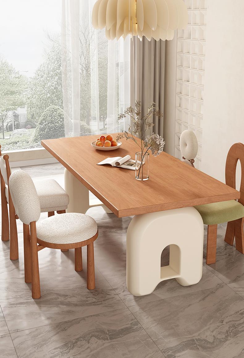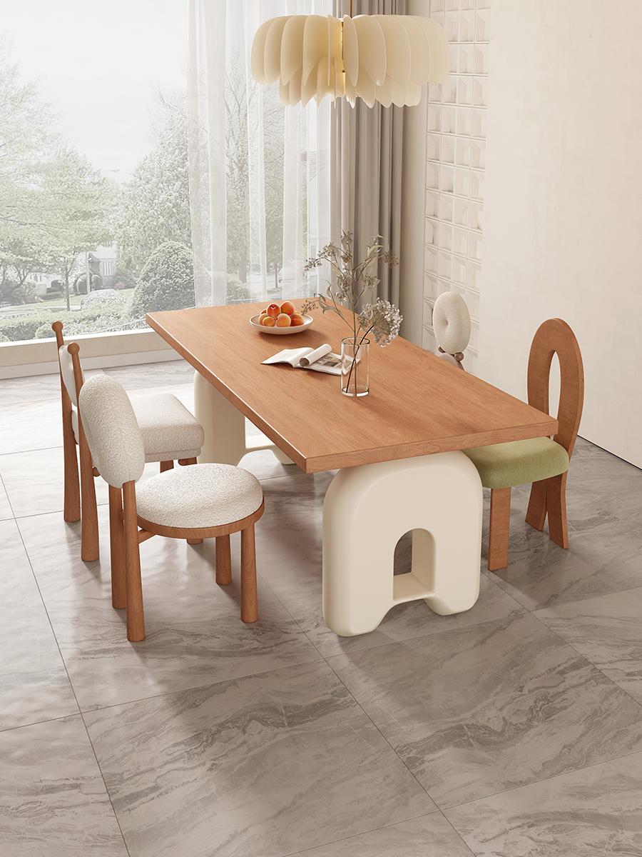 프랑스 크림 스타일 레트로 솔리드 우드 다이닝 테이블과 의자 조합 디자이너 중년 통나무 컬러 책상 직사각형 책상