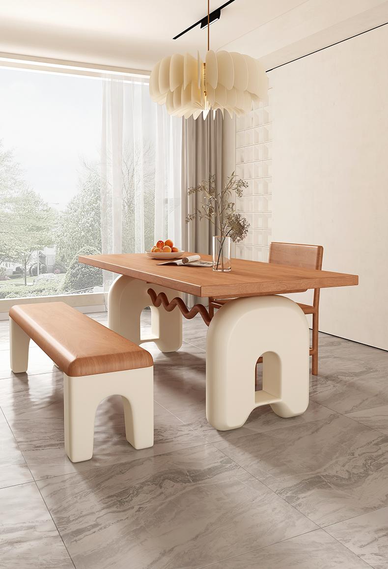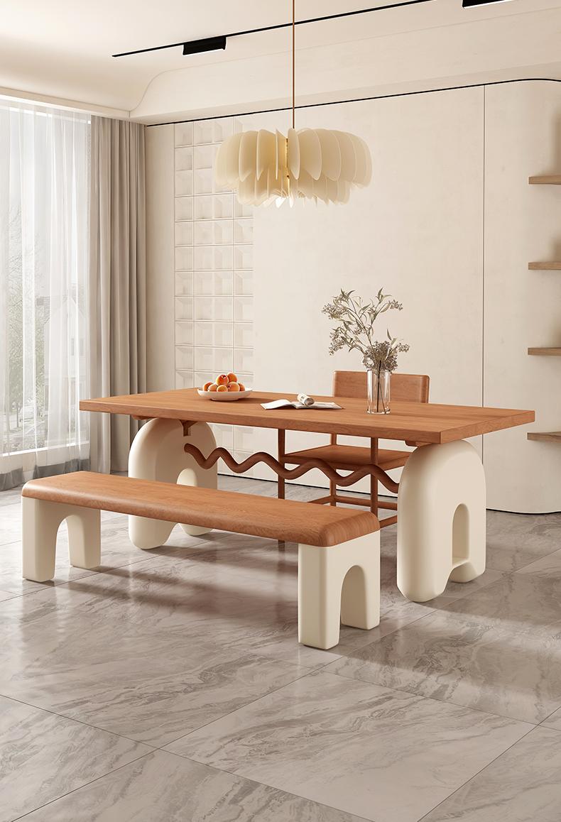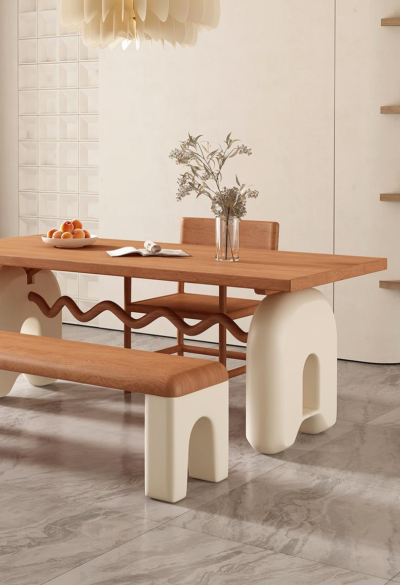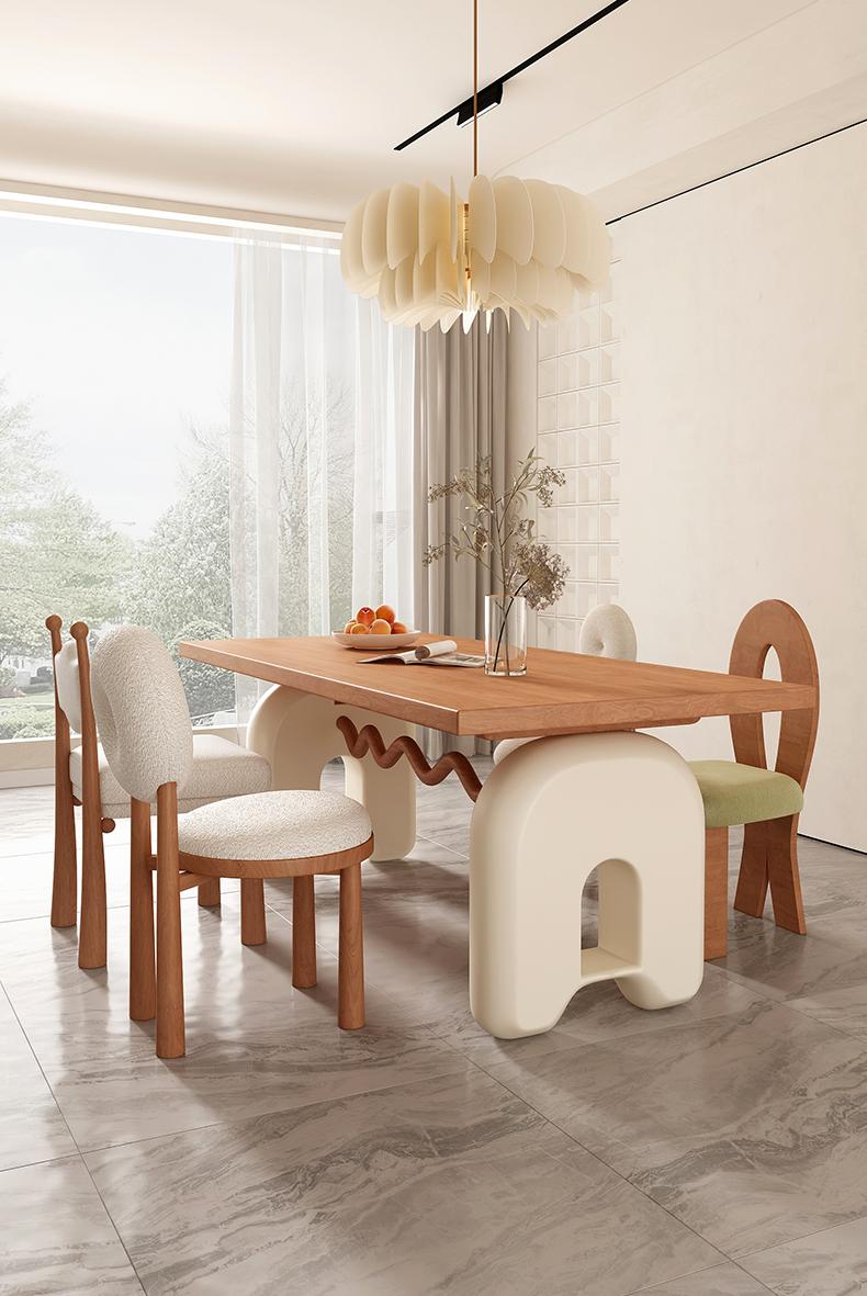 프랑스 크림 스타일 레트로 솔리드 우드 다이닝 테이블과 의자 조합 디자이너 중년 통나무 컬러 책상 직사각형 책상
