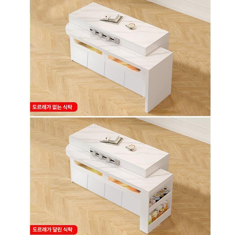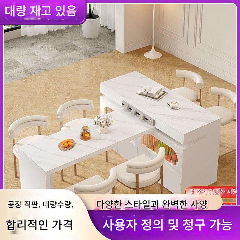 프랑스 크림 스타일 회전식 수납식 아일랜드 테이블 식탁 통합 주방 레스토랑 록 슬래브 바 캐비닛 파티션 캐비닛 9E