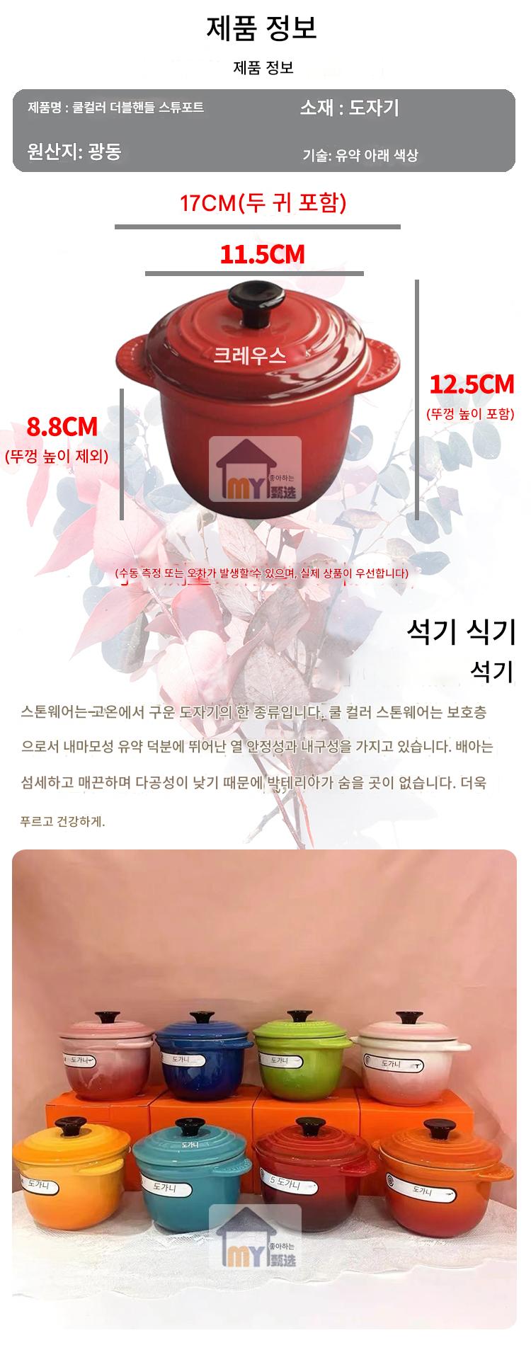 프랑스 LE CREUSET 쿨 컬러 스튜 냄비 가정용 언더글레이즈 컬러 물 스튜 뚜껑 디저트 더블 귀 스튜 냄비 라드 탱크