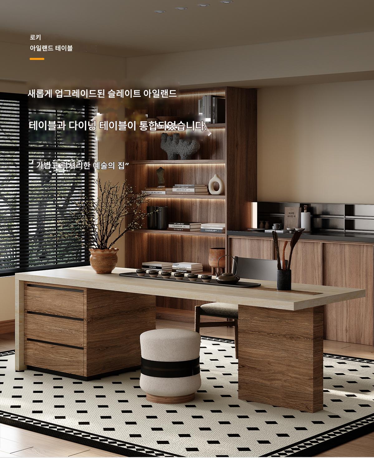 플러시 아일랜드 테이블 식탁 통합 가정용 소형 아파트 트라버틴 록 플레이트 플랫 가이드 테이블 바 주방 고급 다운턴