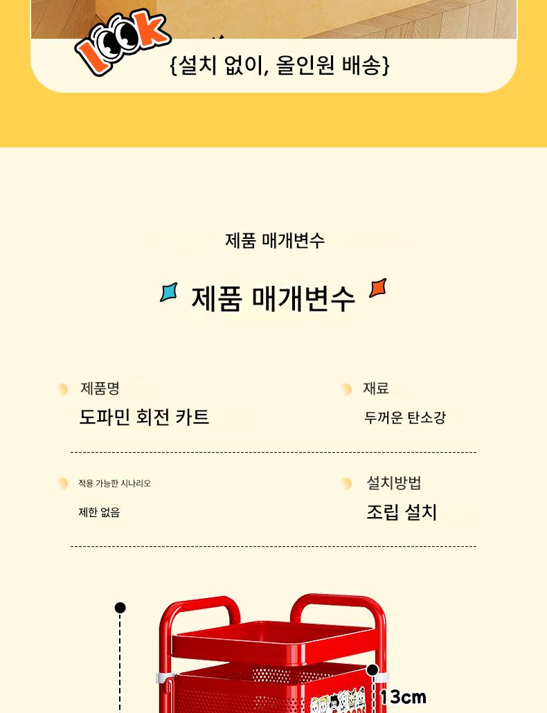 플린트 도파민 트롤리 스낵 랙 이동식 바닥 홈 거실 주방 다층 수납 랙