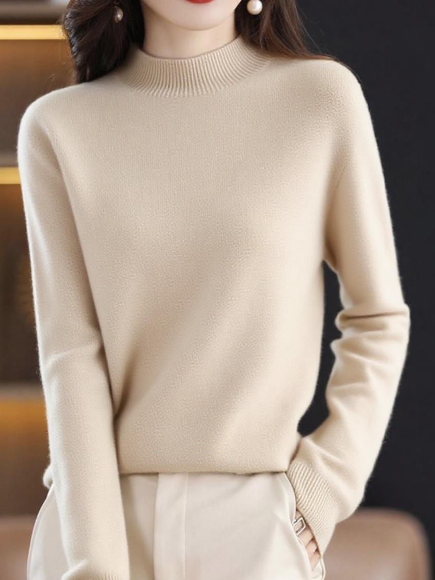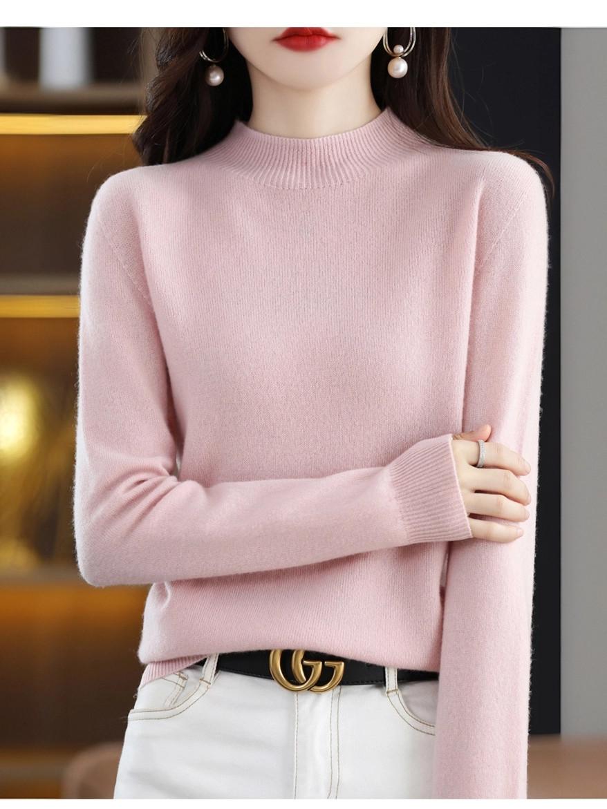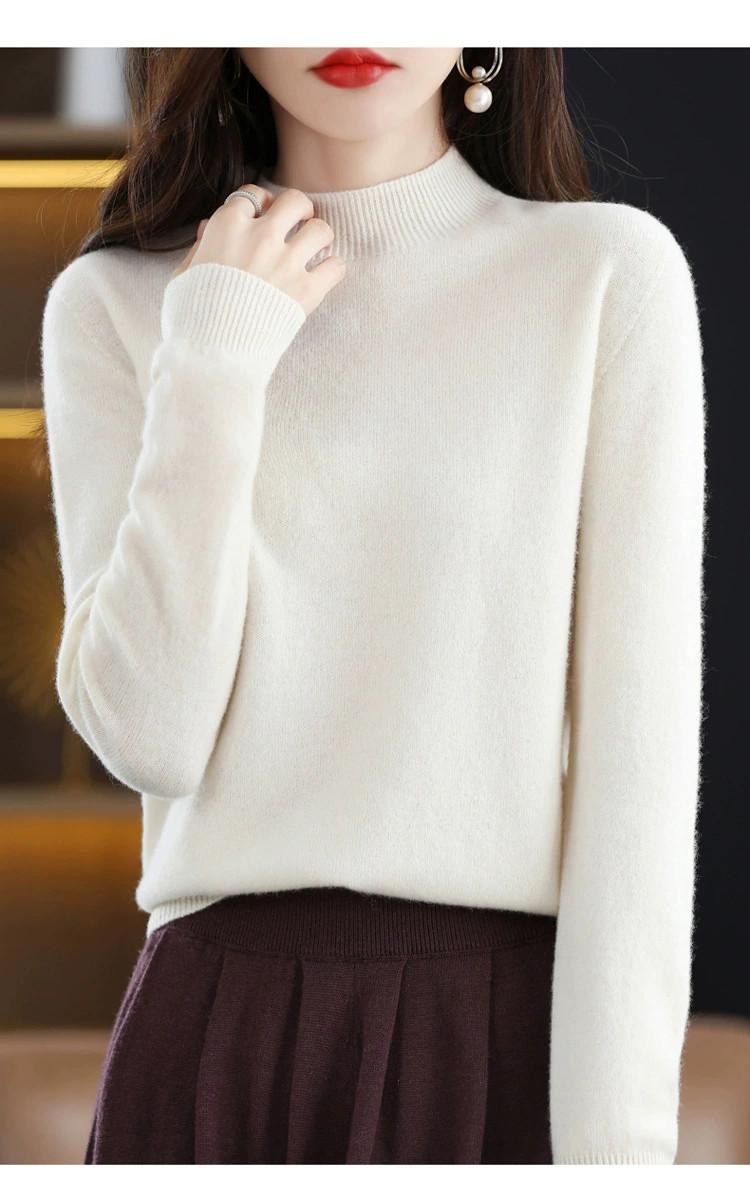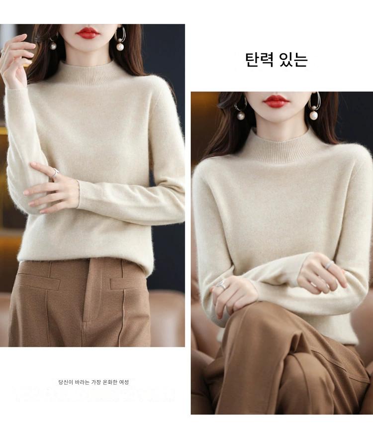 피부감촉 스웨터, 솔기 없는 니트 카디건, 가을 겨울 여성용 하프 하이 칼라, 느슨한 바텀, 다용도