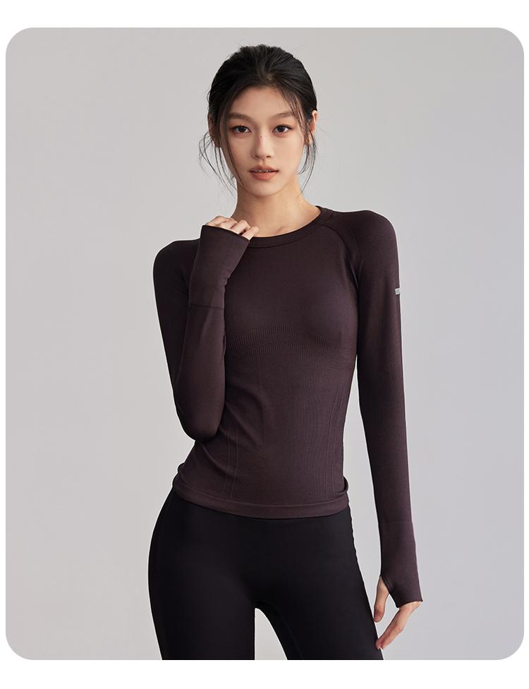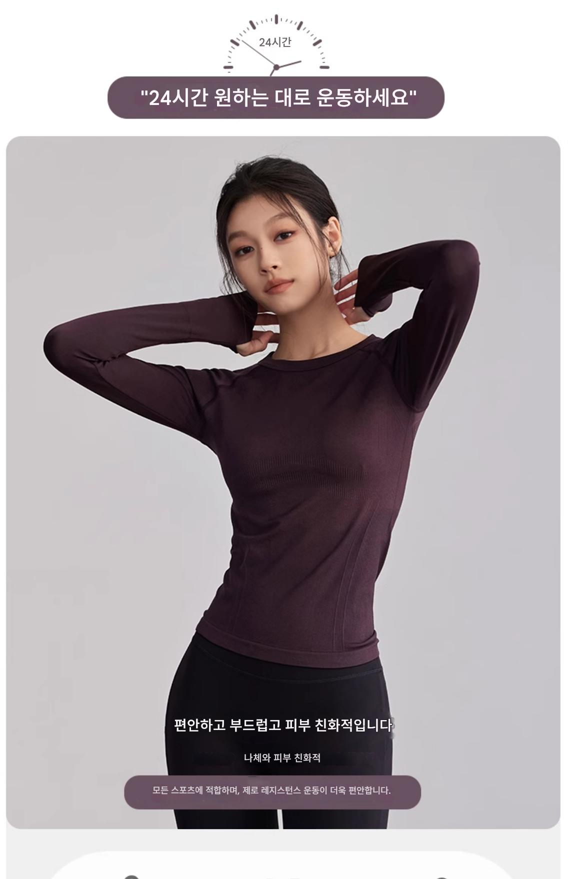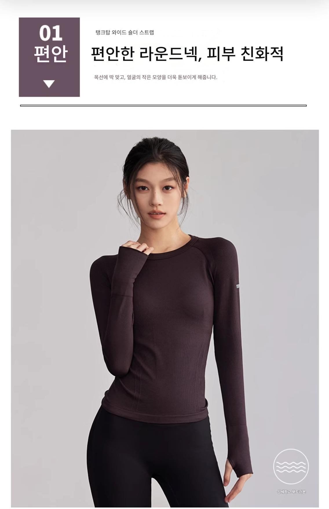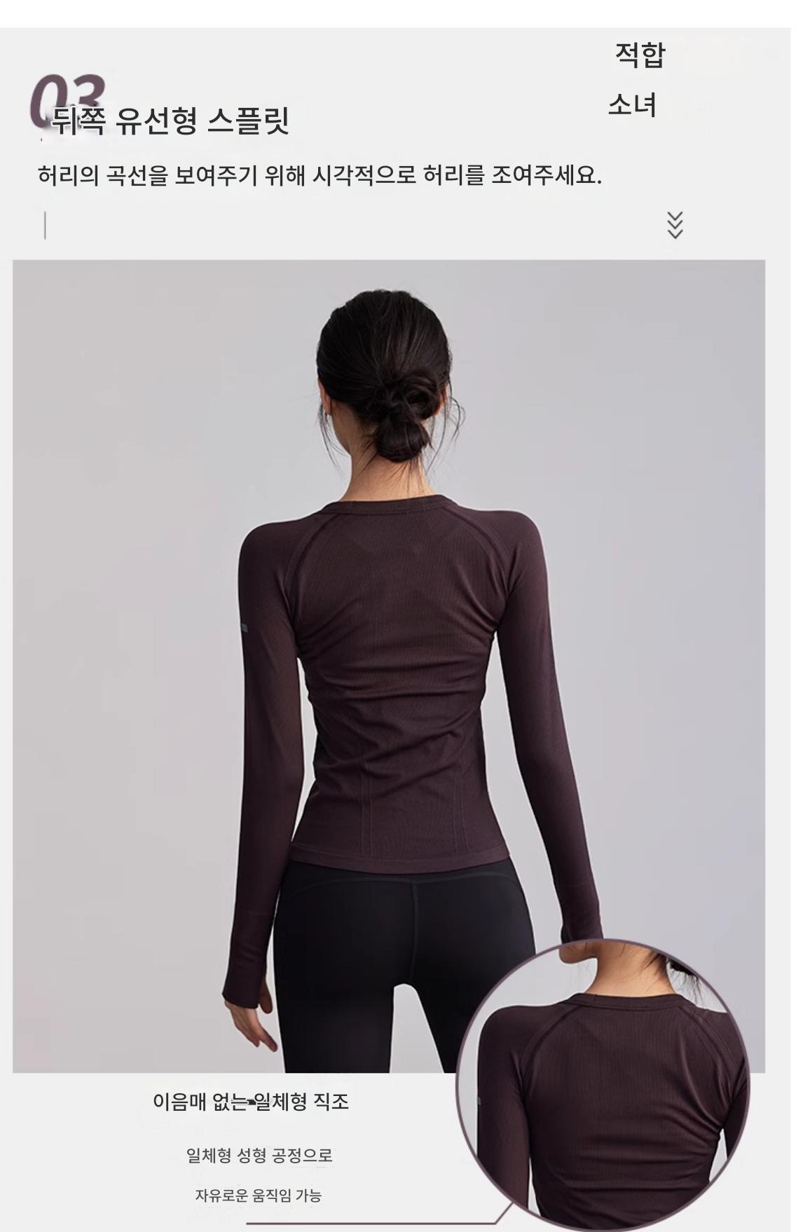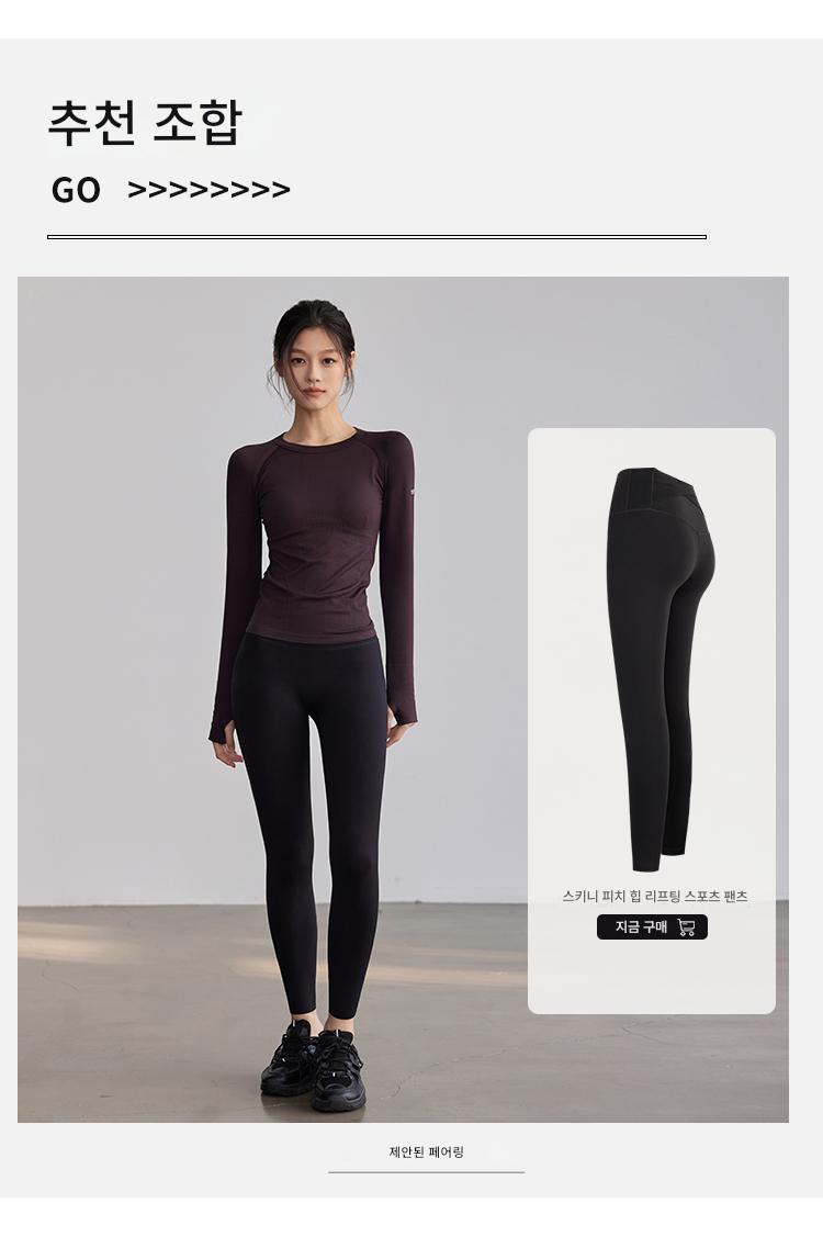 피트니스 걸스 라운드넥 타이트 요가복 속건성 러닝 스포츠 상의 프로페셔널 필라테스 트레이닝 신축성 긴팔