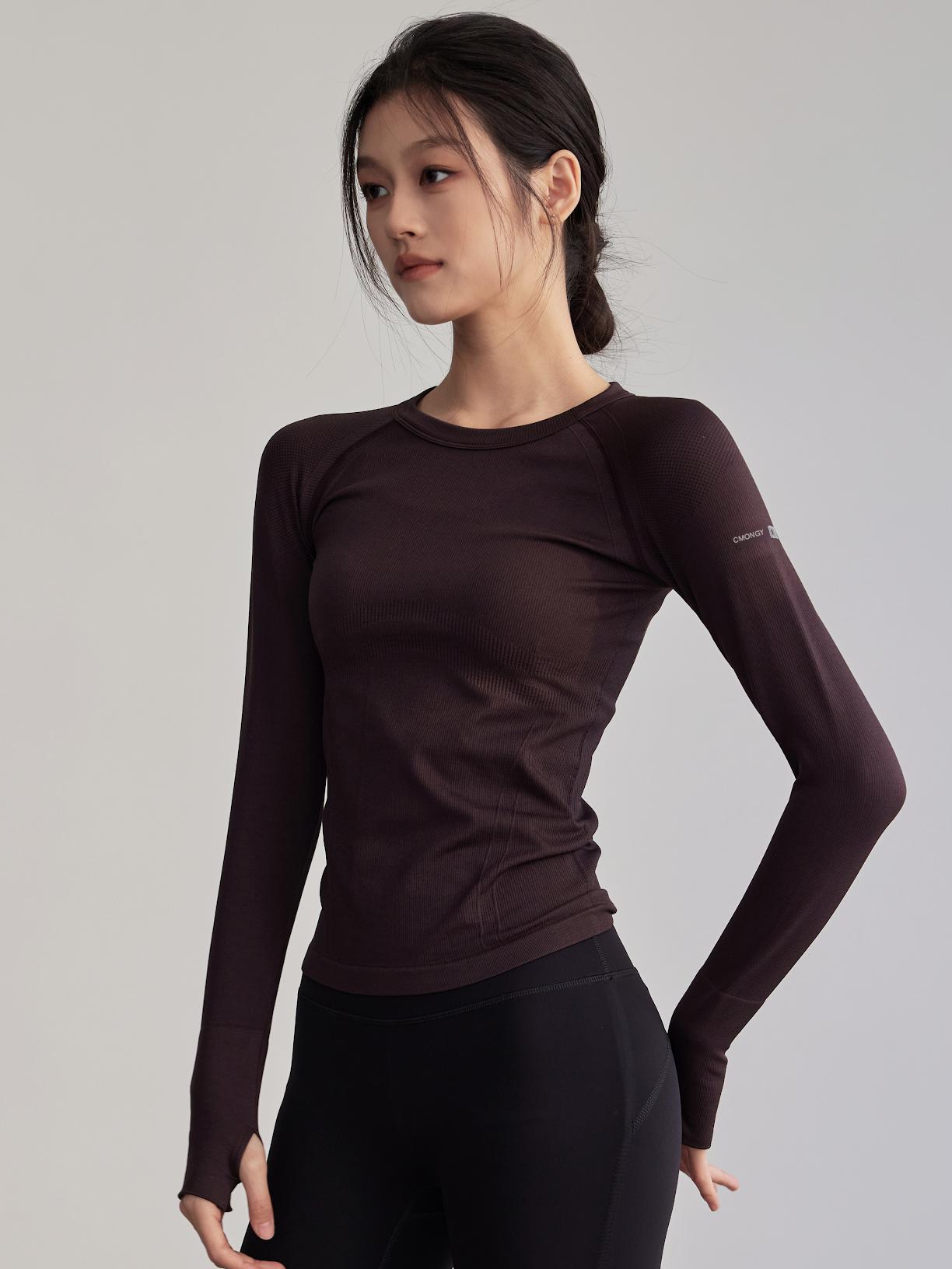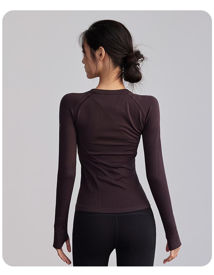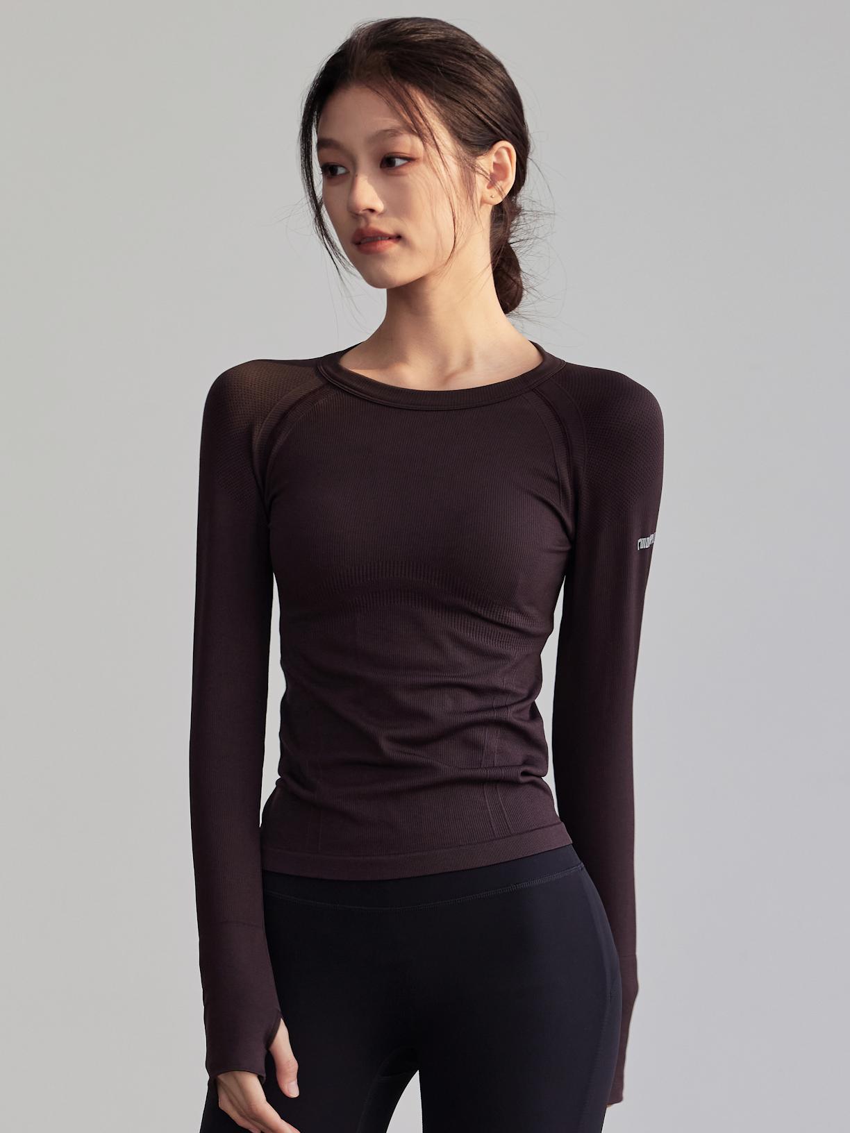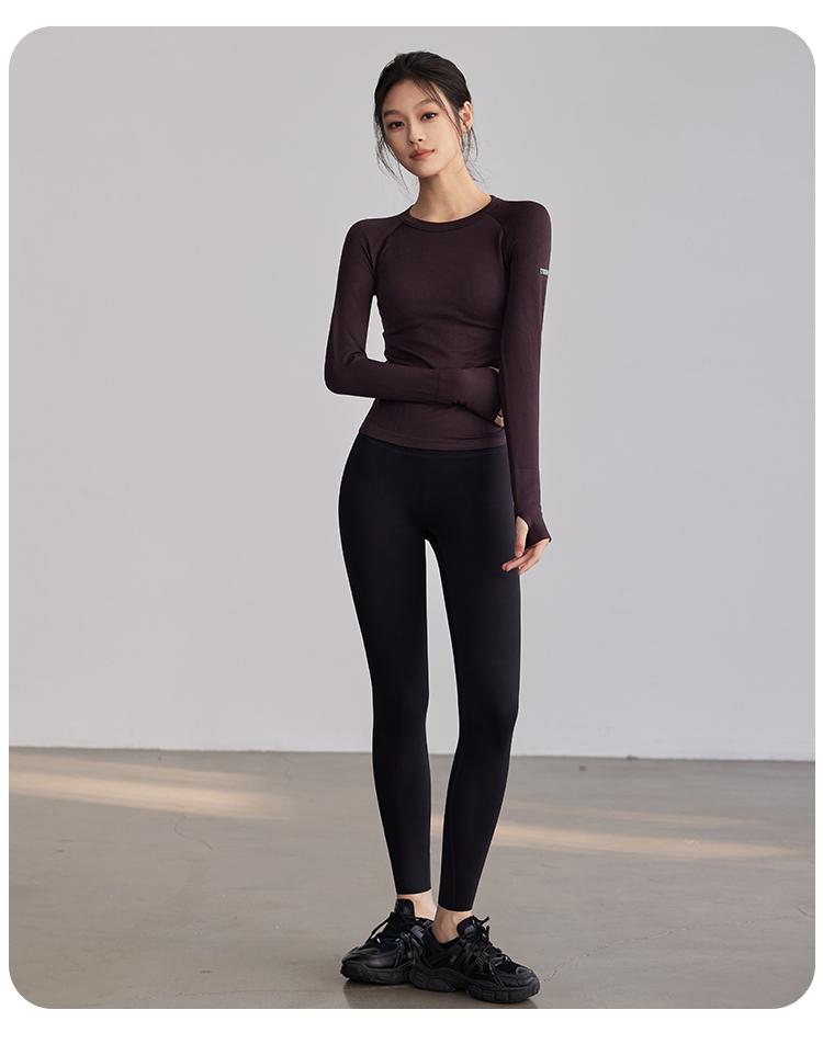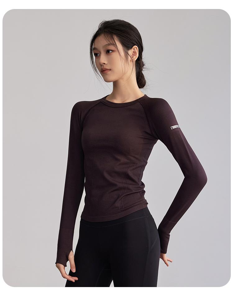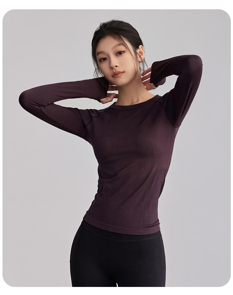 피트니스 걸스 라운드넥 타이트 요가복 속건성 러닝 스포츠 상의 프로페셔널 필라테스 트레이닝 신축성 긴팔