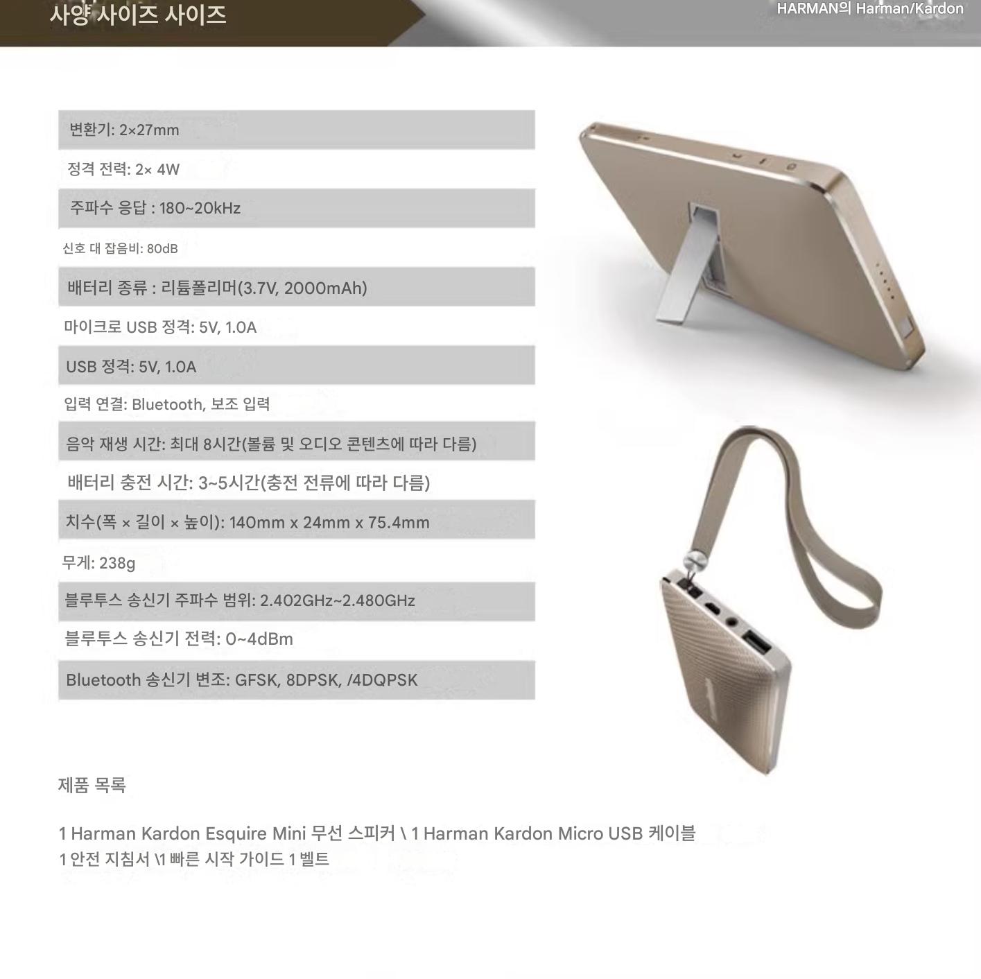 하만카돈 에스콰이어 미니 미니 뮤직 엘리트 무선 블루투스 스피커 휴대용 미니 스피커