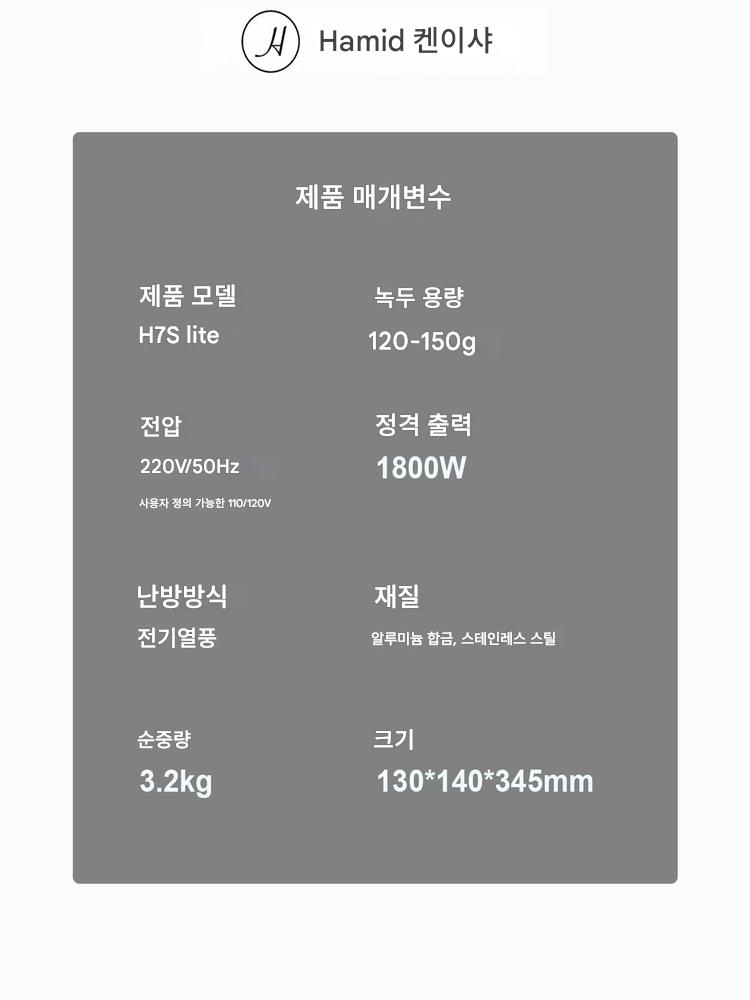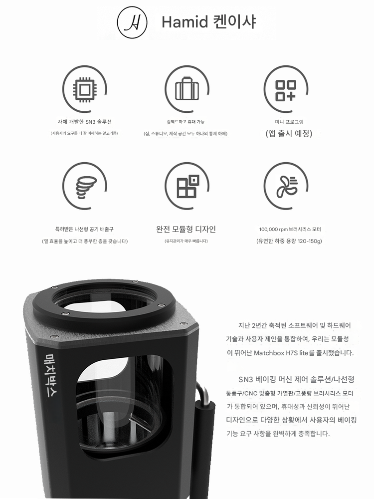 하미드 얀카셰 매치박스 H7S 라이트 전자동 커피콩 로스터 로스터 프로그램 홈
