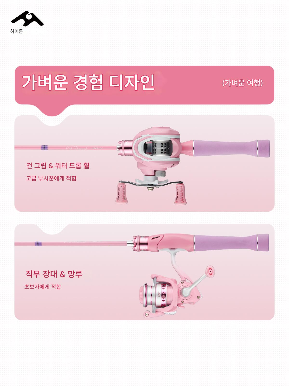 하오둔 핑크 마카롱 루어낚싯대 마이크로오브젝트 말입낚싯대 풀세트 초보 어린이 장거리 캐스팅 여자 낚싯대 세트