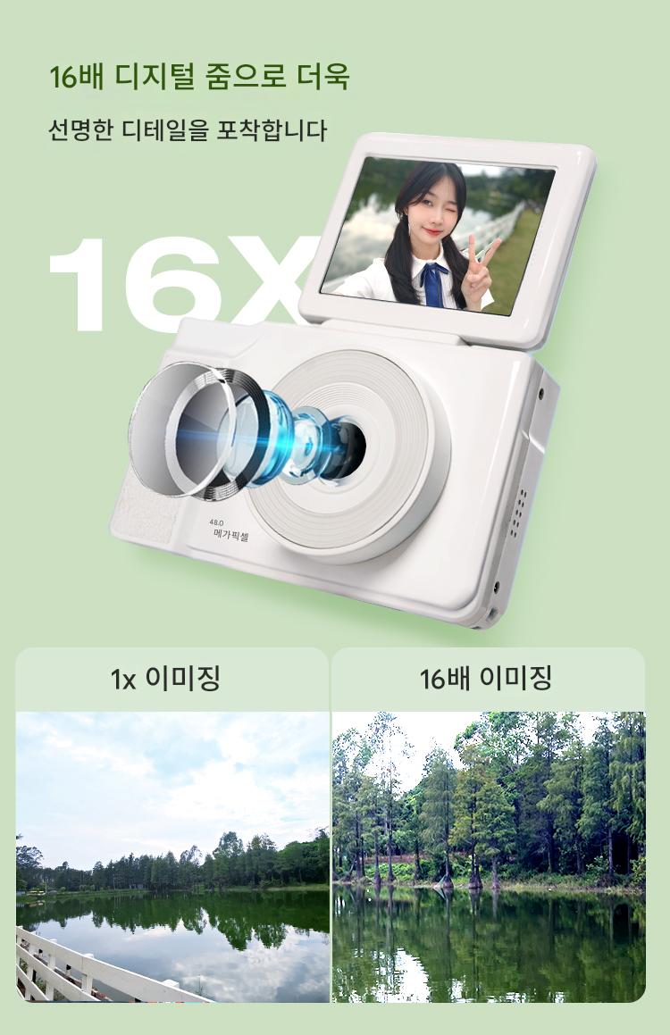 浅草绿丨4800万丨【翻转屏可自拍+高清录像+16倍变焦+补光灯】 > 标配不带卡⭐自备内存卡⭐(无卡不能使用)