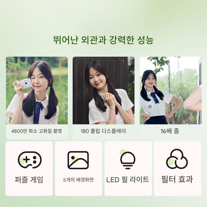 浪漫甜蜜礼盒【青草绿】⭐【翻转屏可自拍+高清录像+16倍变焦+补光灯】 > 标配不带卡⭐自备内存卡⭐(无卡不能使用)