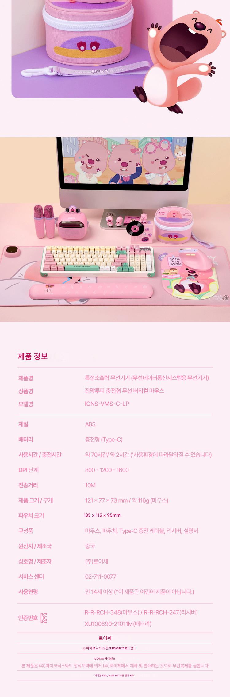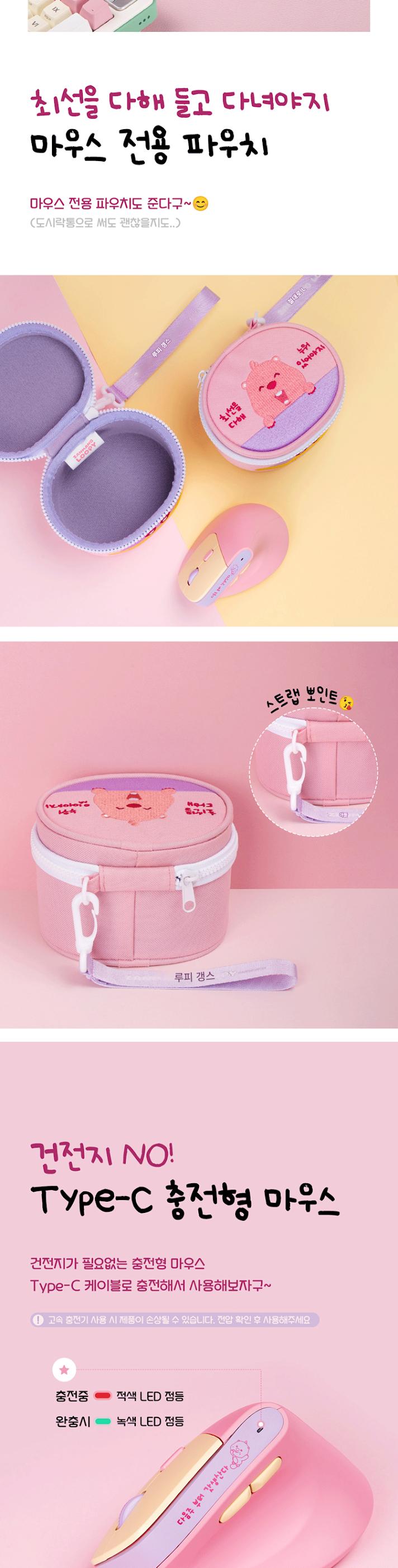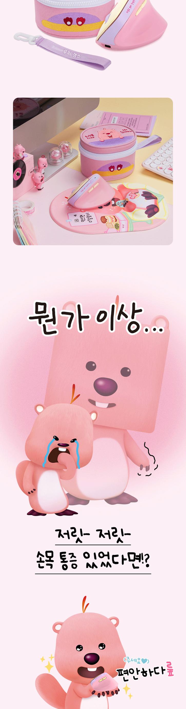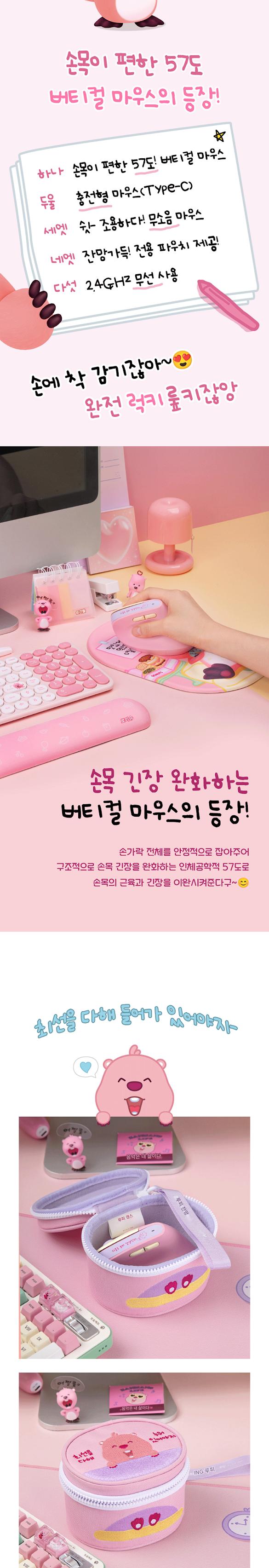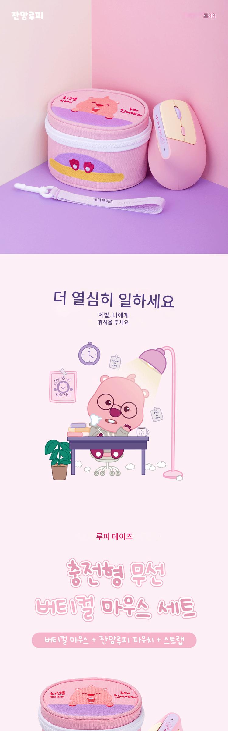 한국어 루피 핑크 비버 인체공학적 수직 수직 그립 마우스 무선 충전 무소음 만화 귀여운 여성