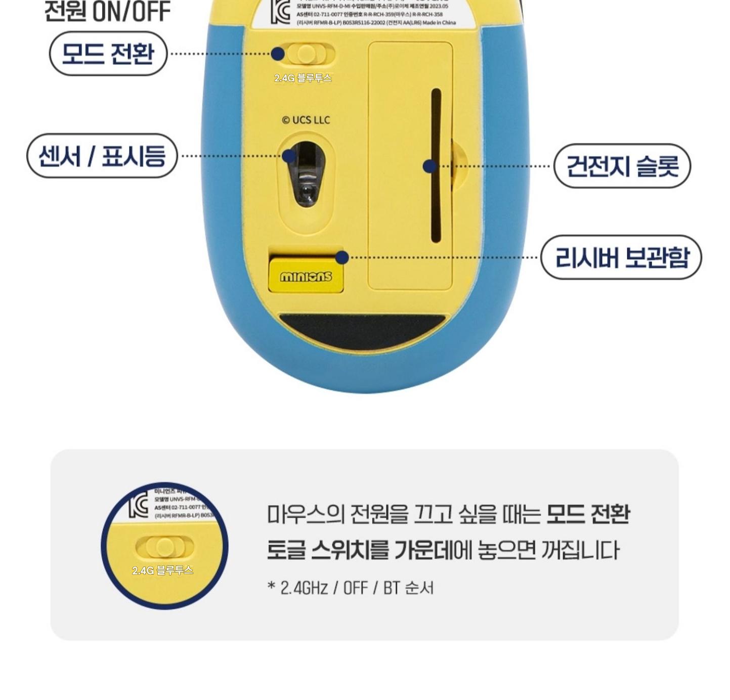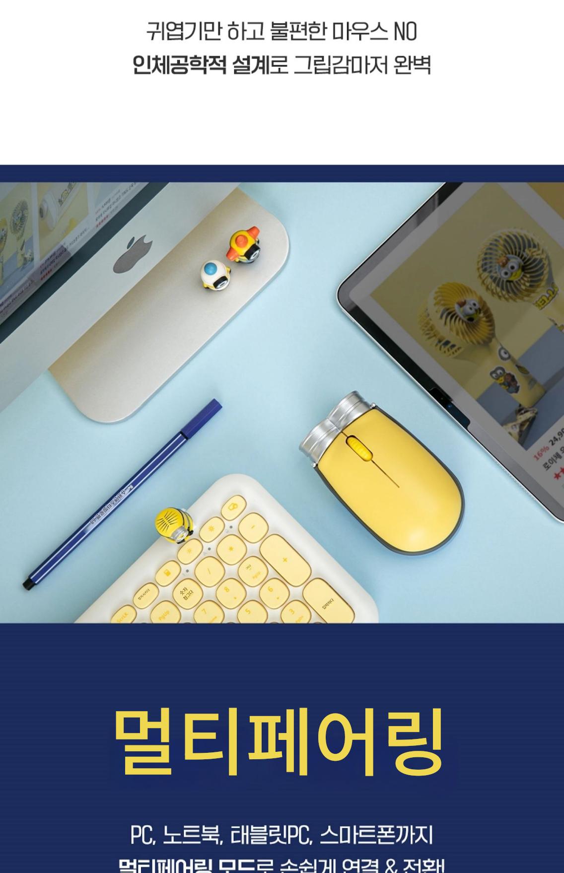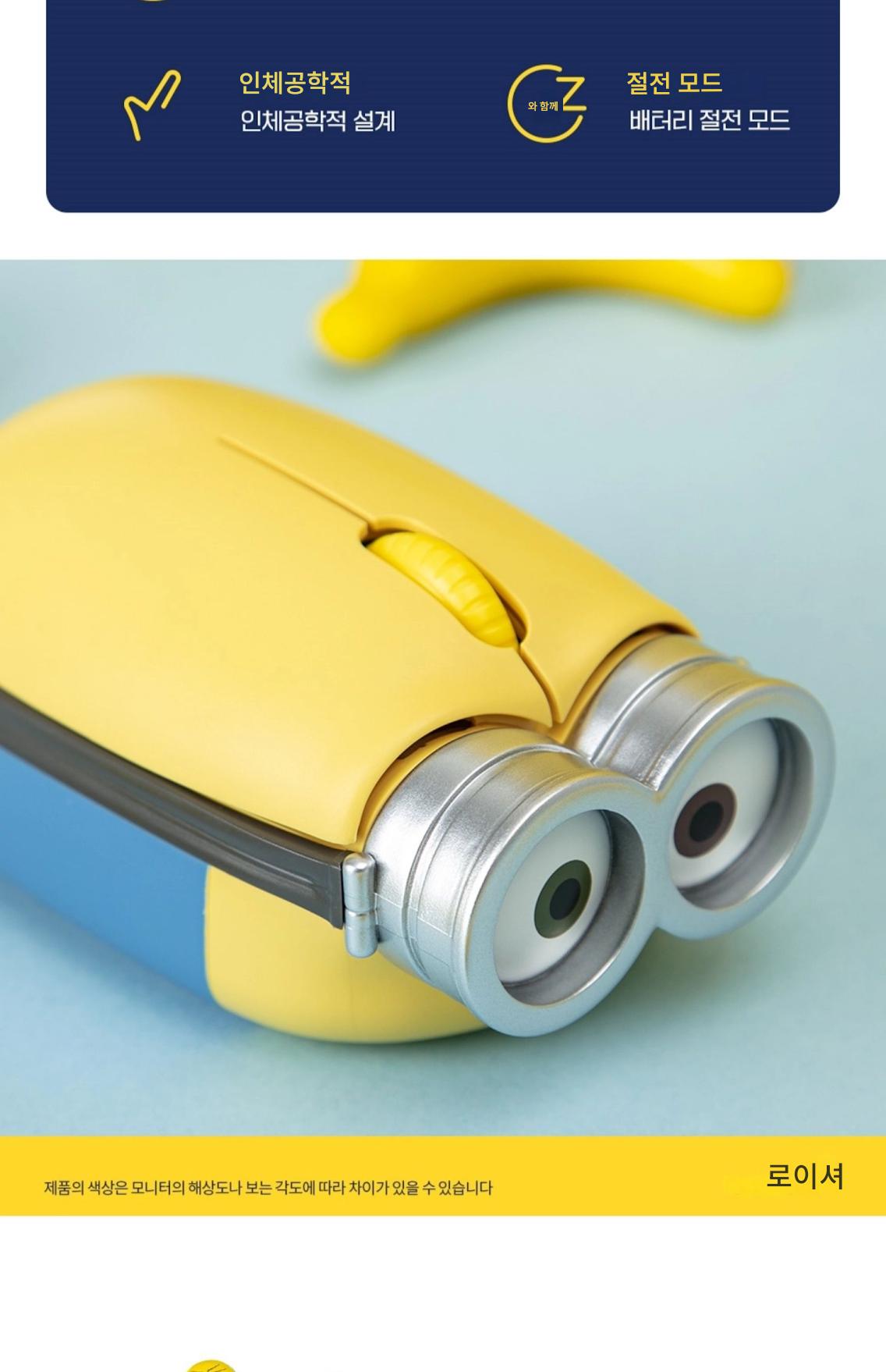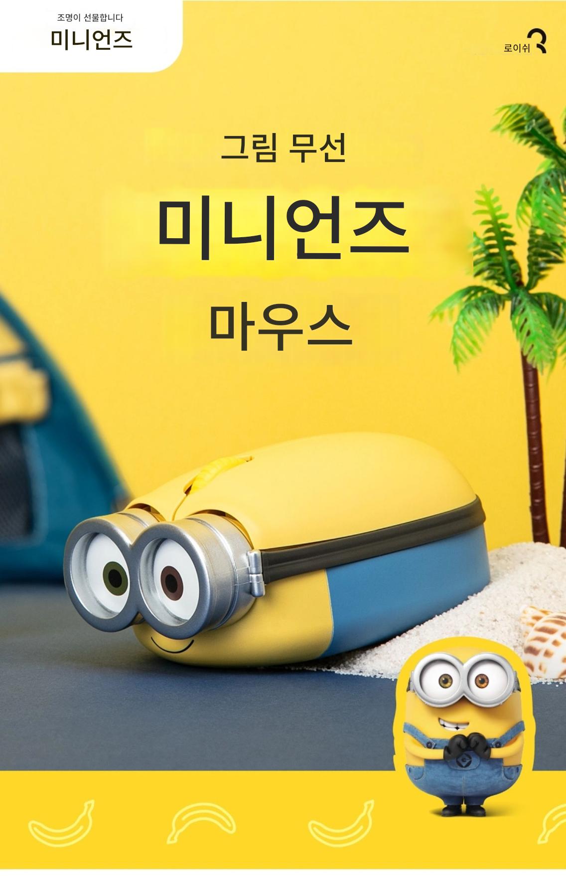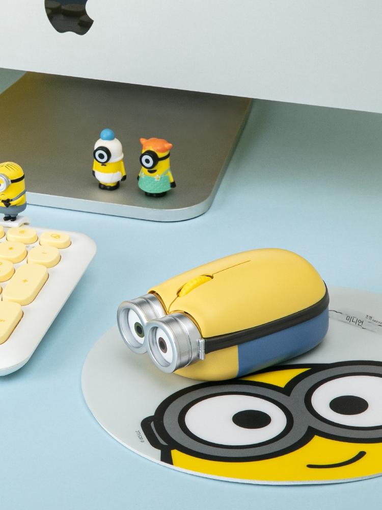 한국 미니언 만화 귀여운 무선 블루투스 마우스 스테레오 3D 사무실 홈 무소음 듀얼 모드 노트북