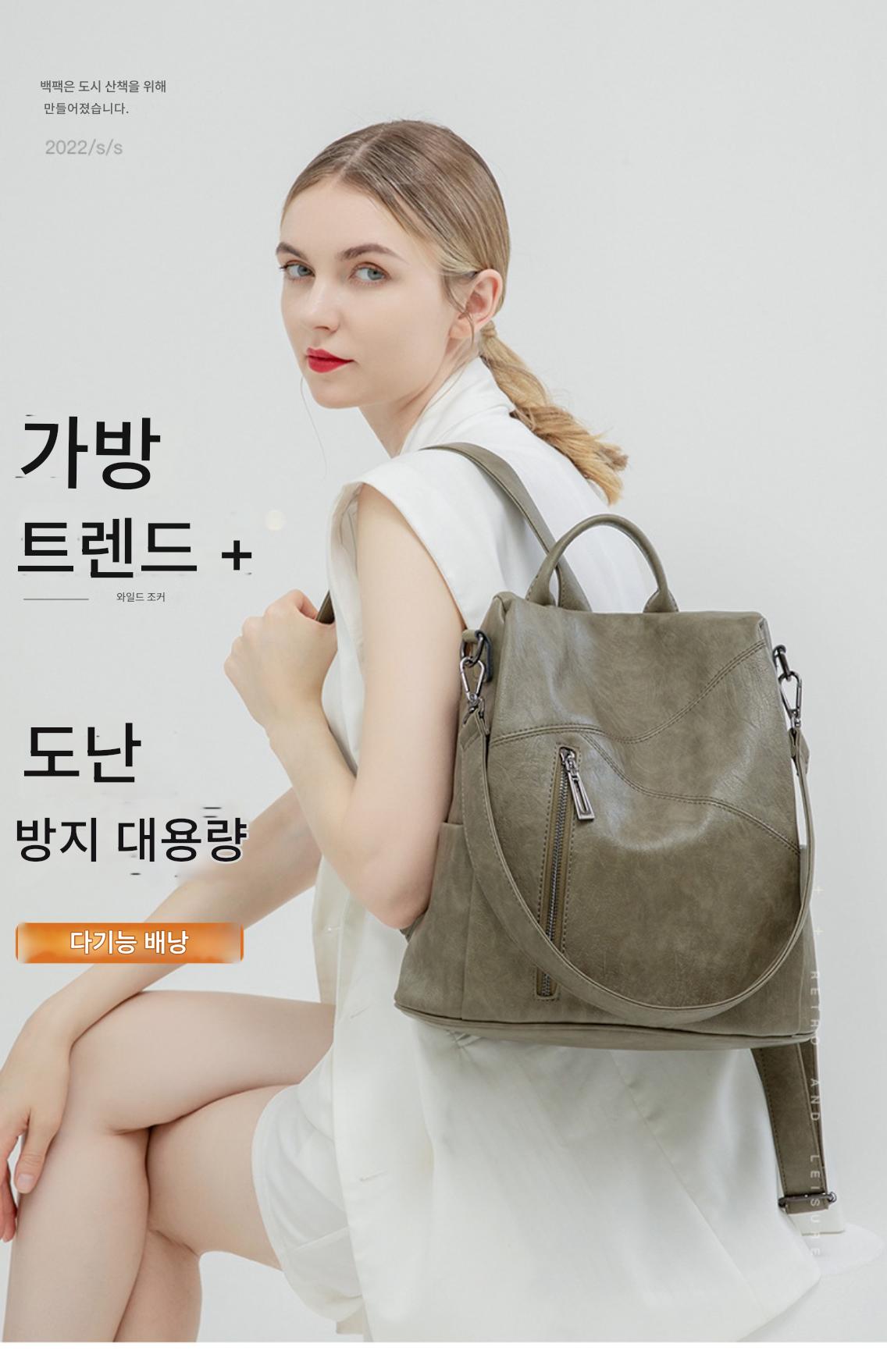 한국 버전 여성용 백팩 신제품 2022년 여름 다용도 소프트 가죽 백팩 대용량 레저 도난 방지 여행 가방 다목적