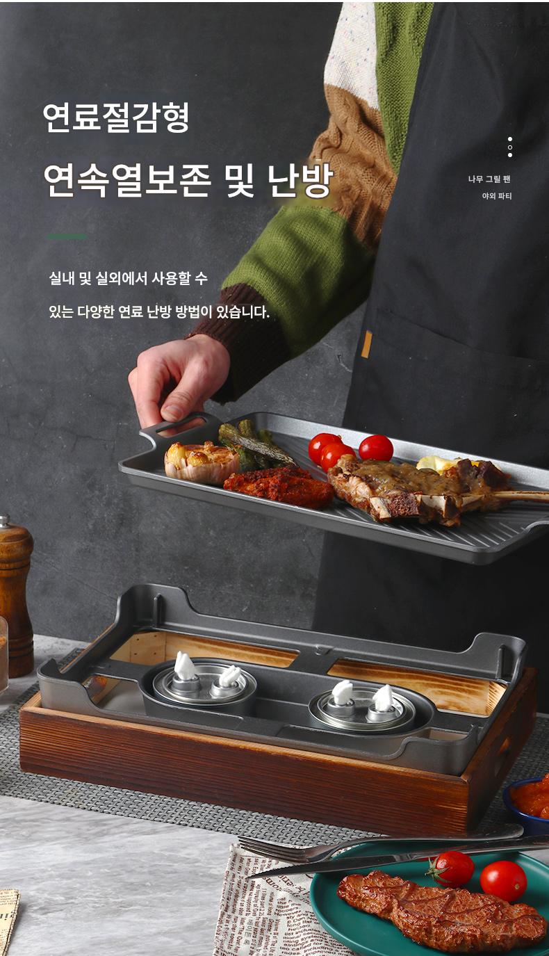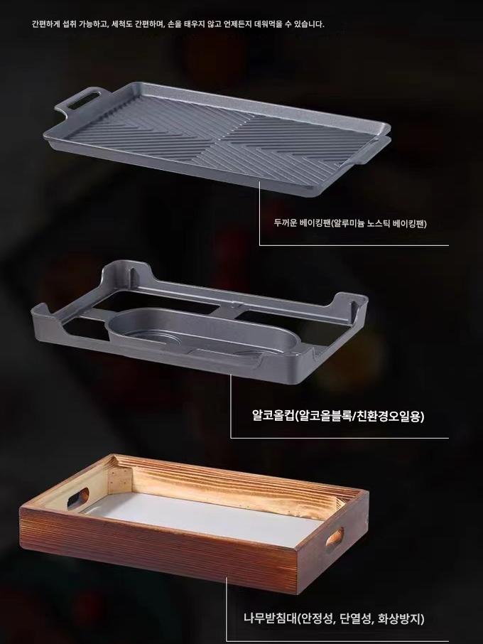한국 상업용 알루미늄 합금 화상 방지 바베큐 단열로 가열 끈로 고체 알코올로 숯 양고기 갈비 노스틱 플레이트