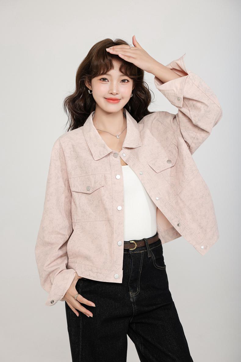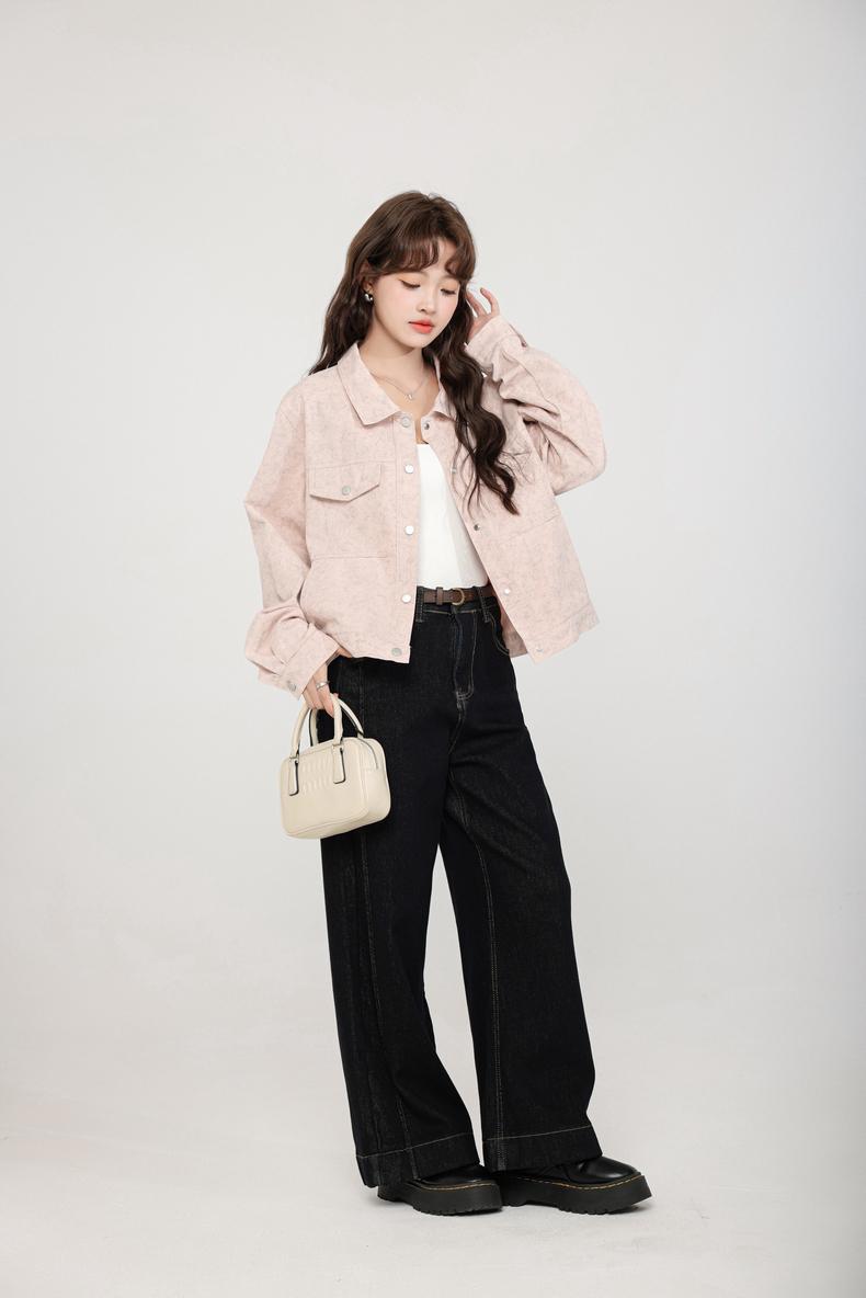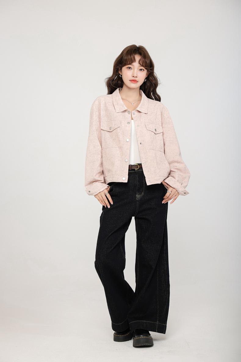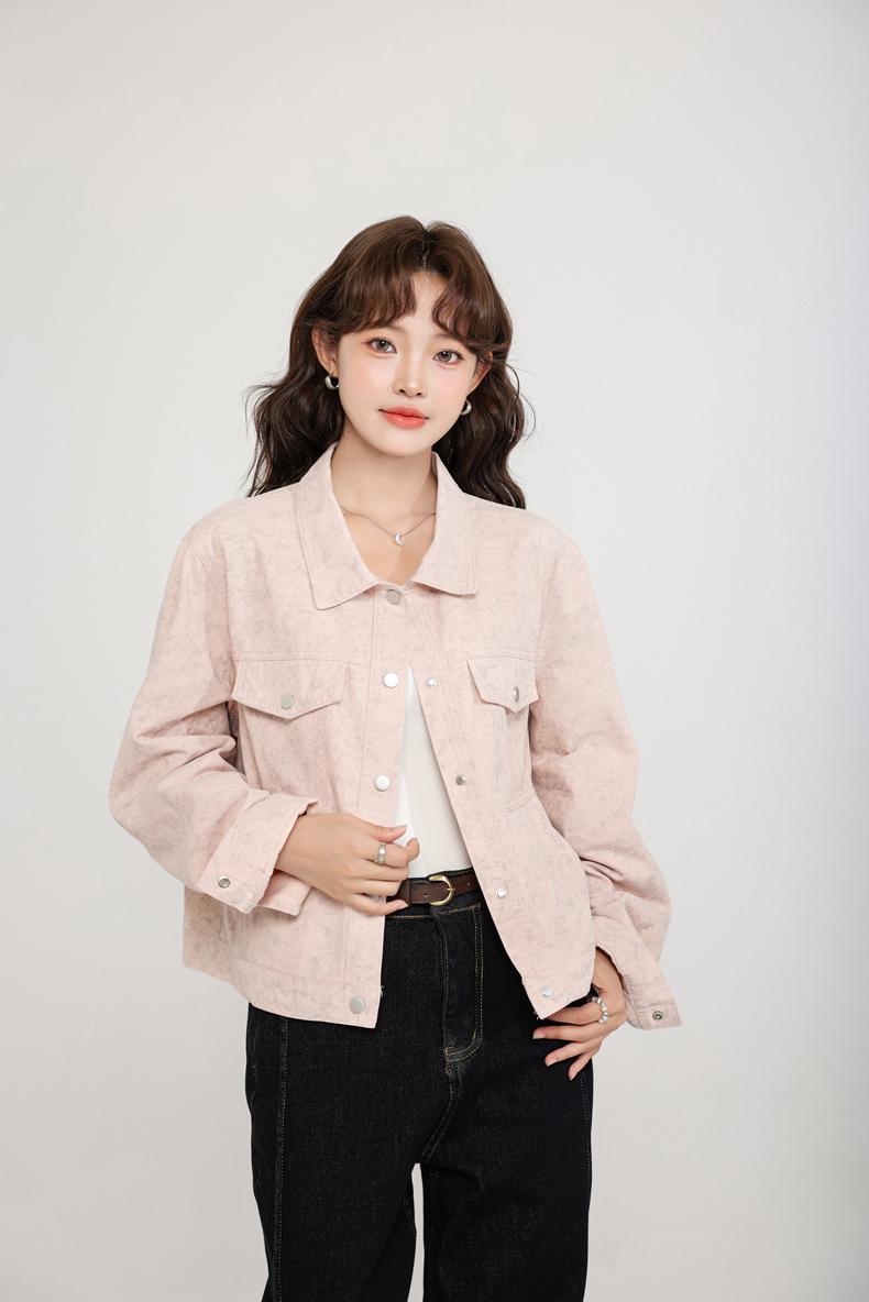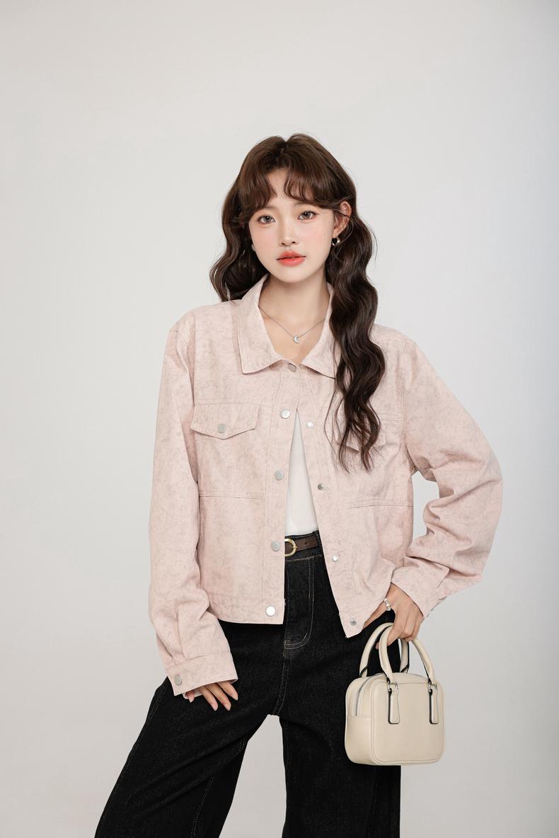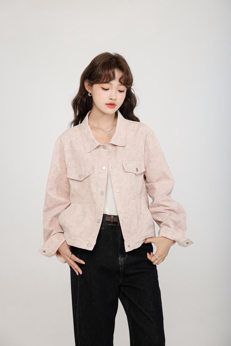 한국 스타일 핑크 폴로 칼라 데님 재킷 여성 2025 가을 신상품 패션 슬림 다용도 짧은 카디건 탑