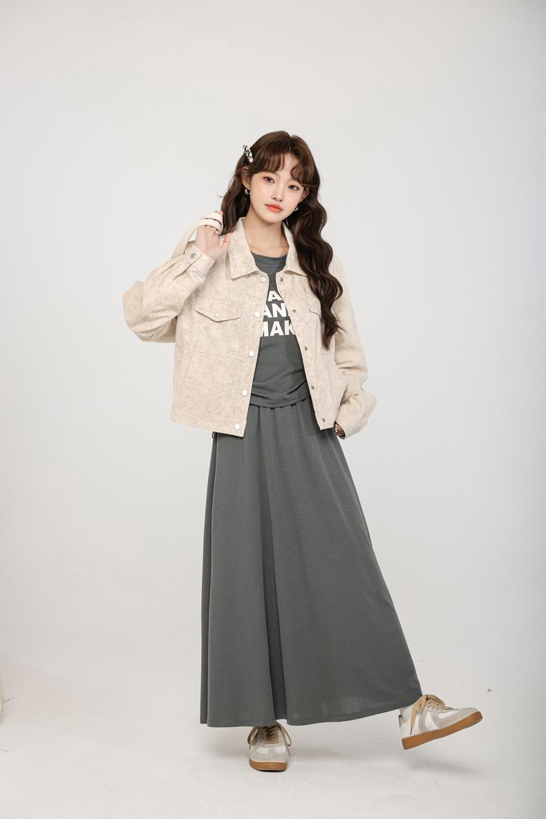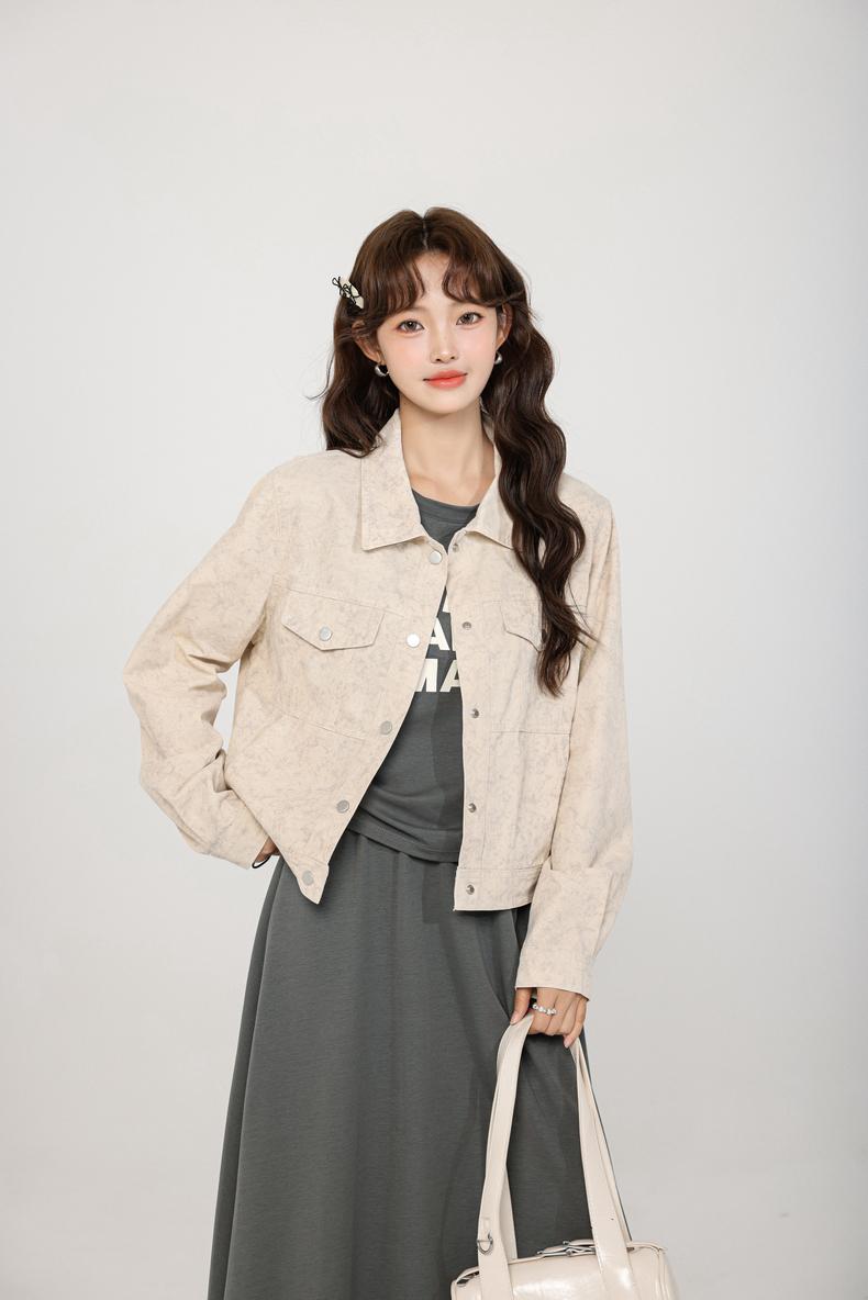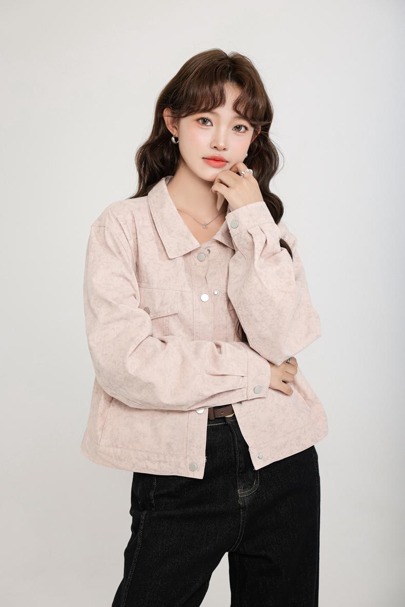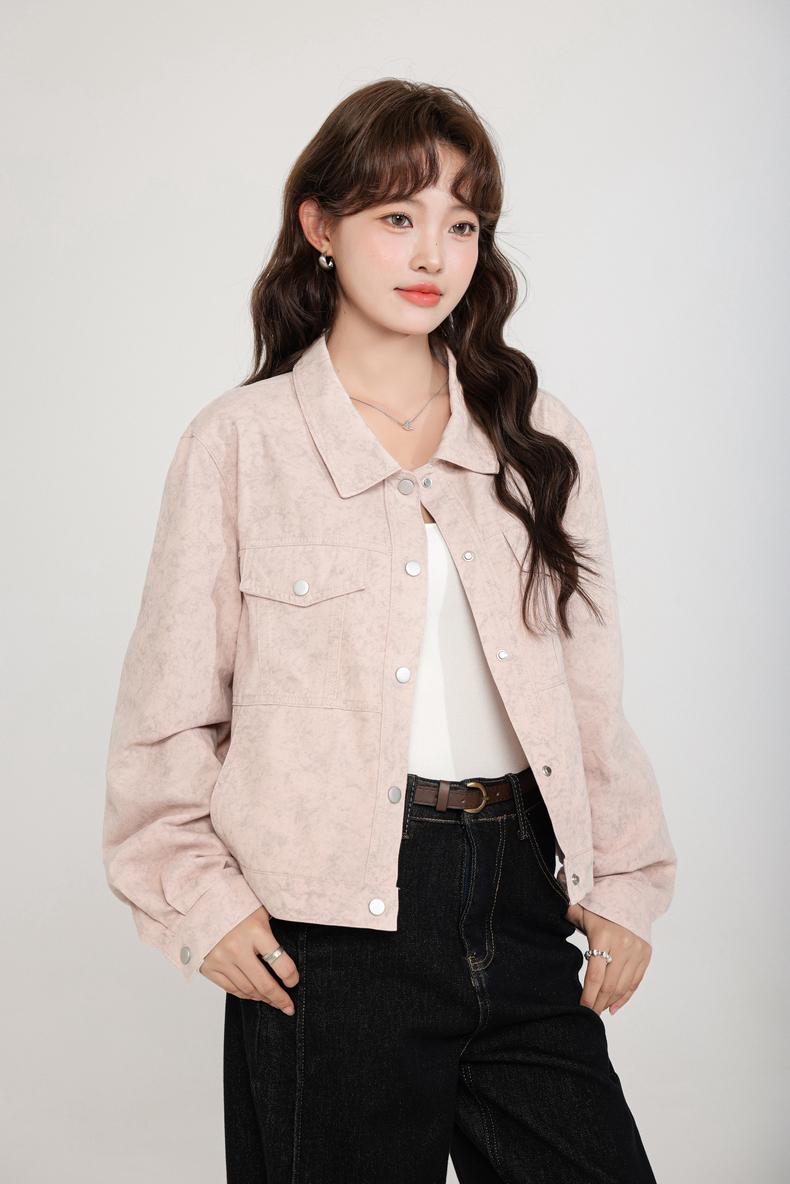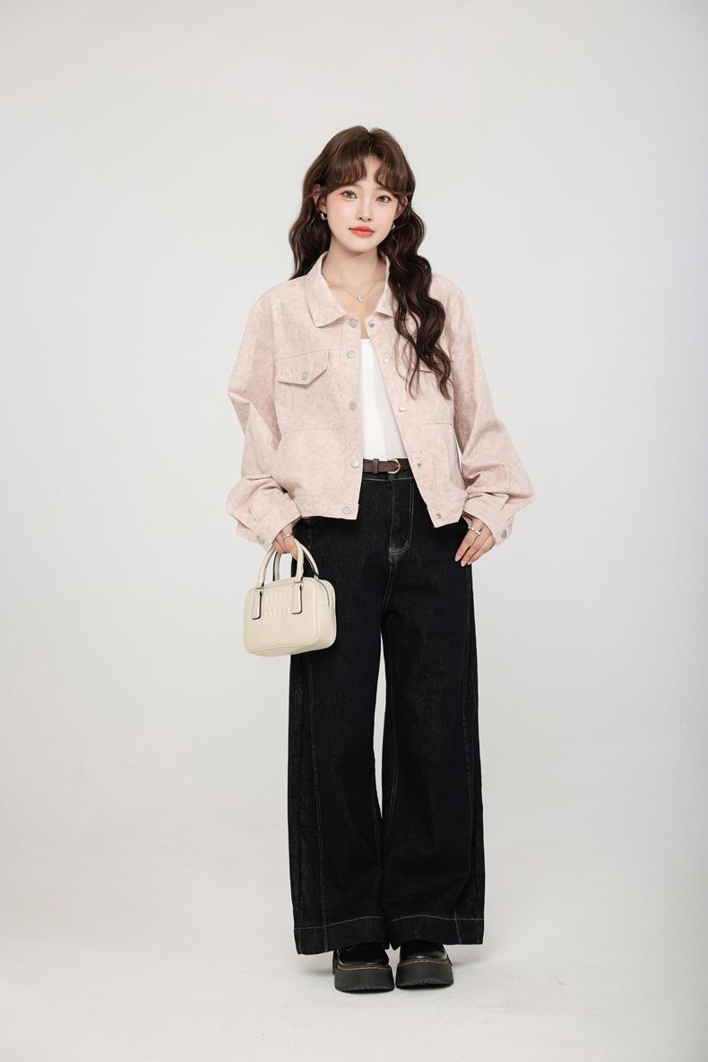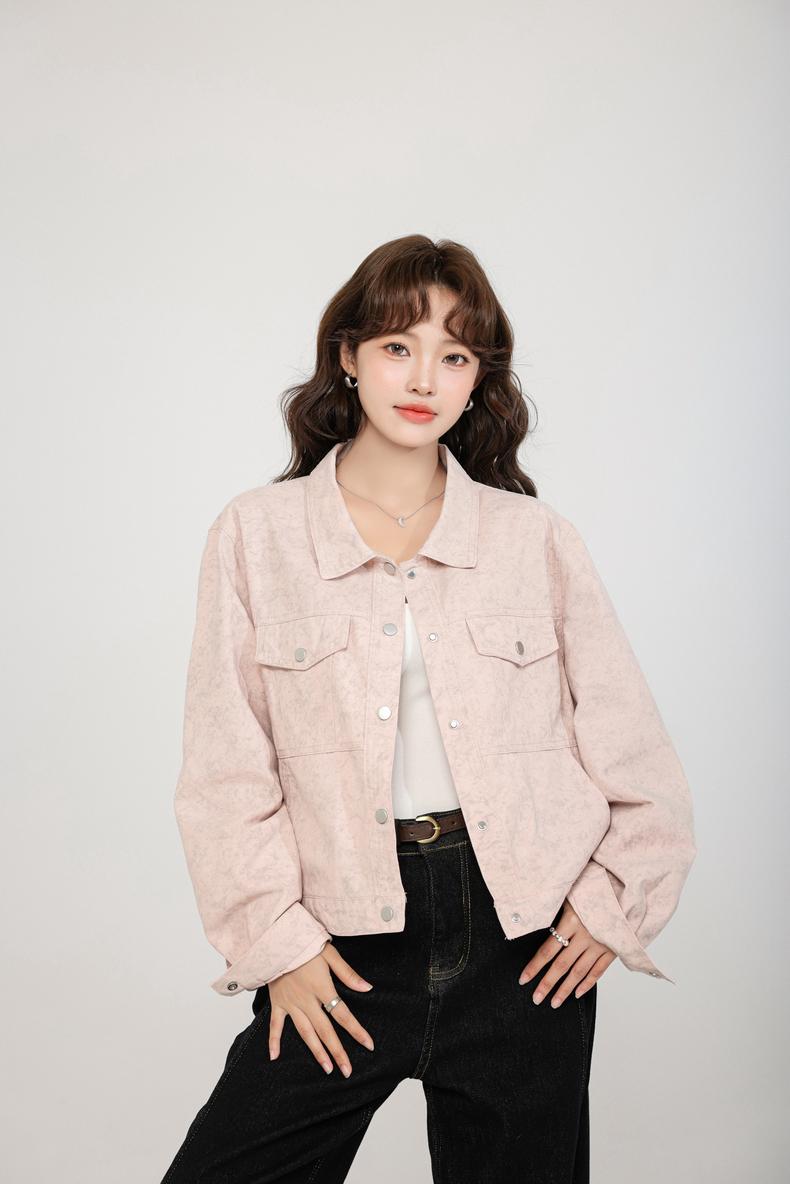 한국 스타일 핑크 폴로 칼라 데님 재킷 여성 2025 가을 신상품 패션 슬림 다용도 짧은 카디건 탑