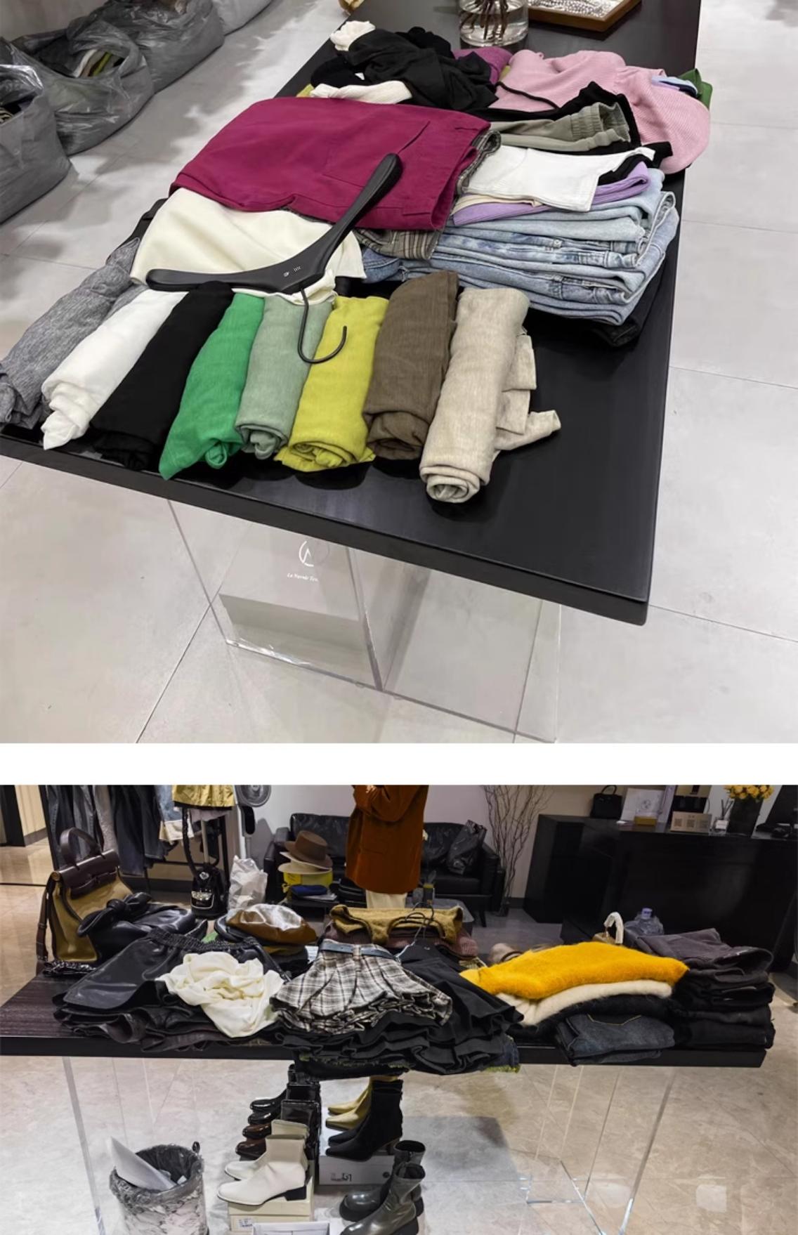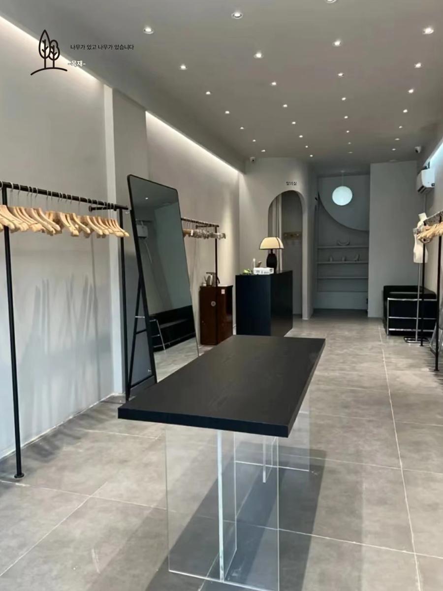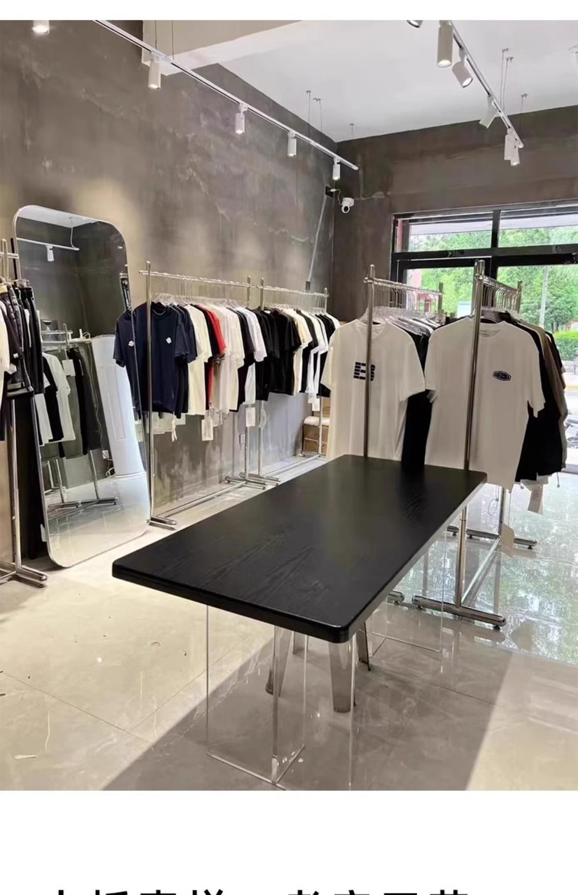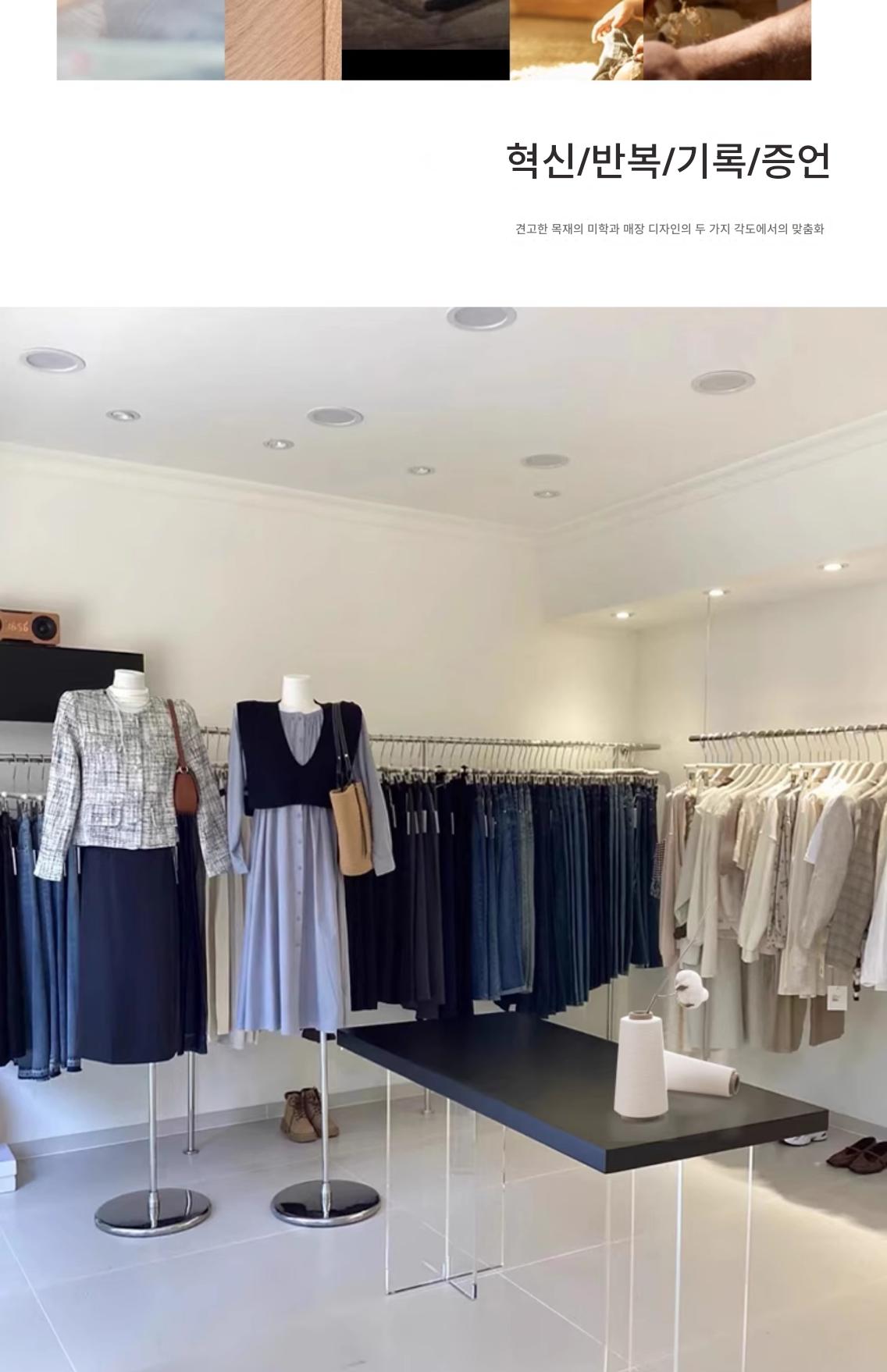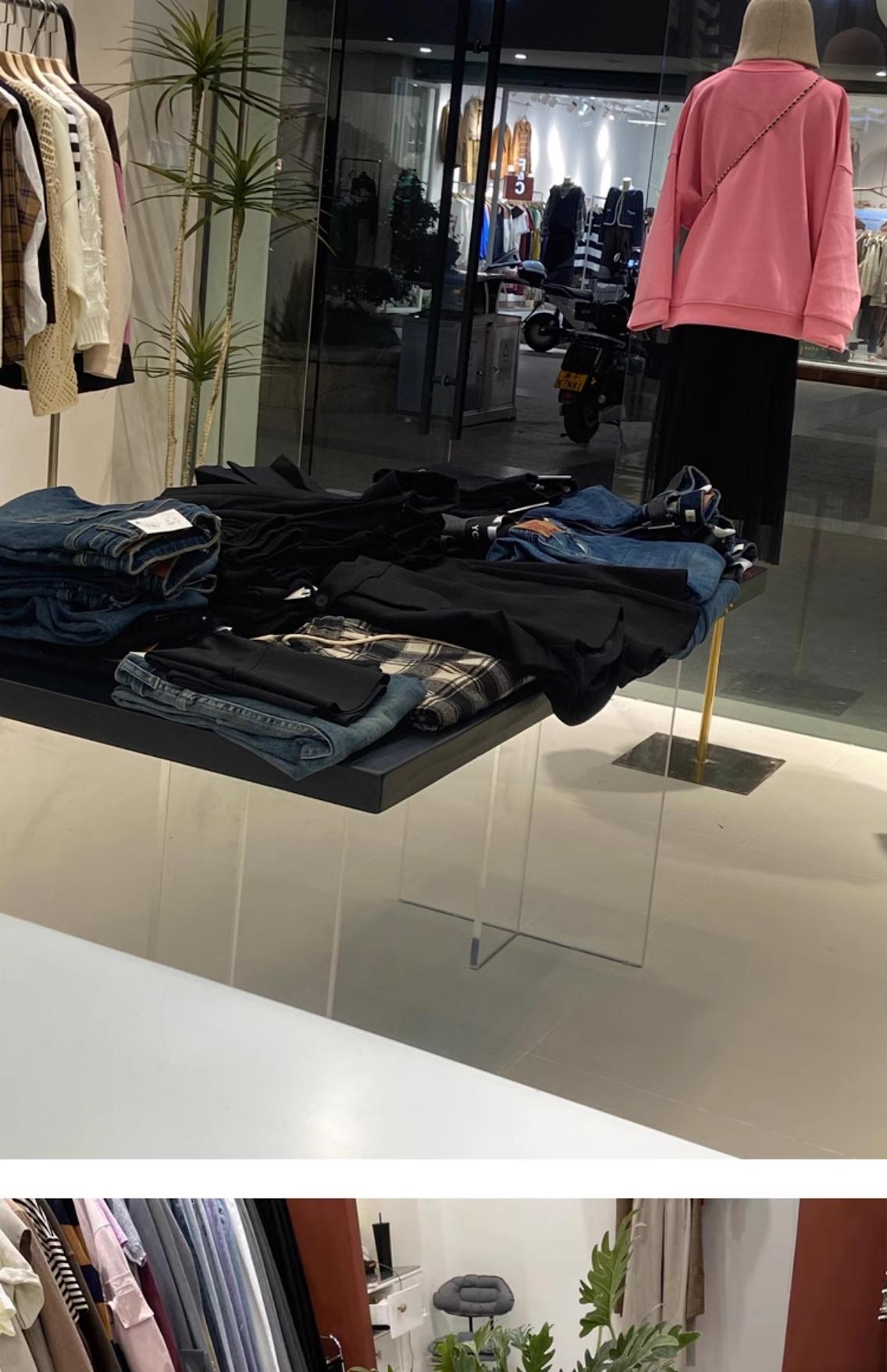 한국 의류 매장 섬 디스플레이 테이블 옷장 테이블 아크릴 다리 가운데 견고한 나무 식탁 디스플레이 테이블