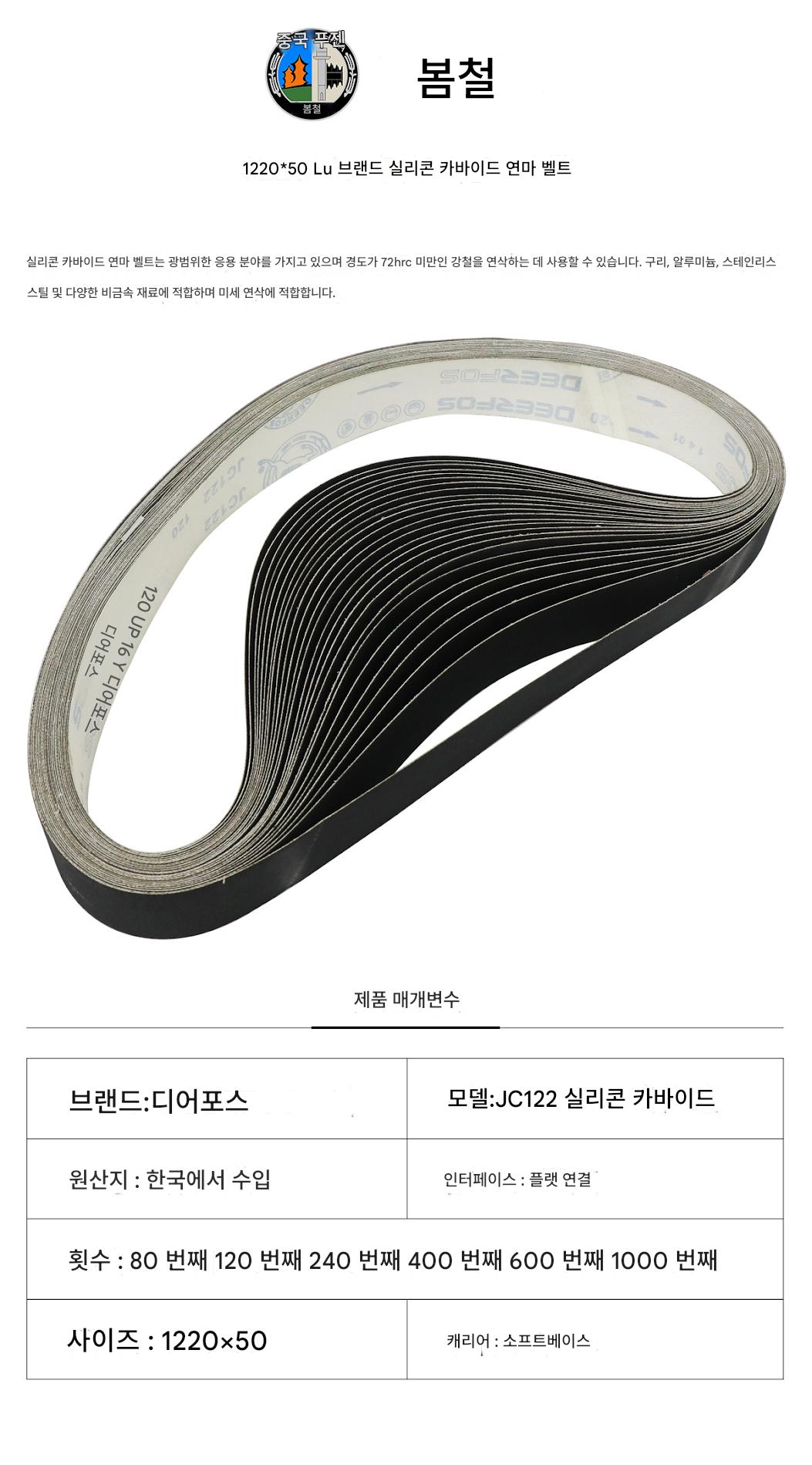 한국 DEERFOS 디어 브랜드 / 수입 지르코늄 코런덤 실리콘 카바이드 연마 벨트 / 1220 * 50 / 2 인치 * 48 인치 플랫 조인트