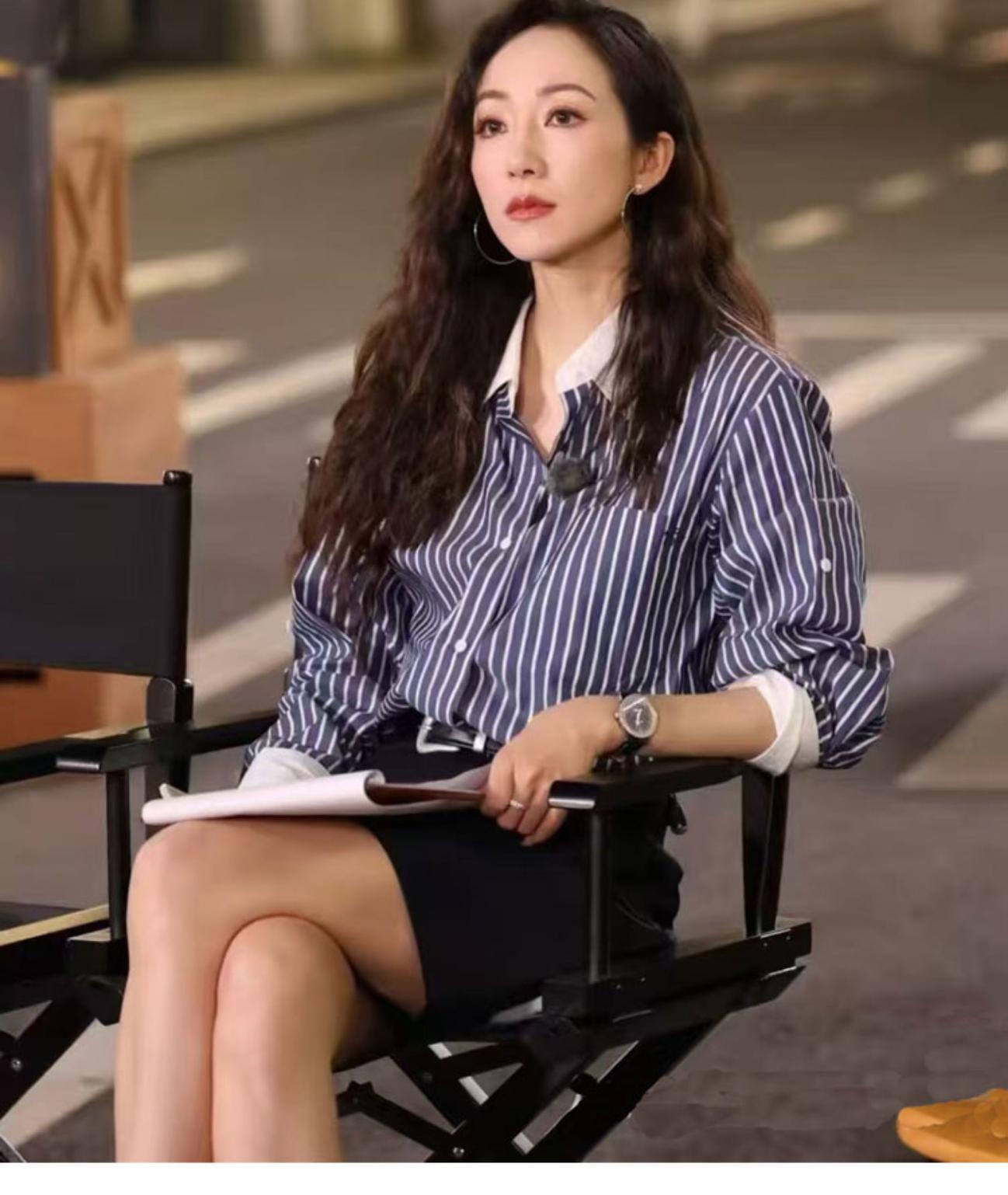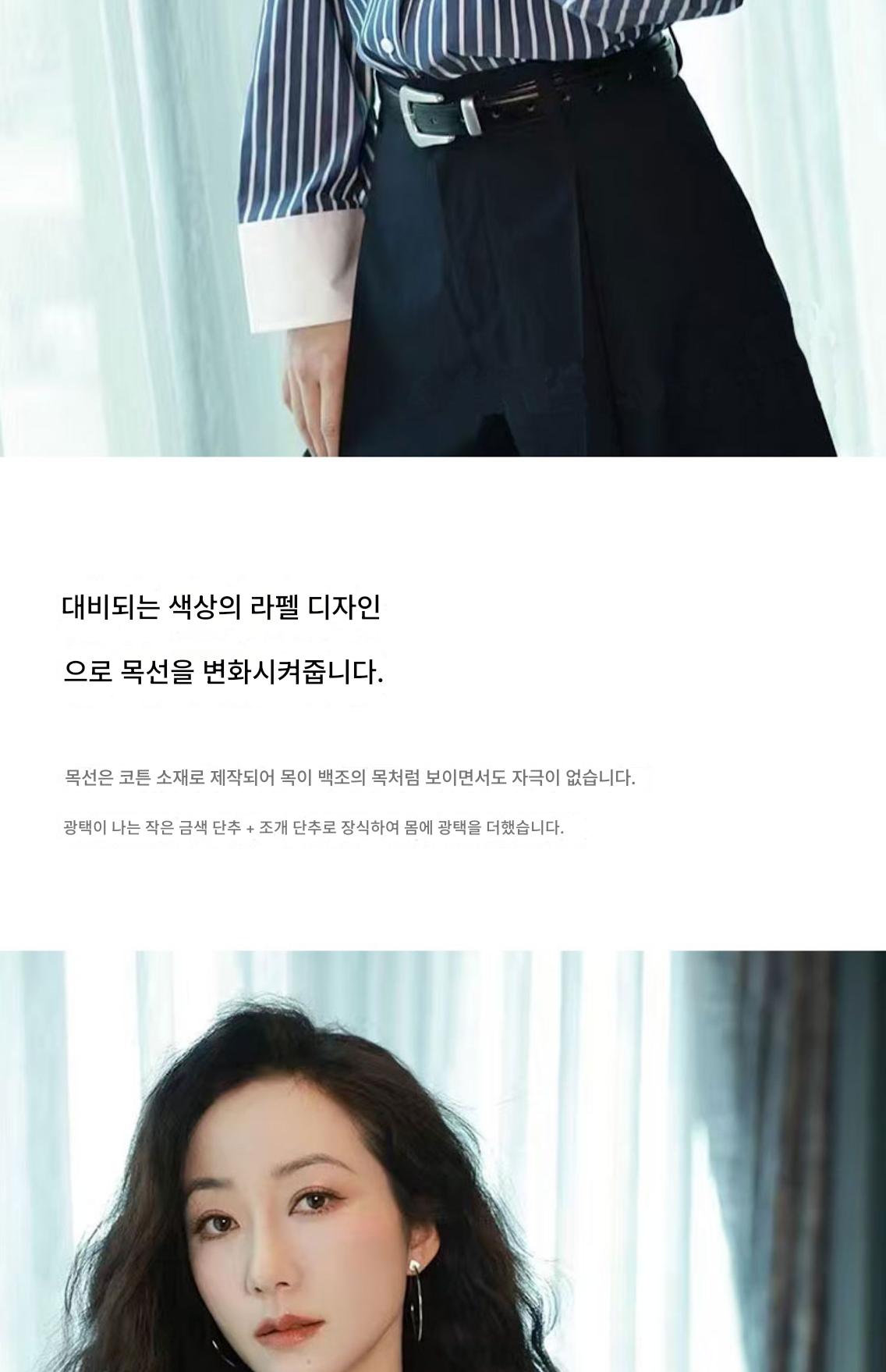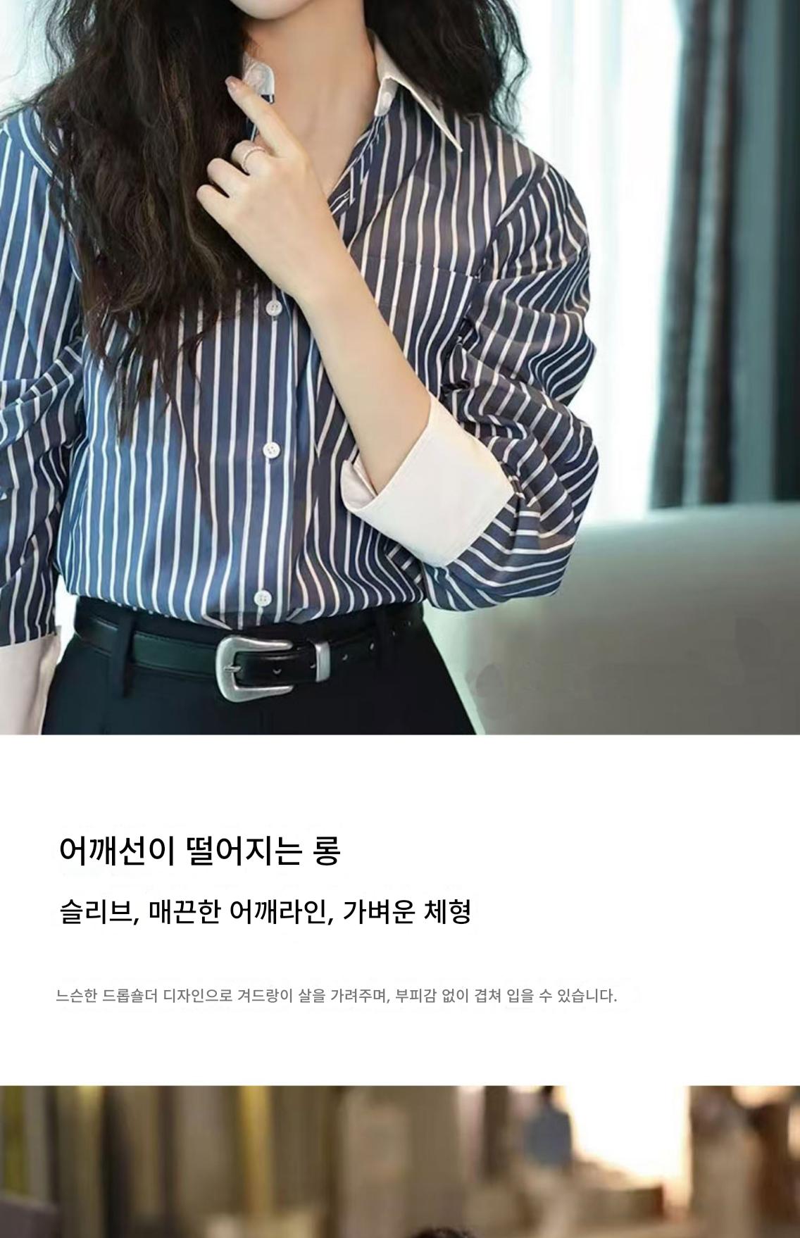 한쉐 스타 동일 스타일 스티칭 콘트라스트 스트라이프 셔츠 여성 고급 디자인 틈새 출퇴근 긴팔 카디건 셔츠
