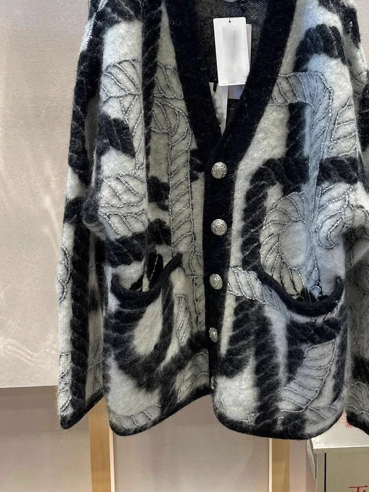 해외무역 수출 유명 쇼핑몰 고품질 상품 철거 및 유럽상품 특가품 픽업 여성용 헤비듀티 자수 해마 울 니트 스웨터 재킷