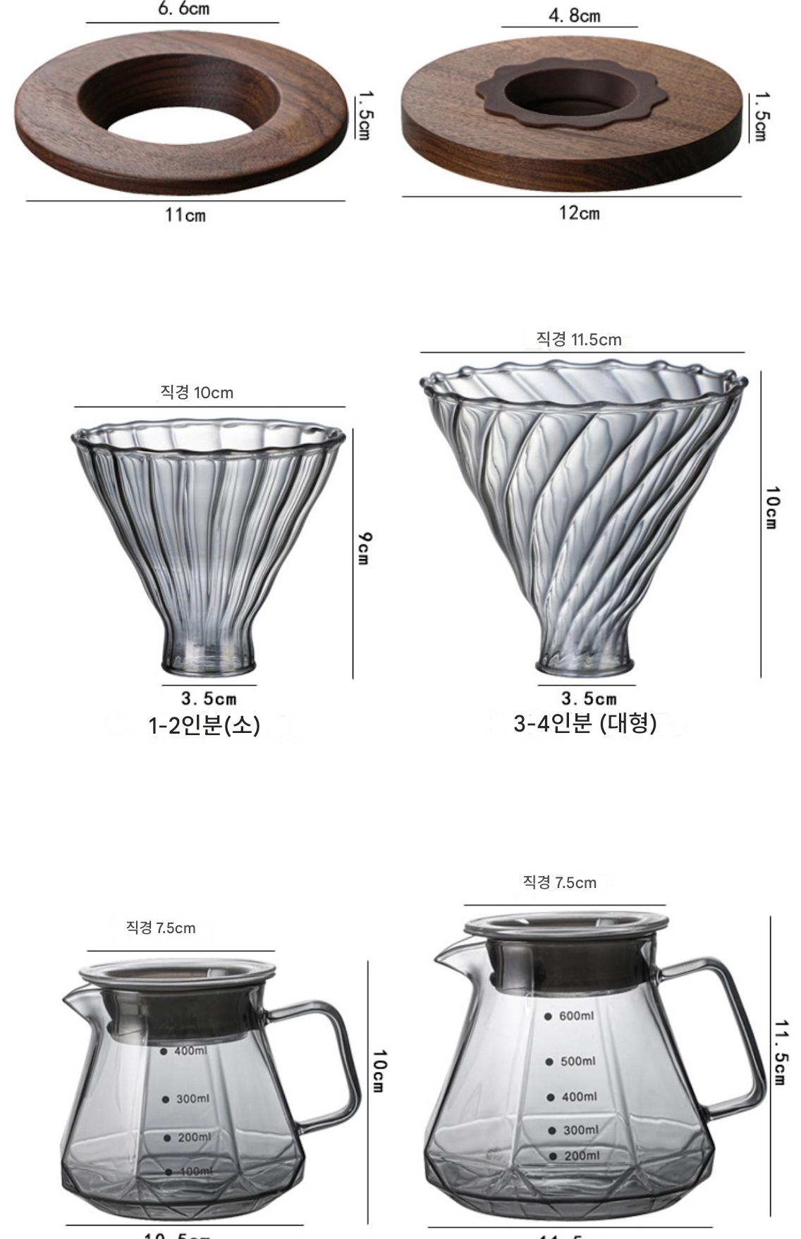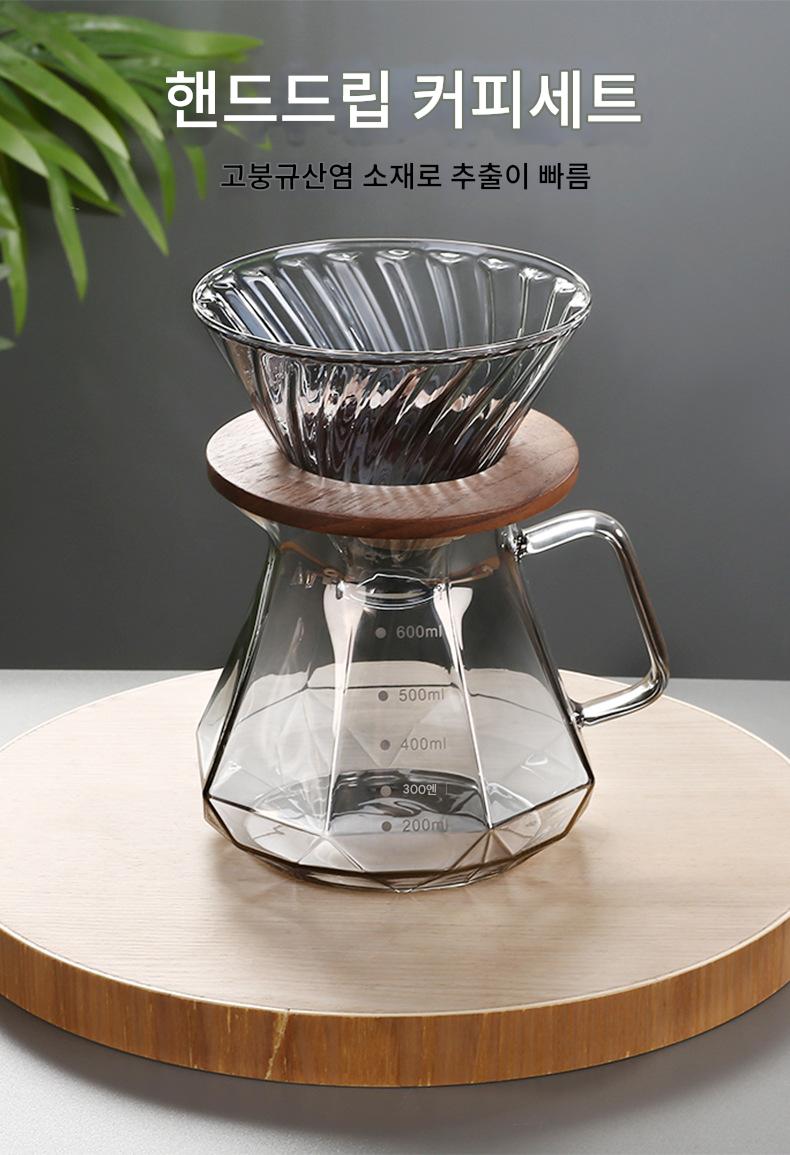 핸드브루 커피 V60 필터컵 스케일 포함 아메리칸 드립 유리커버 주방용품 공유포트 다이아몬드 고붕규산염 슬리브 포함