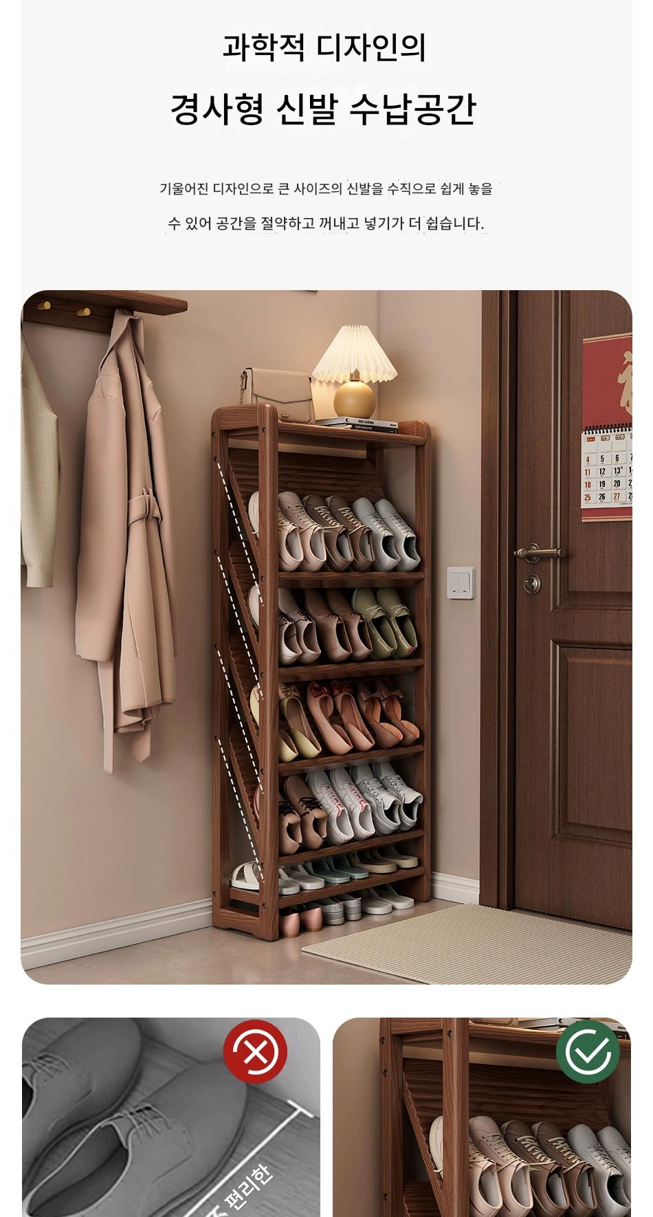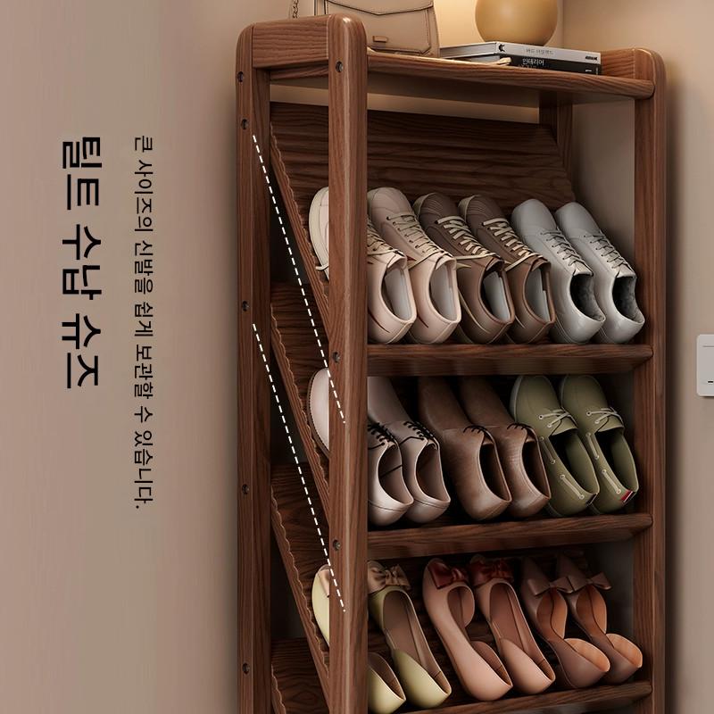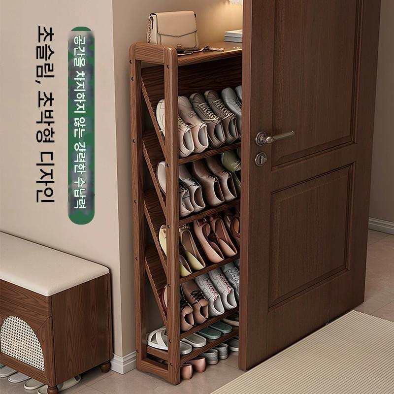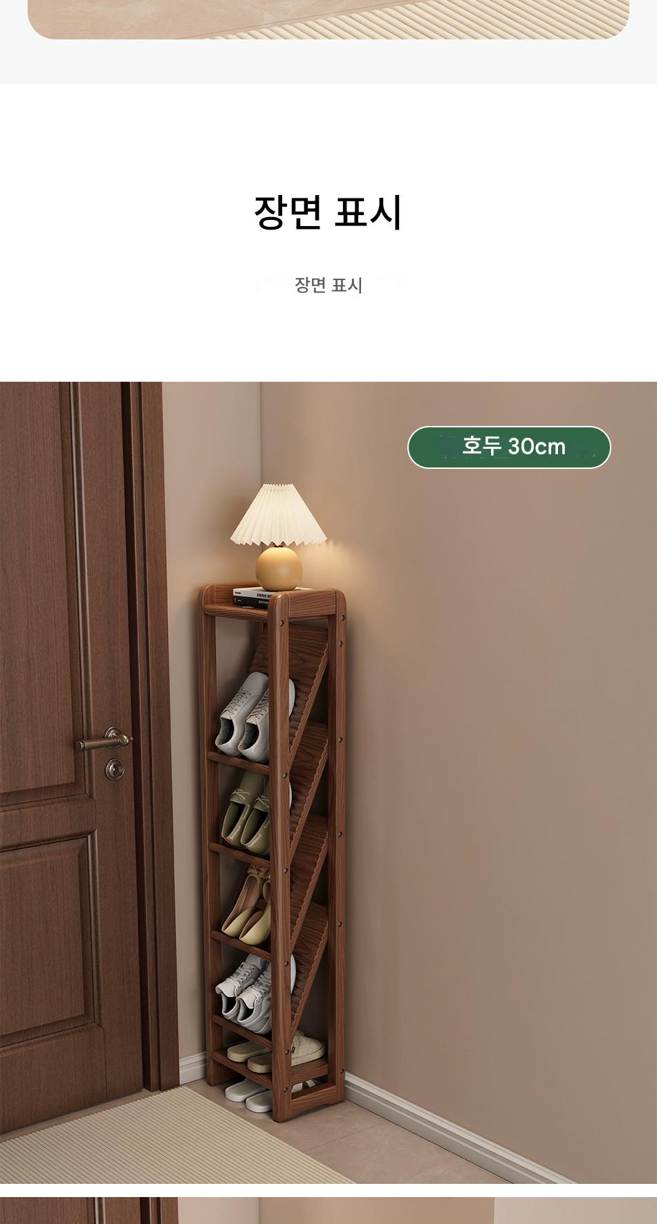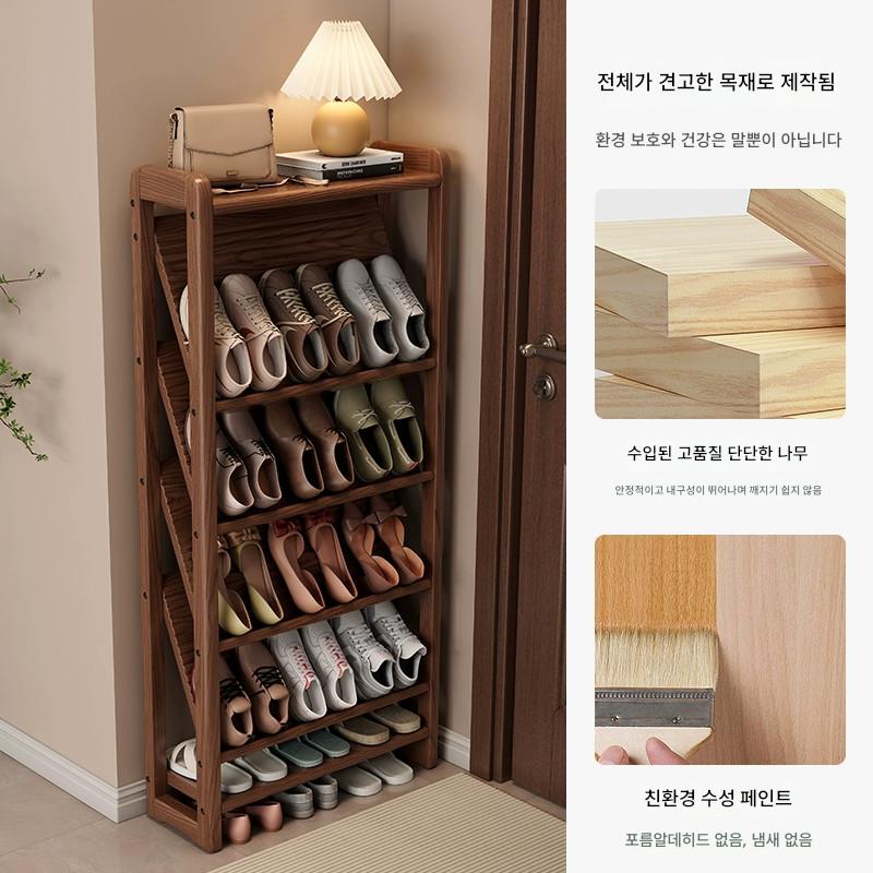 현관, 주택 입구, 실내 심플한 다층 신발장, 좁은 모서리의 소형 아파트 현관 신발 보관 선반용 견고한 원목 신발장