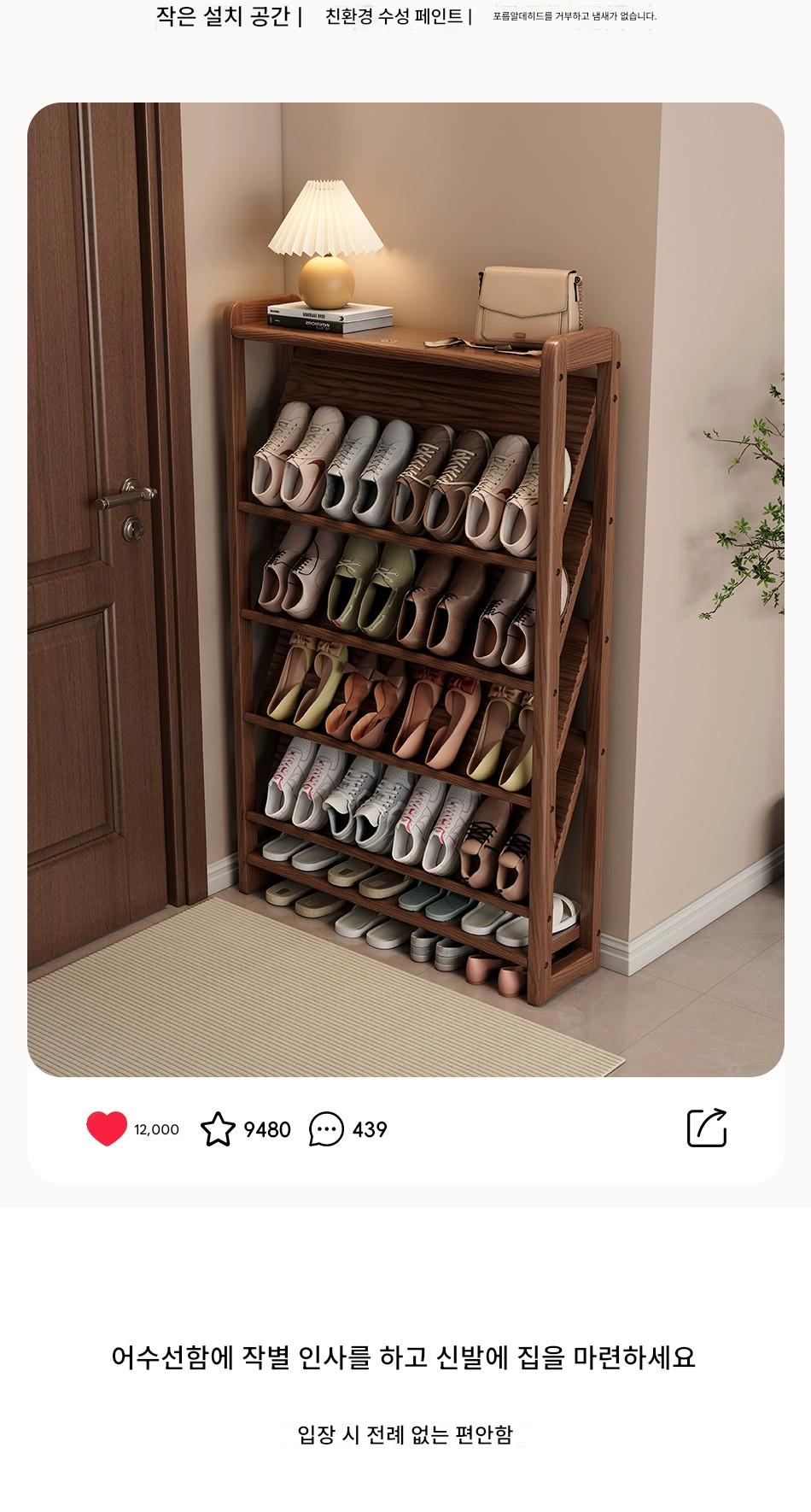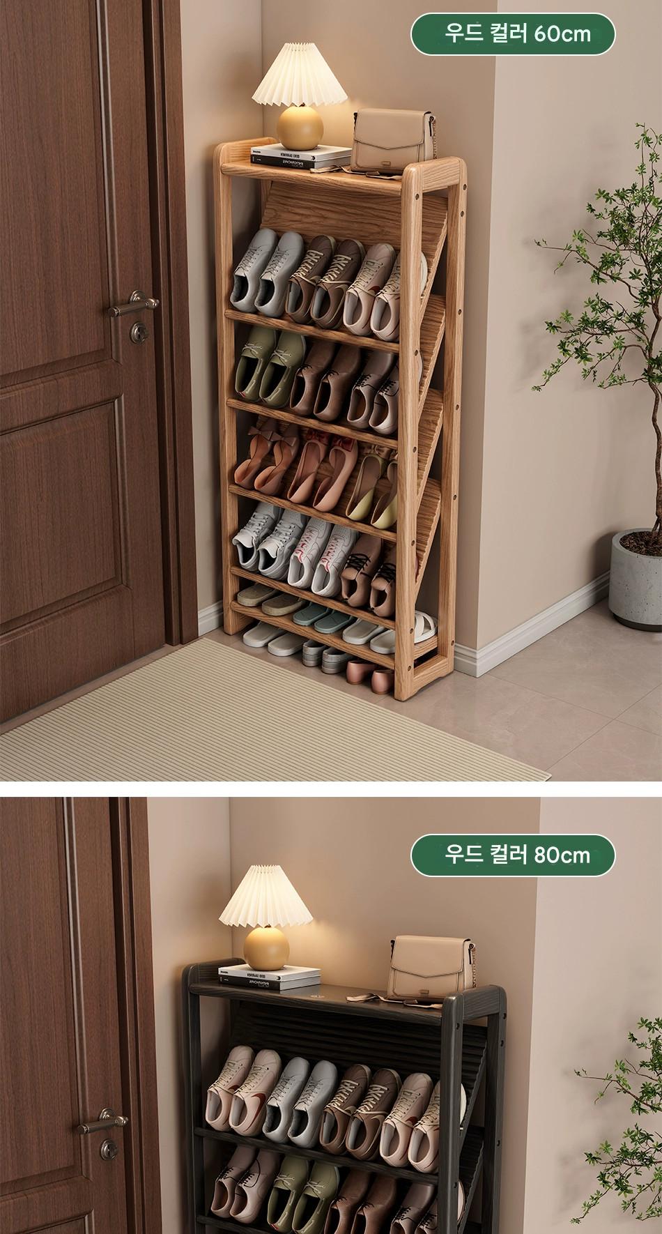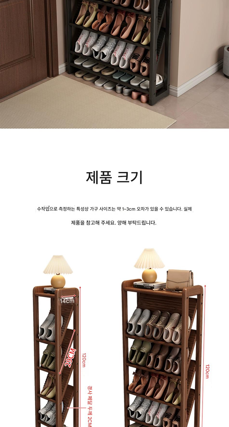 현관, 주택 입구, 실내 심플한 다층 신발장, 좁은 모서리의 소형 아파트 현관 신발 보관 선반용 견고한 원목 신발장