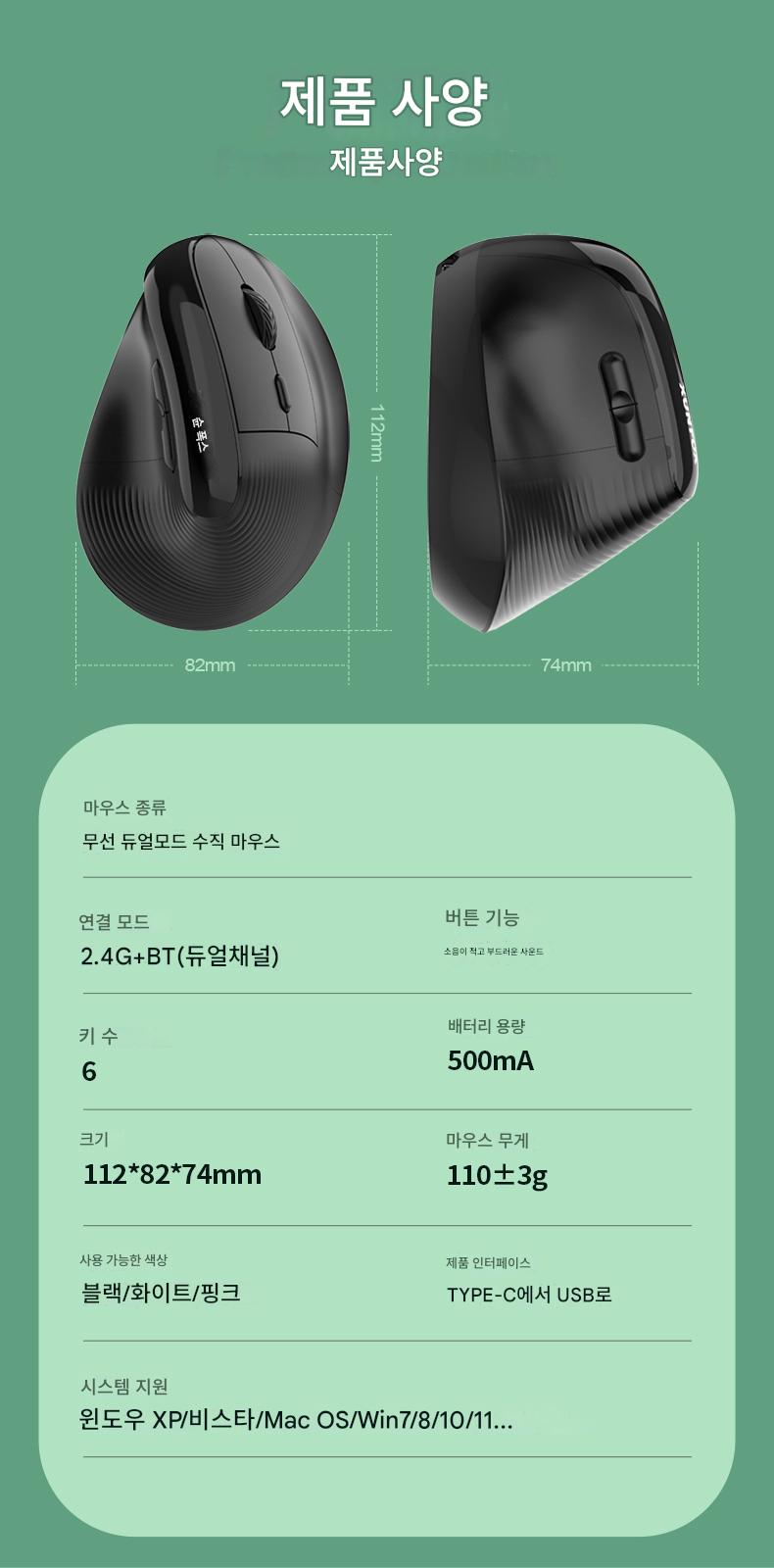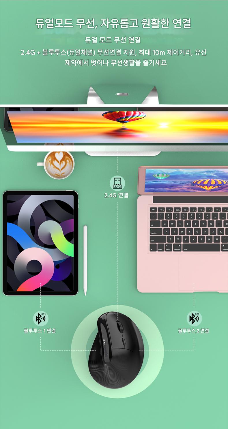 무선 듀얼 모드 수직 마우스 화이트, 무선 듀얼 모드 수직 마우스 블랙