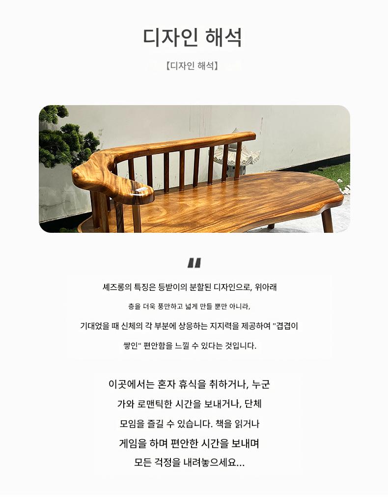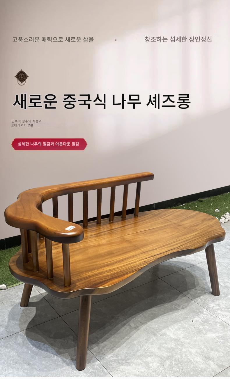 호두나무 원목 등받이 의자 셰즈롱 홈 레저 리클라이너 중세 스타일 벤치 통나무 캐주얼 롱 의자