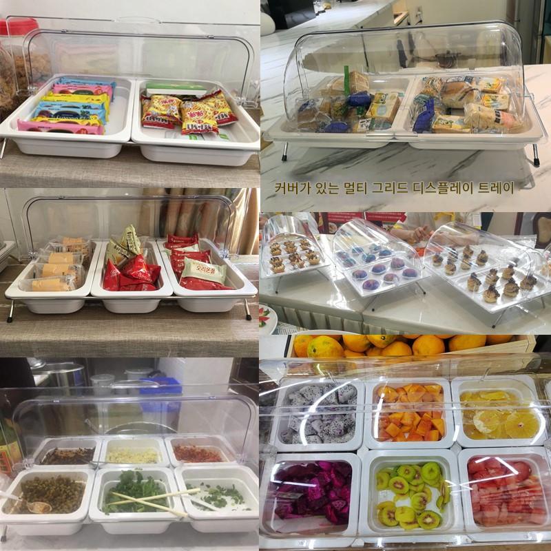 호텔 레스토랑 멜라민 과일 접시 투명 신선도 유지 커버 칸막이 조미료 디저트 랙 차가운 식사 조리된 음식 절묘한 뷔페 접시