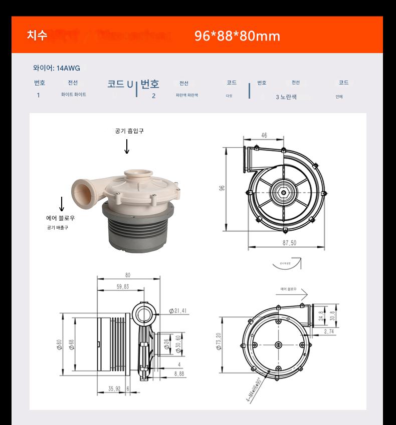 홀 모터가 없는 220V560W DC 무브러시 고속 송풍기 고전압 상업용