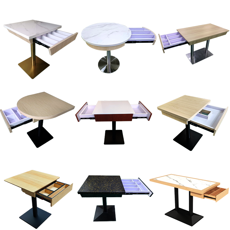 홍콩 스낵 국수집 티 레스토랑 보관 테이블과 의자 조합 밀크티 숍 케이터링 록 플레이트 서랍 테이블 보관 상업용