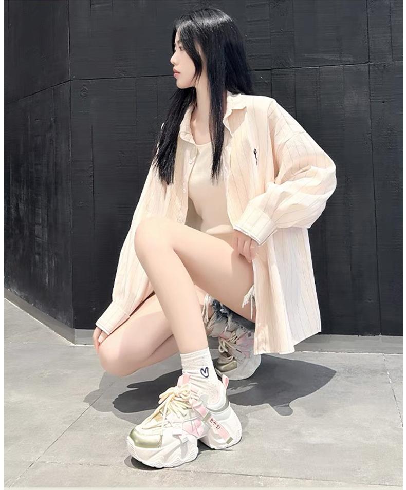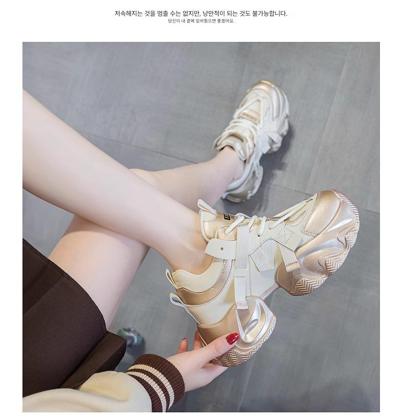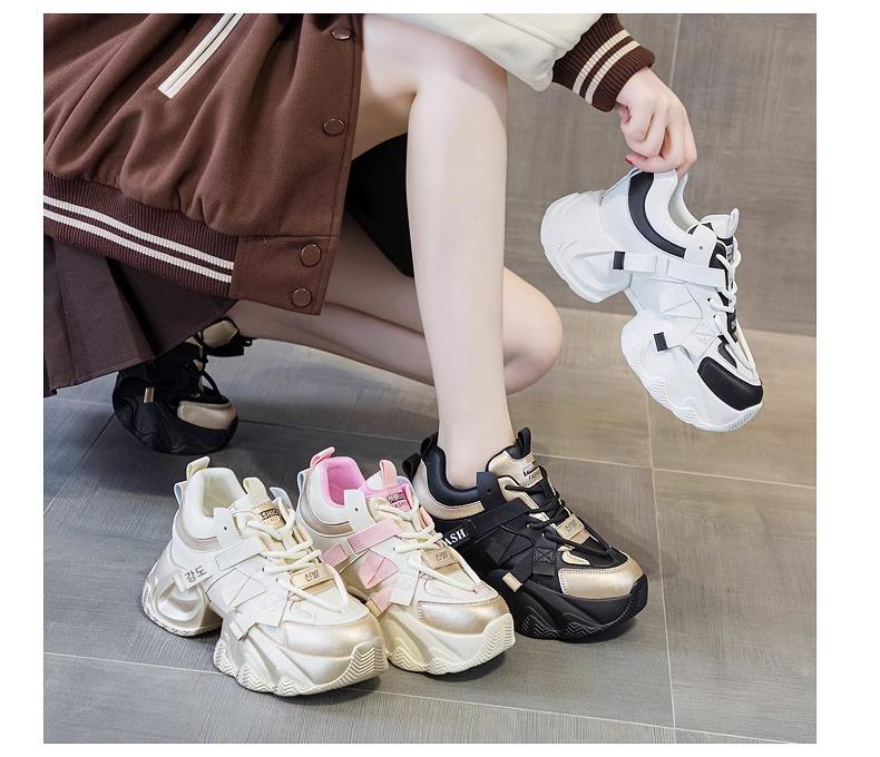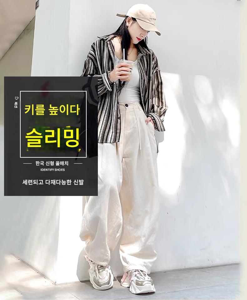 홍콩 여성용 두꺼운 밑창 튼튼한 아빠화, 발을 더 ​​작게 보이게 해줍니다 2024년 신상품 봄 가을 유행 핫셀링 내부 키높이 스포츠 캐주얼화