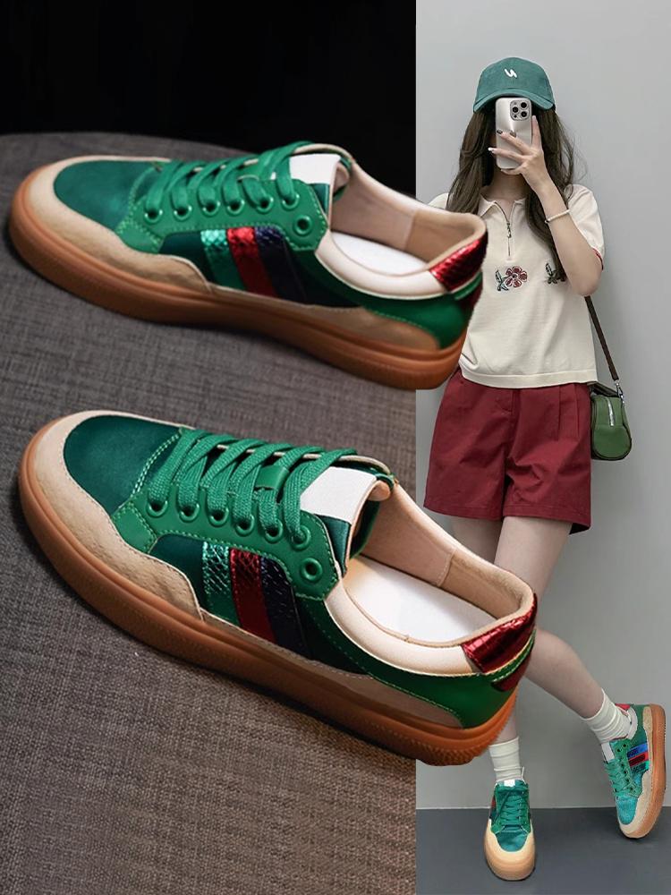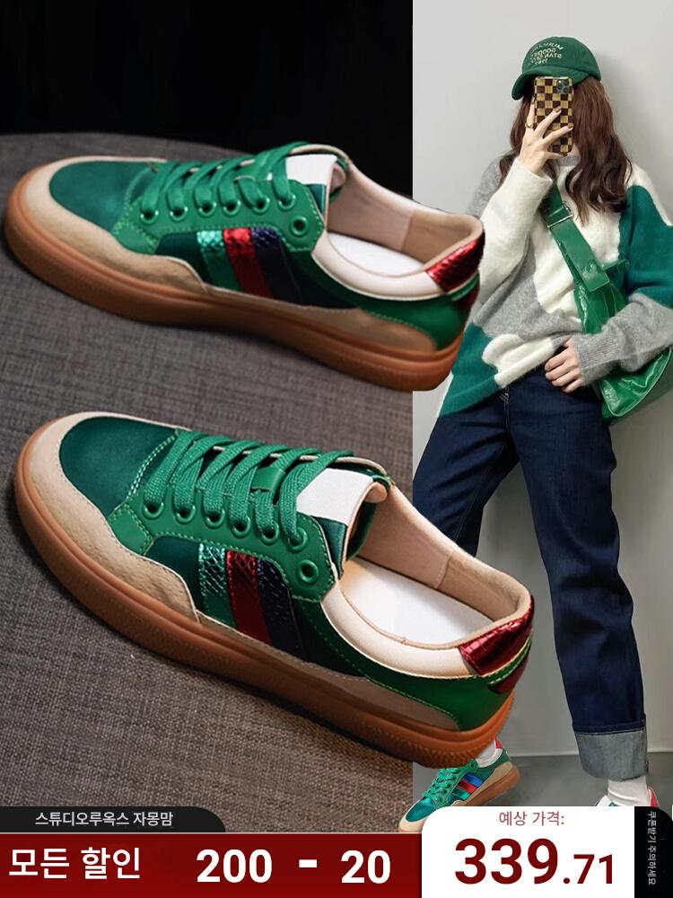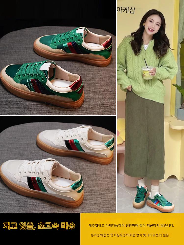 홍콩 트렌디 브랜드 정품 가죽 화이트 슈즈 여성용 2025년 신상 봄 가을 레트로 플랫 통기성 스니커즈 인기 캐주얼 슈즈