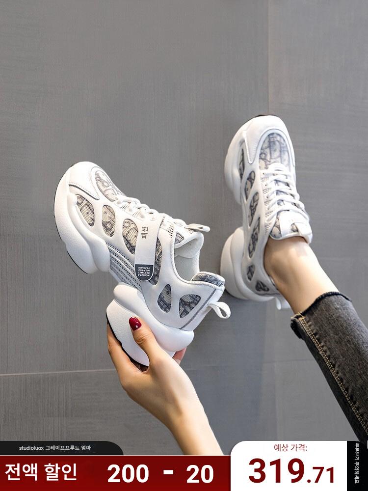 홍콩 화이트 대드 슈즈 여성 2025 봄과 가을 신상품 정품 가죽 두꺼운 밑창 캐주얼 슈즈 컬러 매칭 올매치 스포츠 슈즈 ins