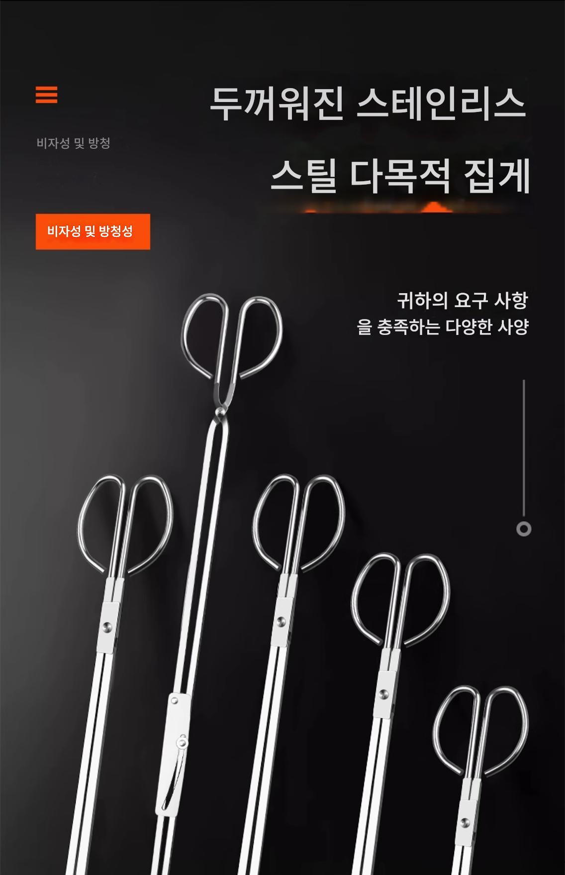 화재 집게 쓰레기 집게 스테인리스 스틸 가정용 화재 집게 화재 집게 긴 막대 긴 손잡이 쓰레기 집게 플러스 긴 화재 집게