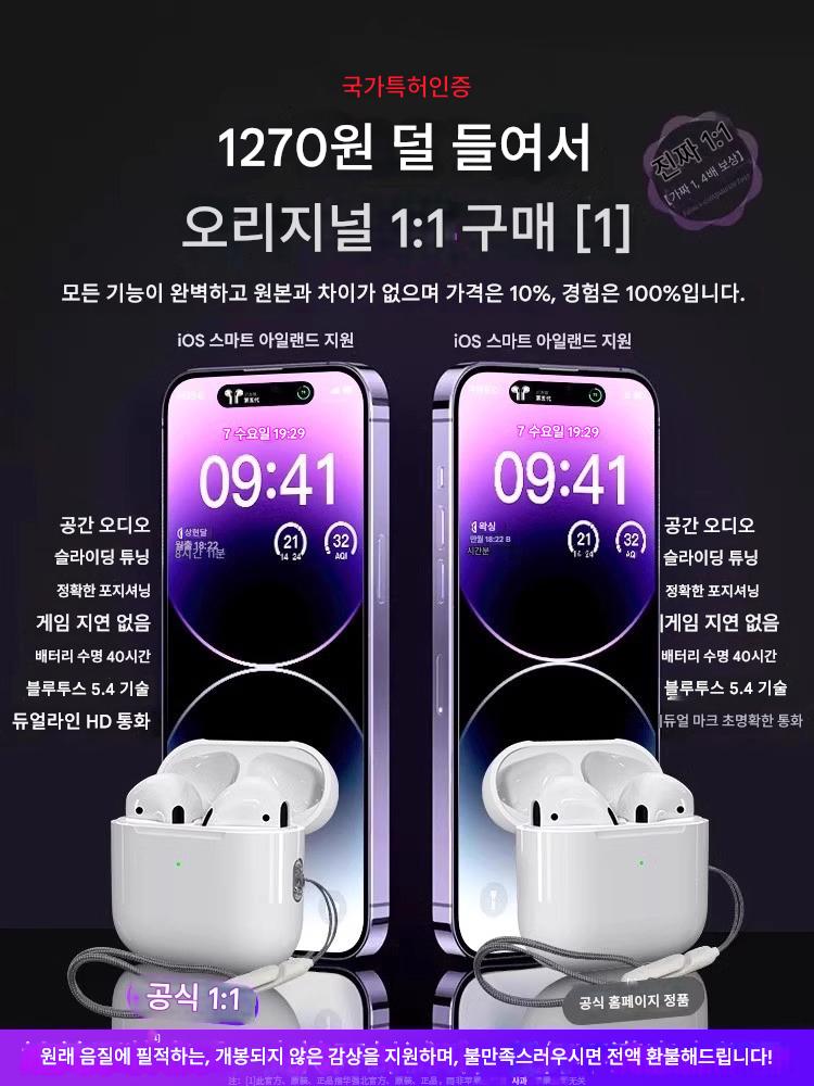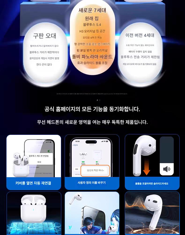 화창베이 블루투스 헤드셋 7세대 공식 정품 Apple True Wireless 2024 신형 7 Luoda 4 고음질에 적합