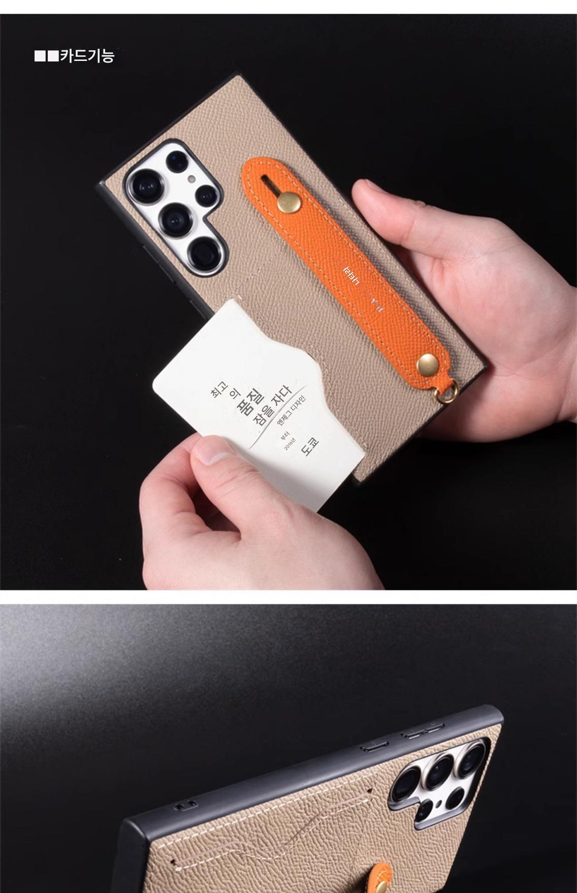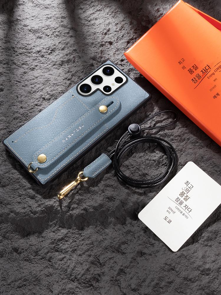 화후는 삼성 S24울트라 휴대전화 케이스 S24+ 정품 가죽 낙하 방지 손목 밴드 브라켓 끈 포함 S23울트라 보호 케이스 새로운 가벼운 고급 스타일 첫 번째 레이어 소가죽 카드 슬롯 S23 휴대전화 케이스에 적합합니다.