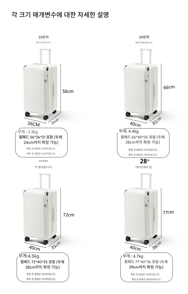 확장 및 두꺼워진 5륜 지퍼 대용량 다기능 브레이크 지퍼 트롤리 케이스 남녀 학생 여행 케이스 28